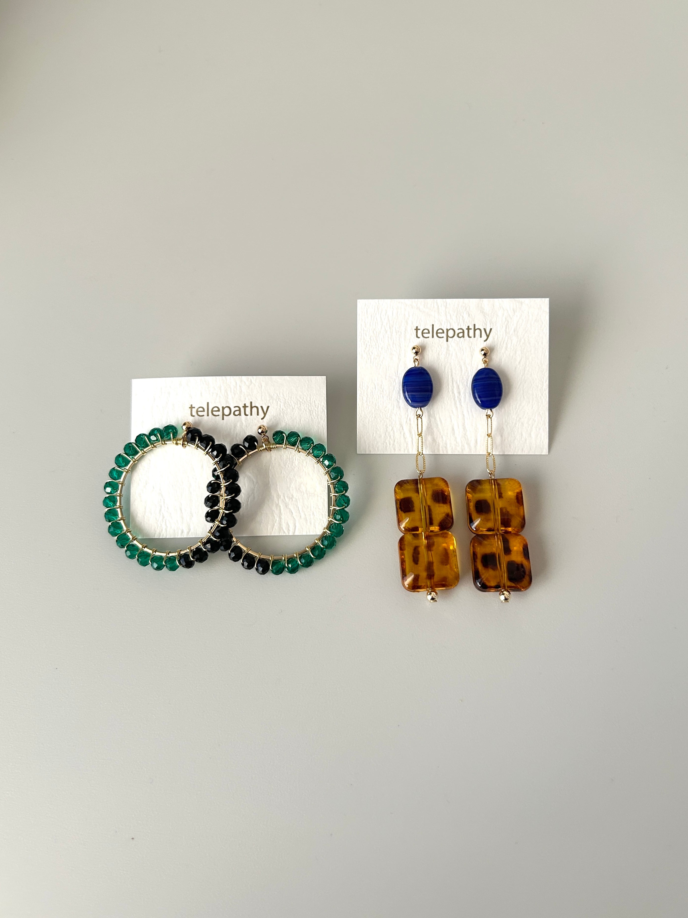 ・チェコビーズ×べっ甲カラーピアス→約75mm