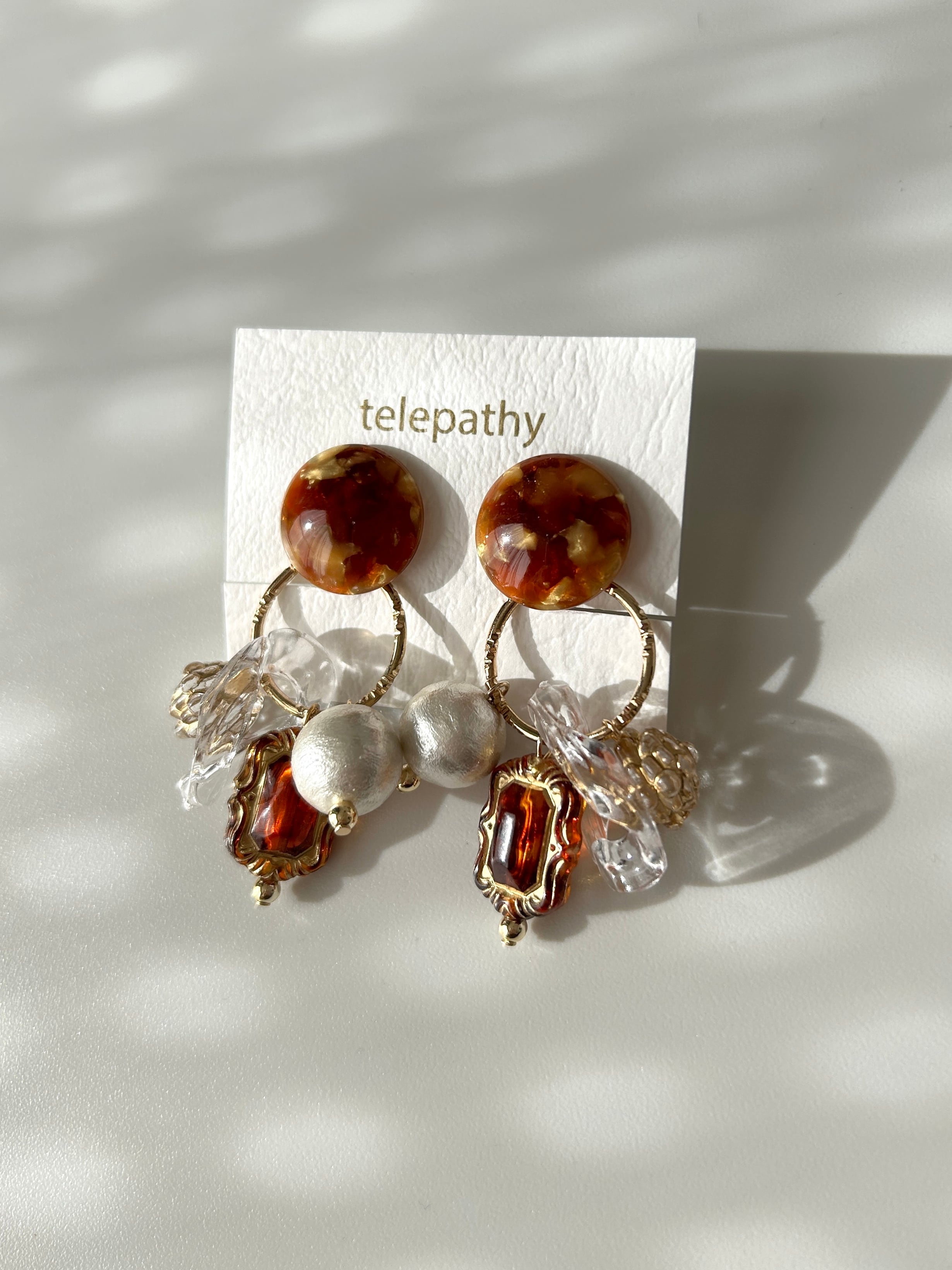 綺麗な発色のアセチカボションに、コットンパール・ヴィンテージライクなビーズを合わせました。