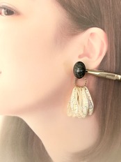 グレーブラックのvintageカボションに、モザイクオーロラホワイトのシャラシャラを合わせました。