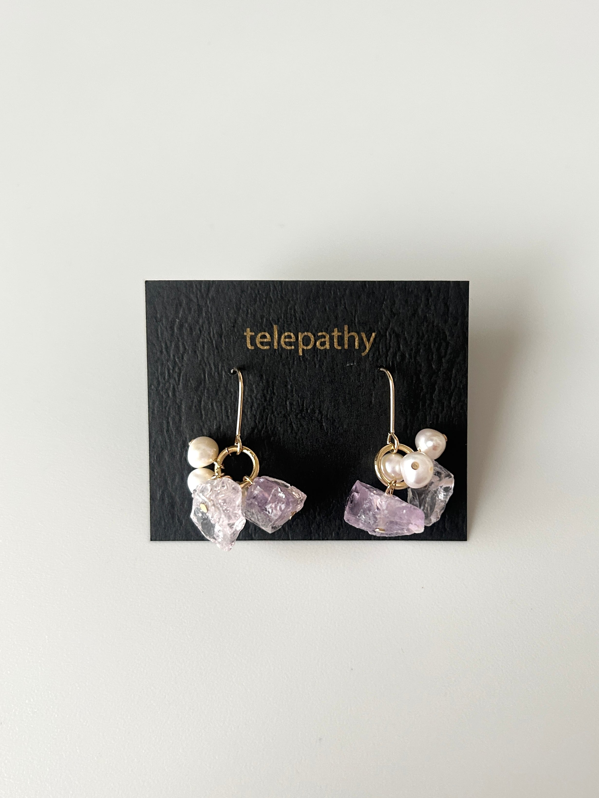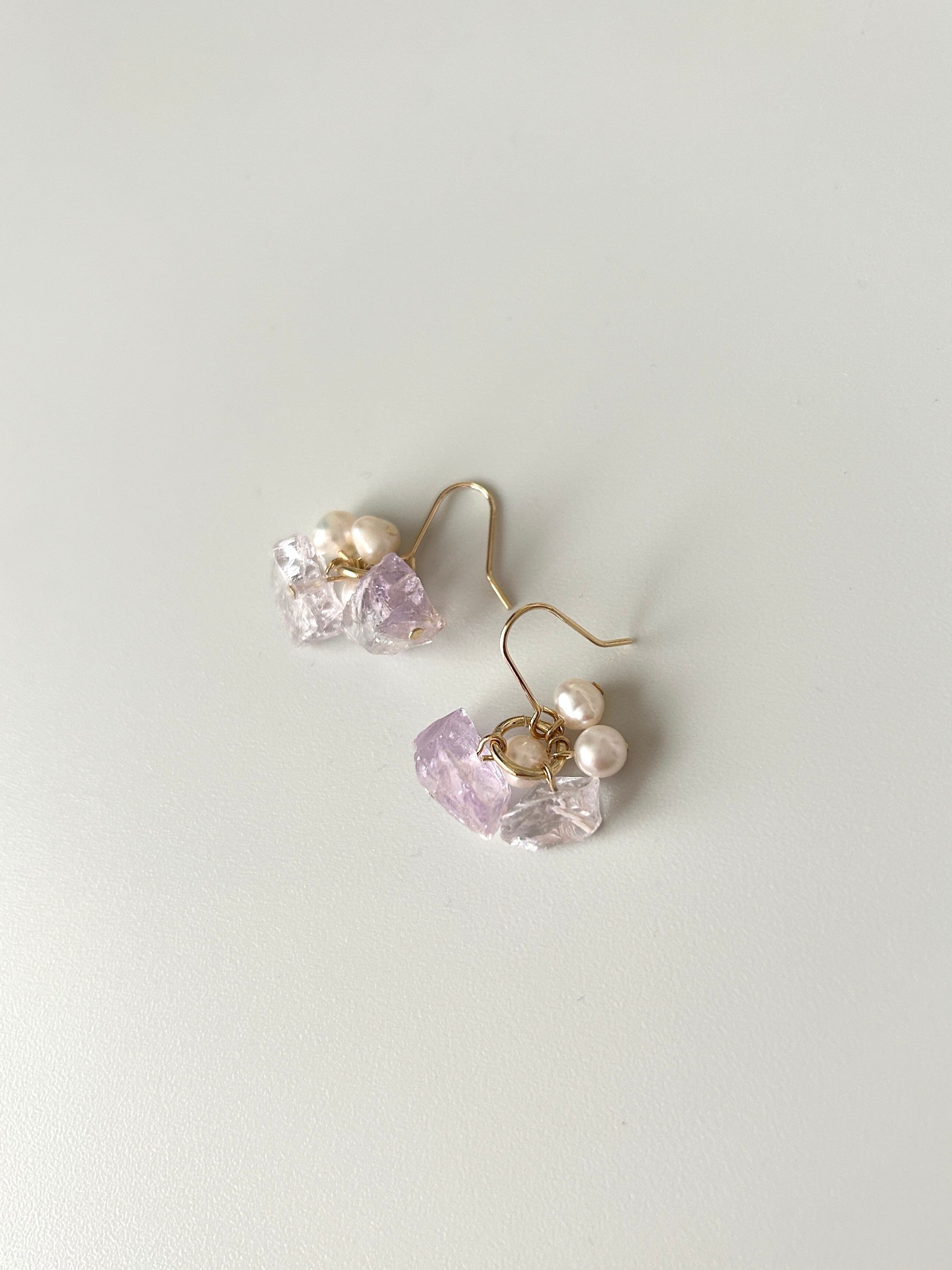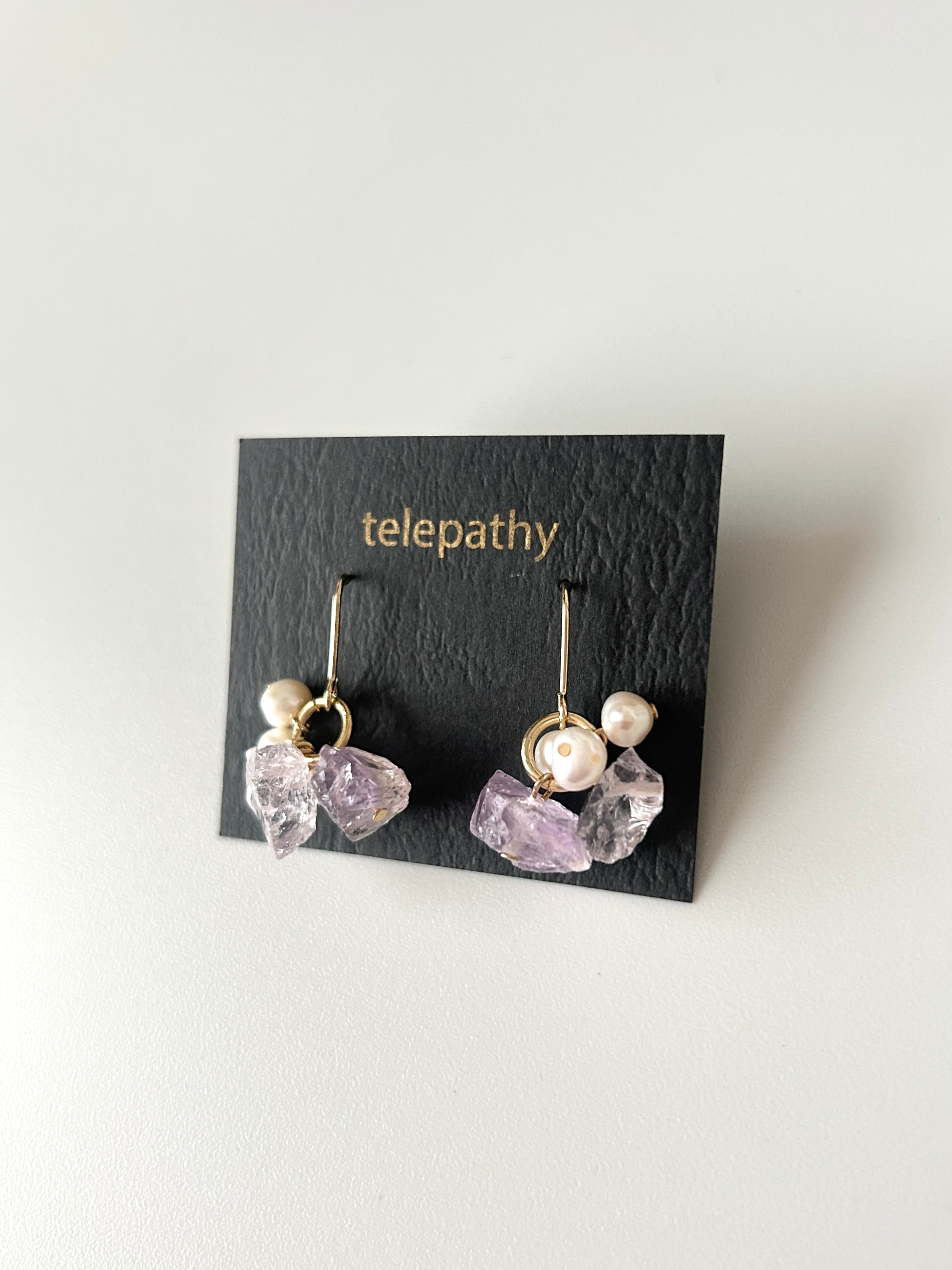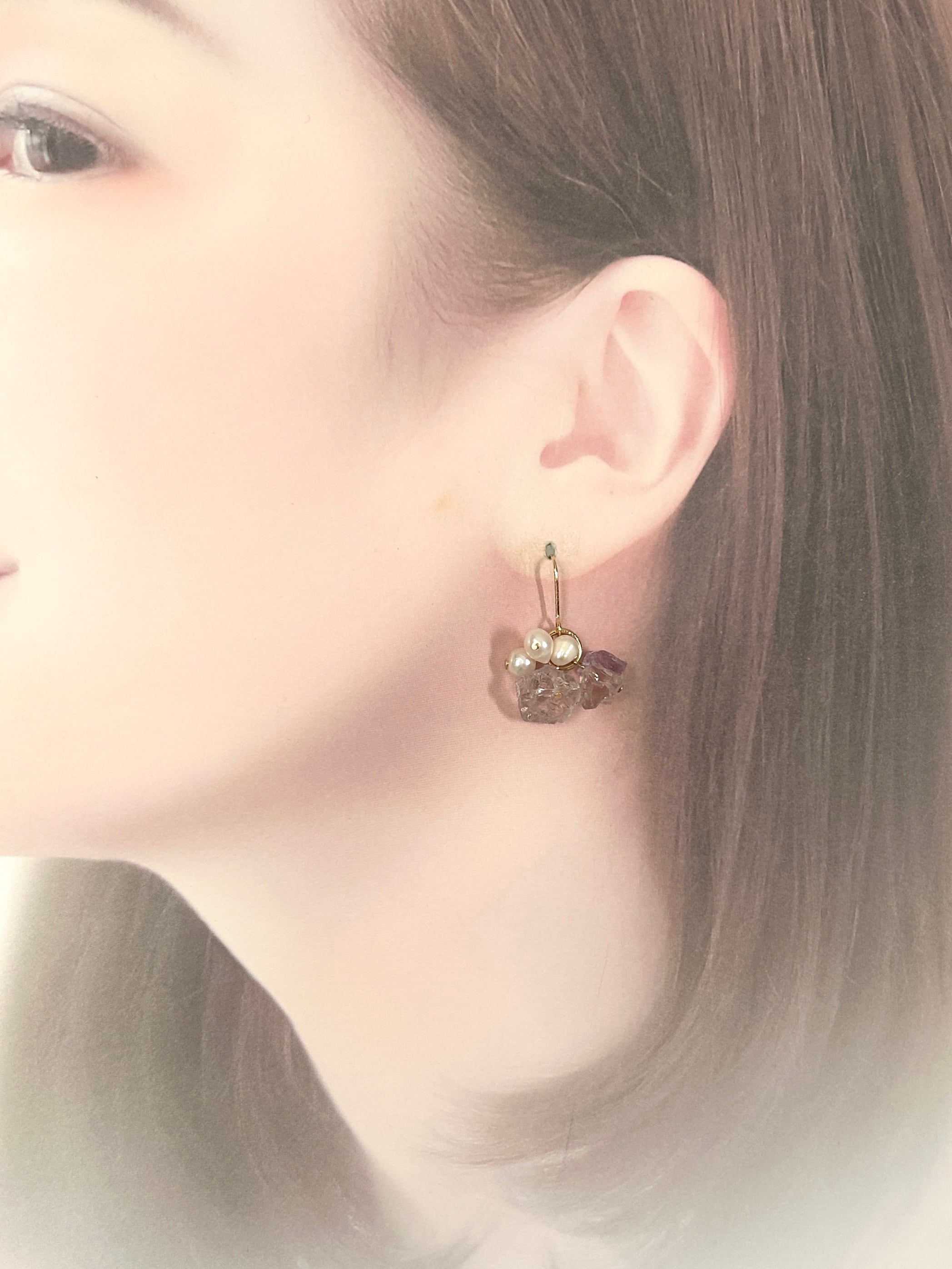 ラフカットアメジスト×淡水パール ピアス/イヤリング/樹脂ノンホールピアス