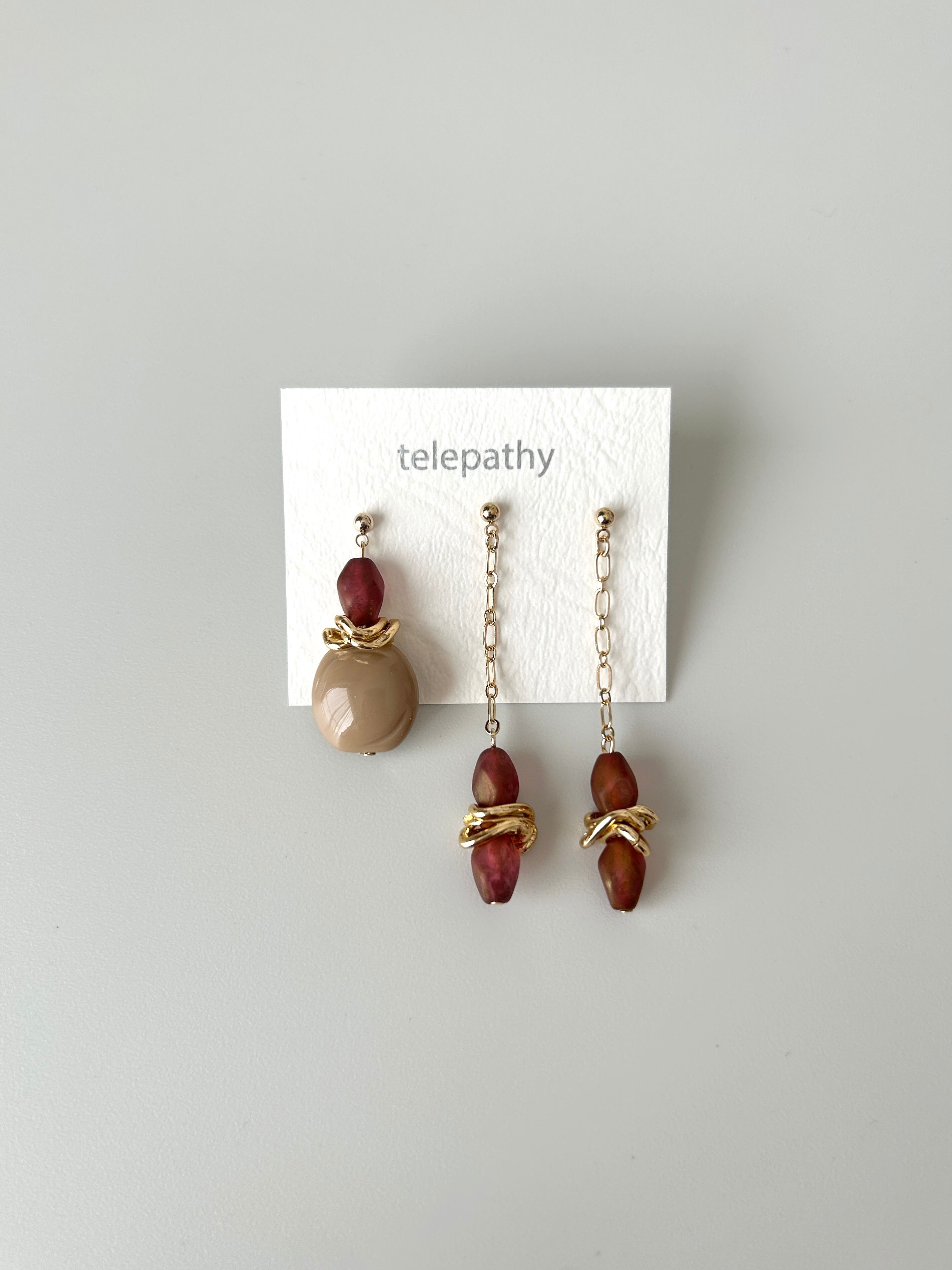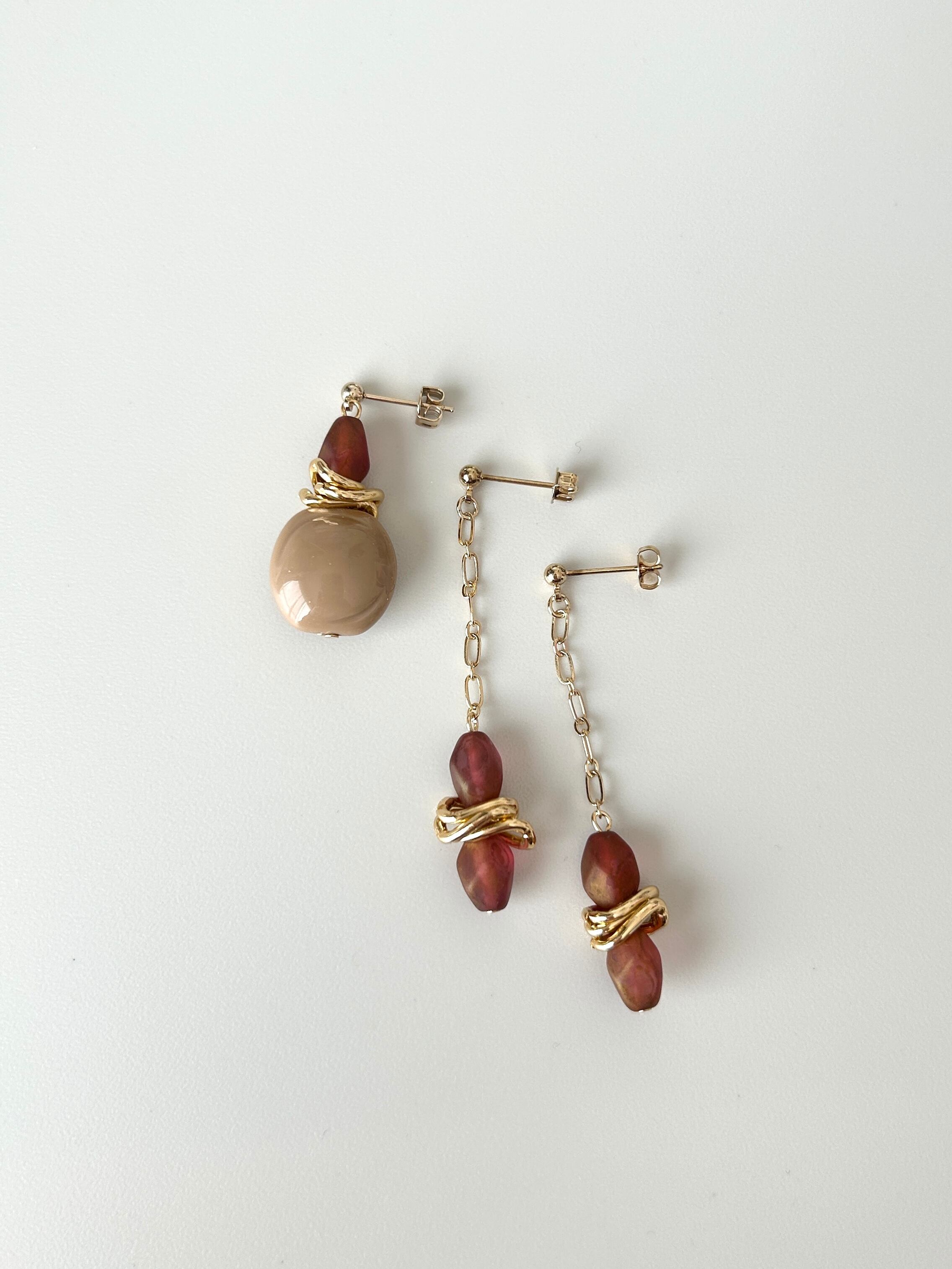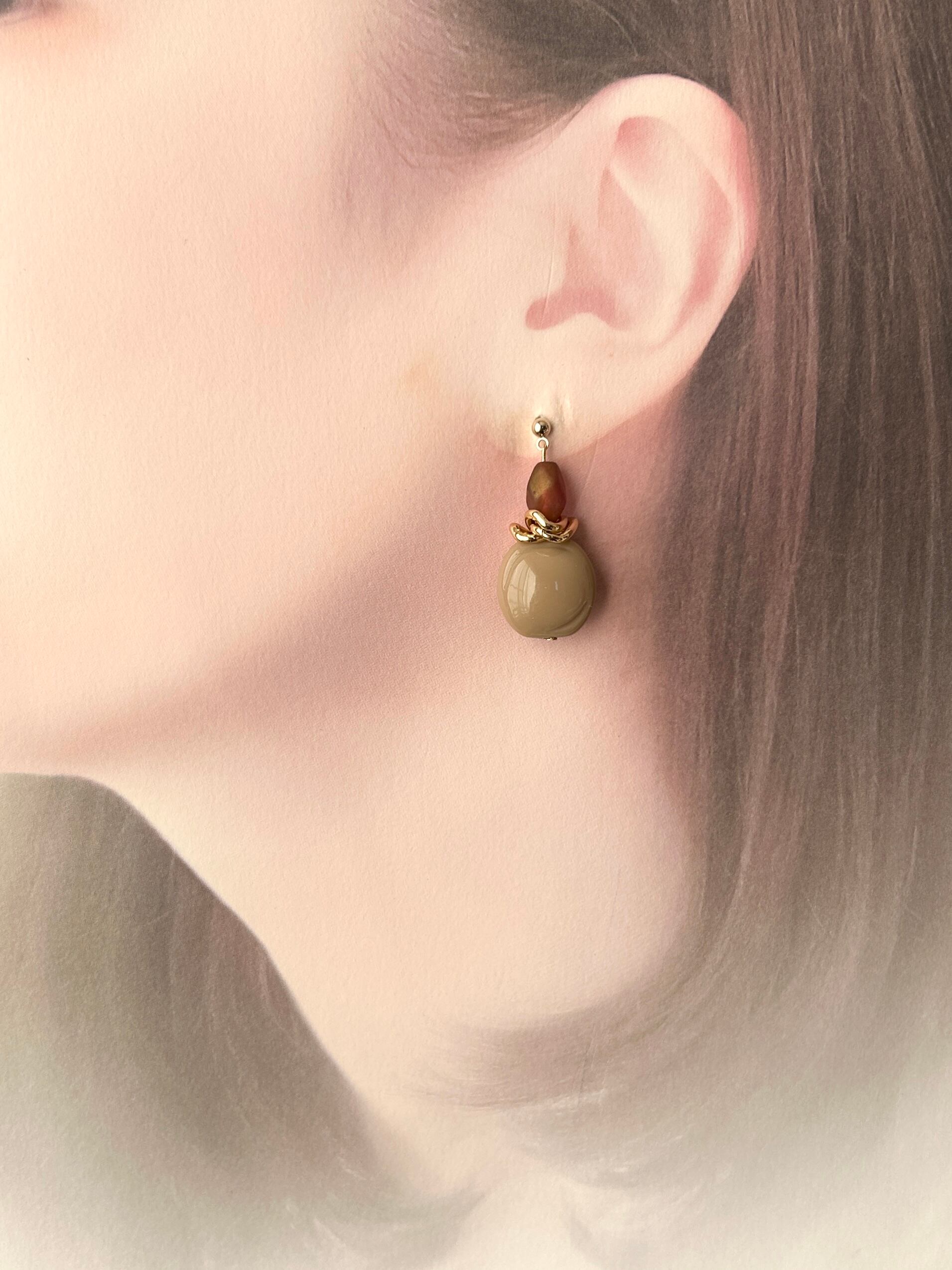 ジャパンヴィンテージベージュビーズ×スモーキーレッドブラウンガラスビーズ。