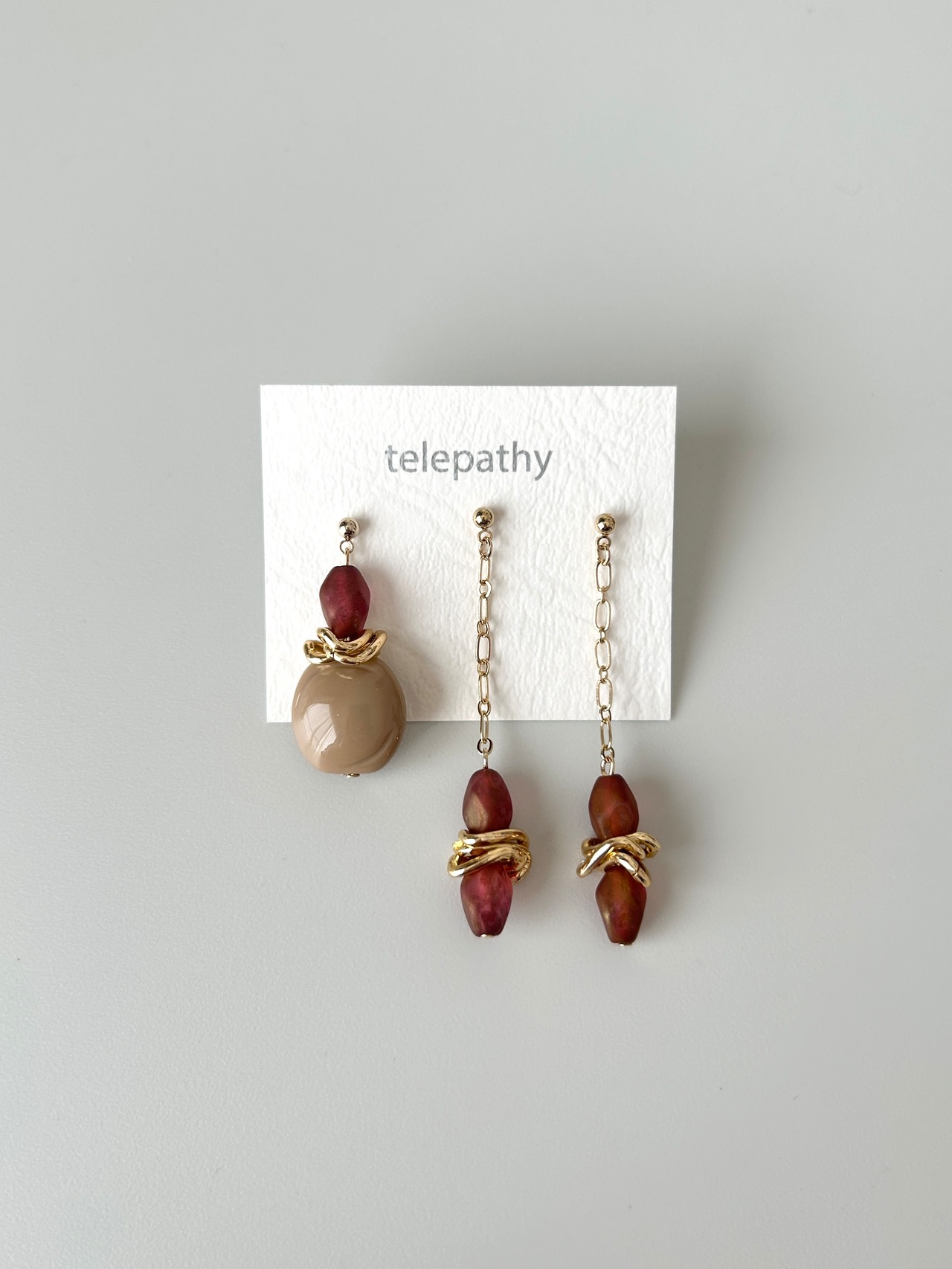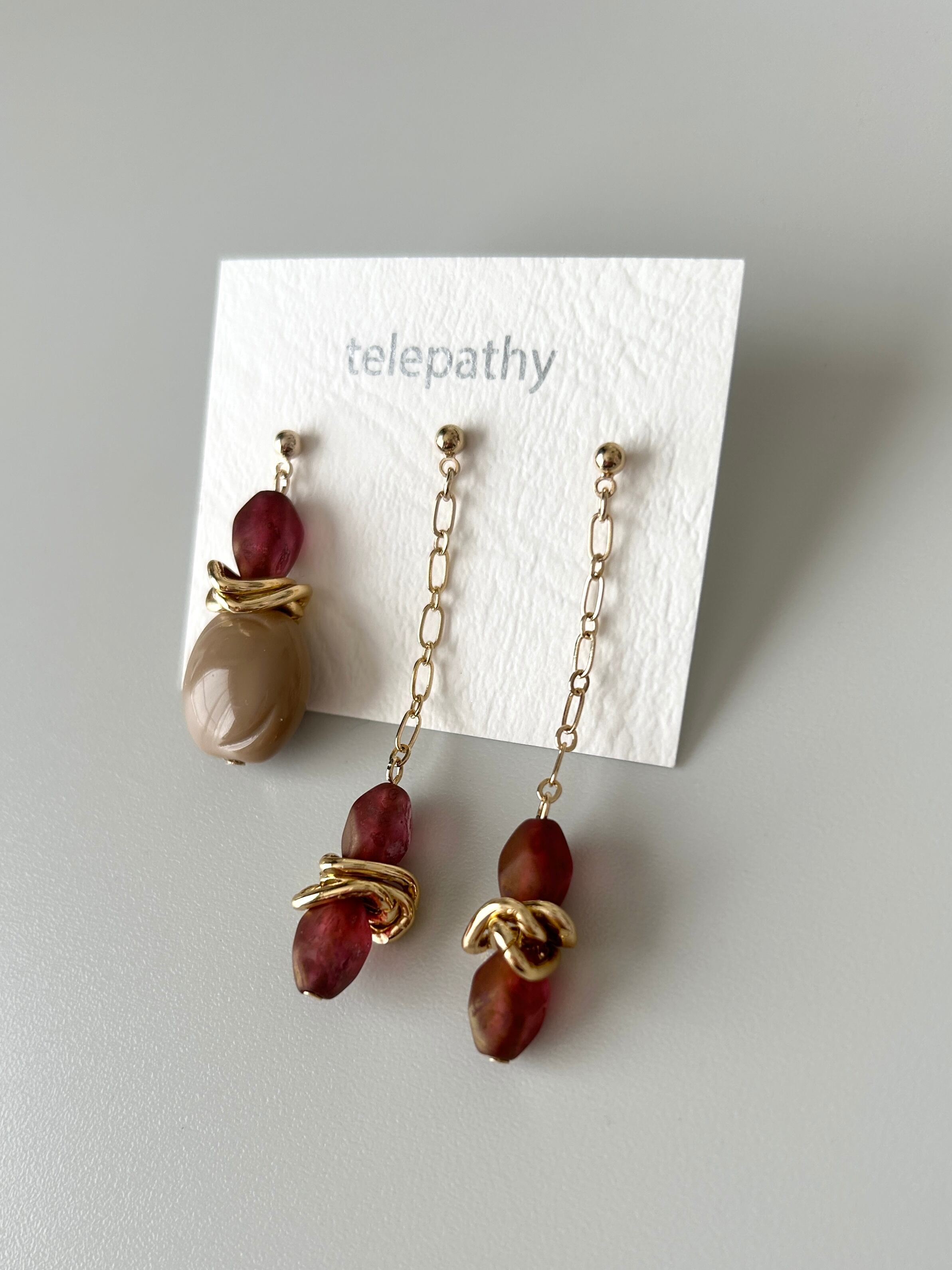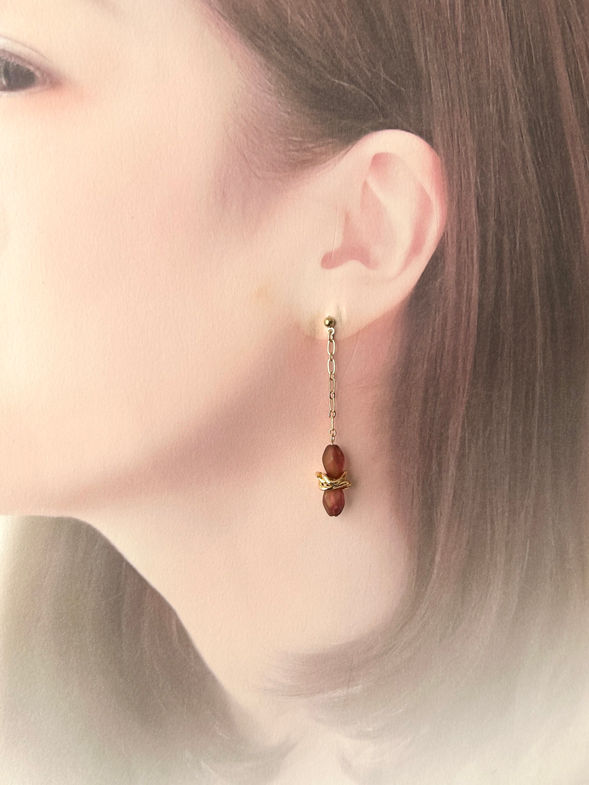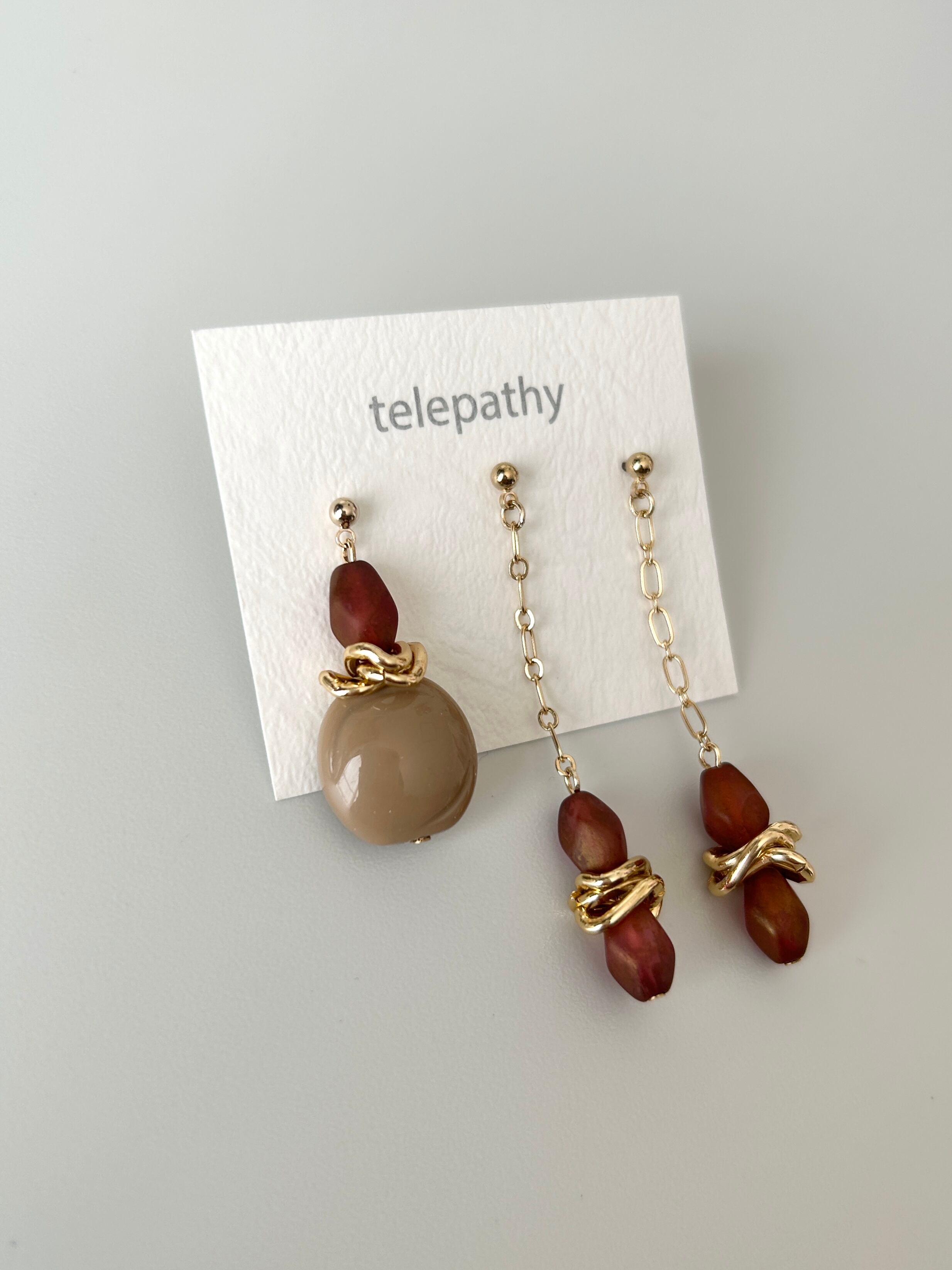 ジャパンヴィンテージベージュビーズ×スモーキーレッドブラウンガラスビーズ。