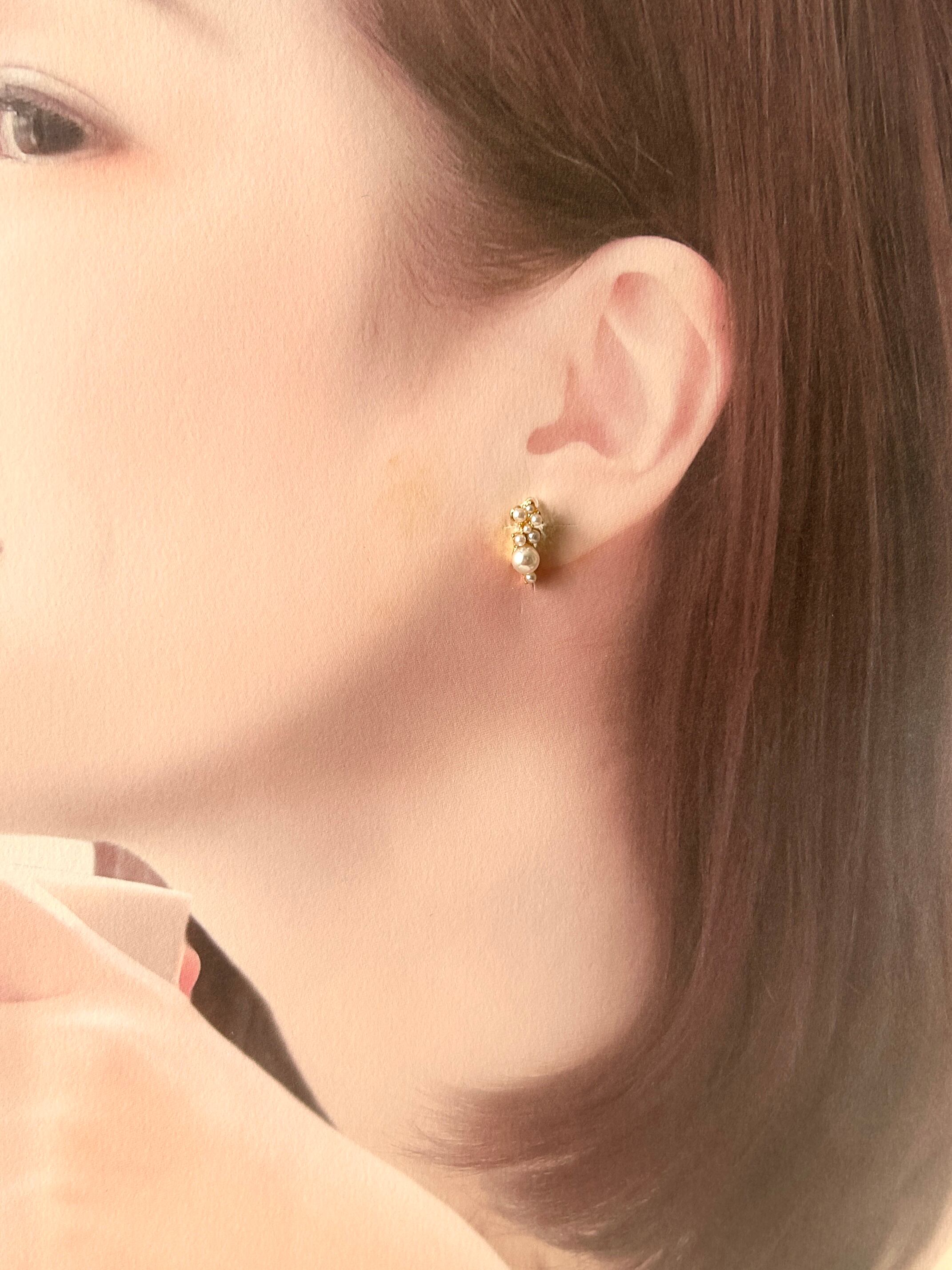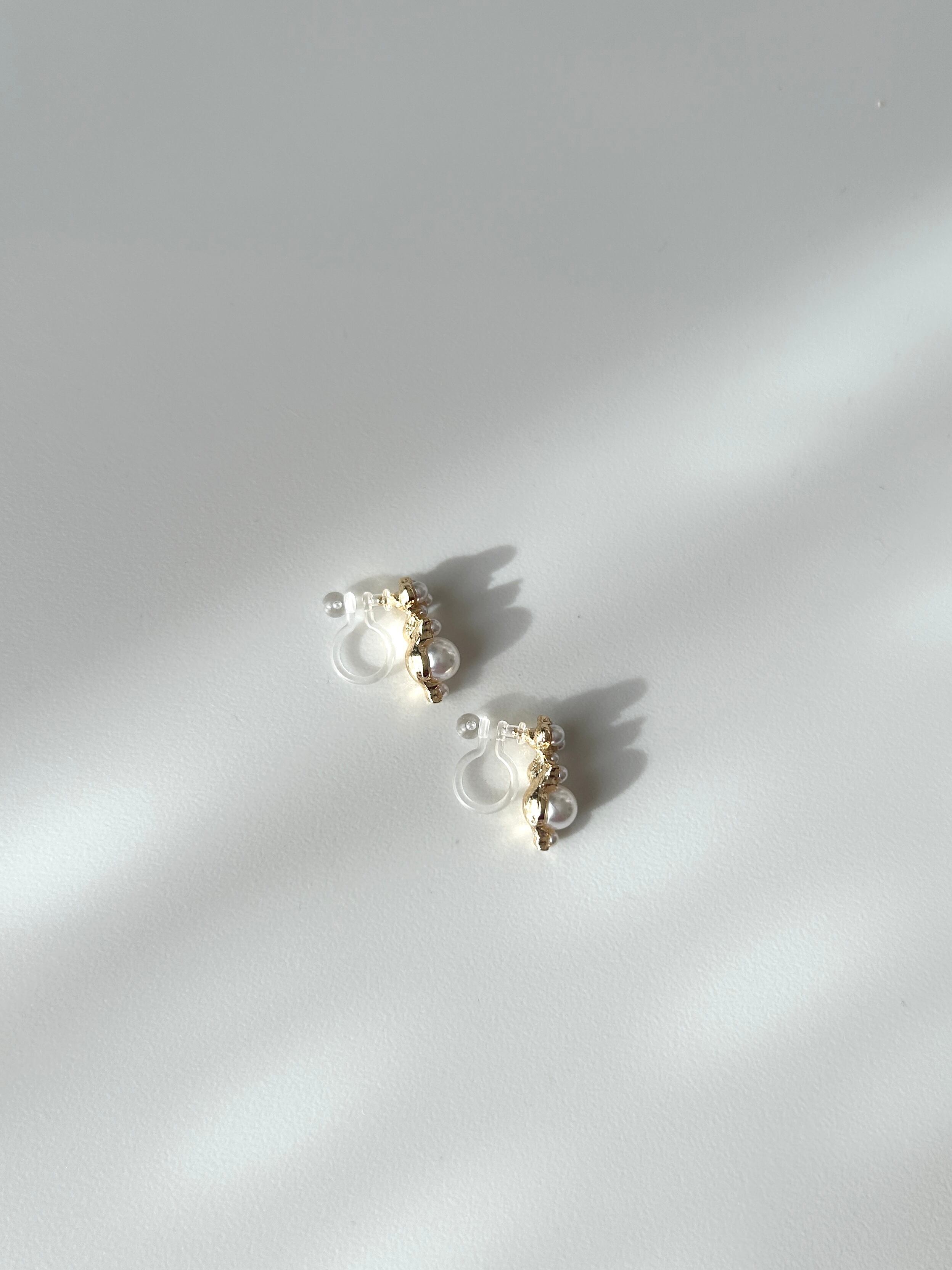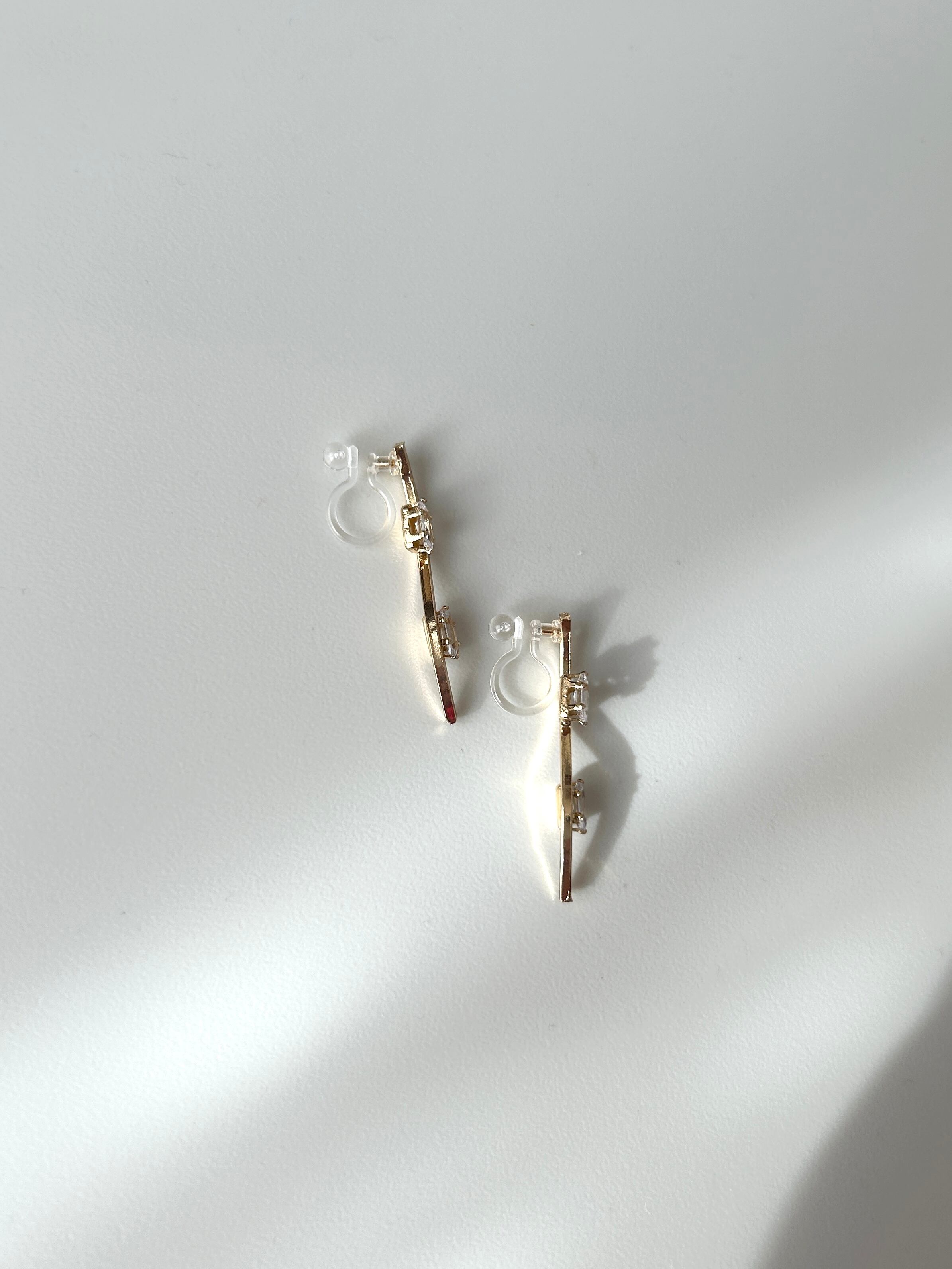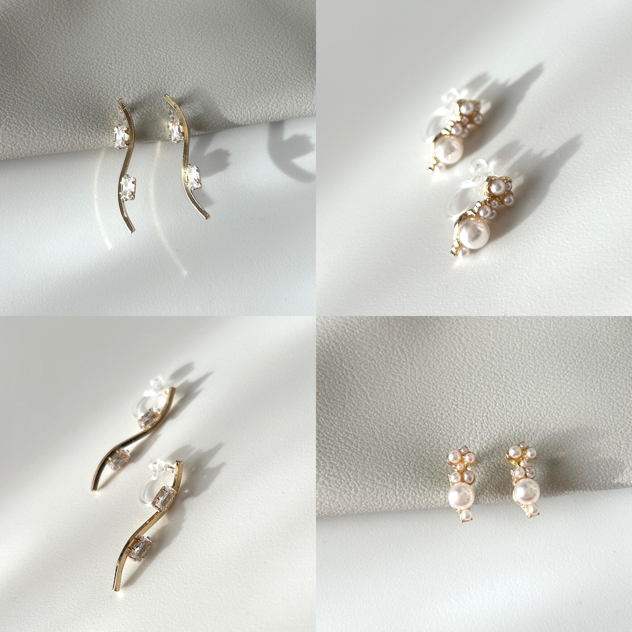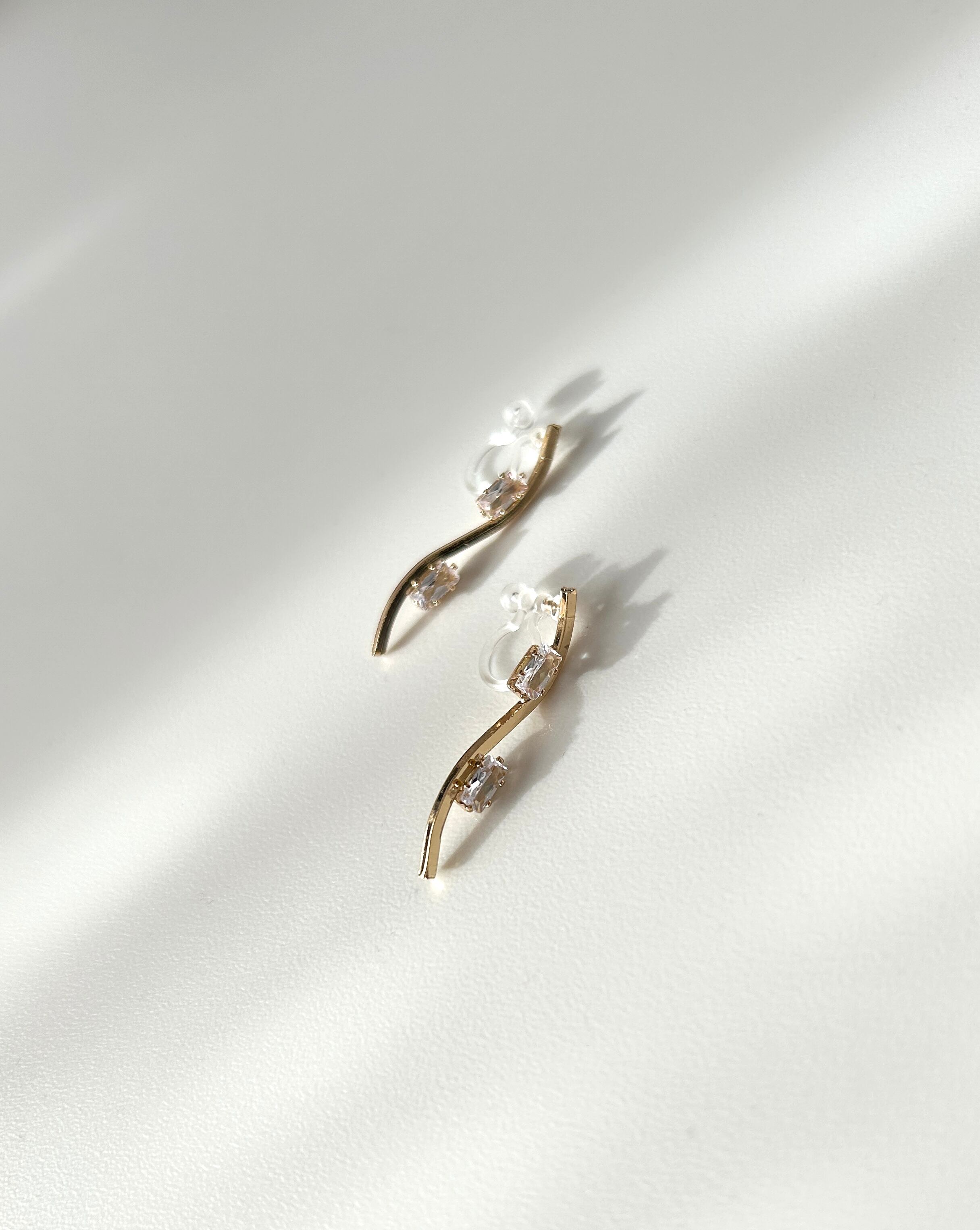 ・ウェーブラインストーン付き樹脂ノンホールピアス