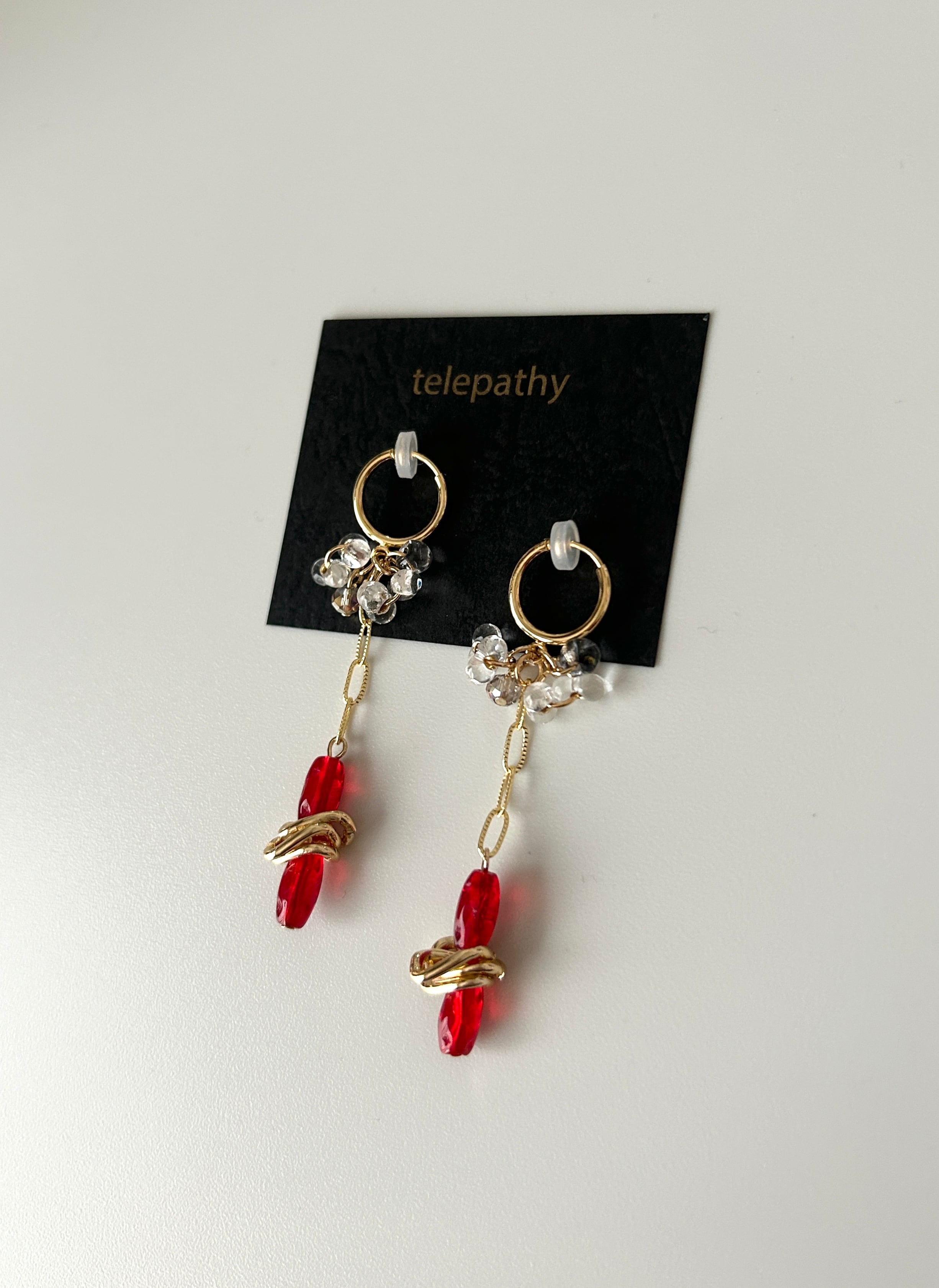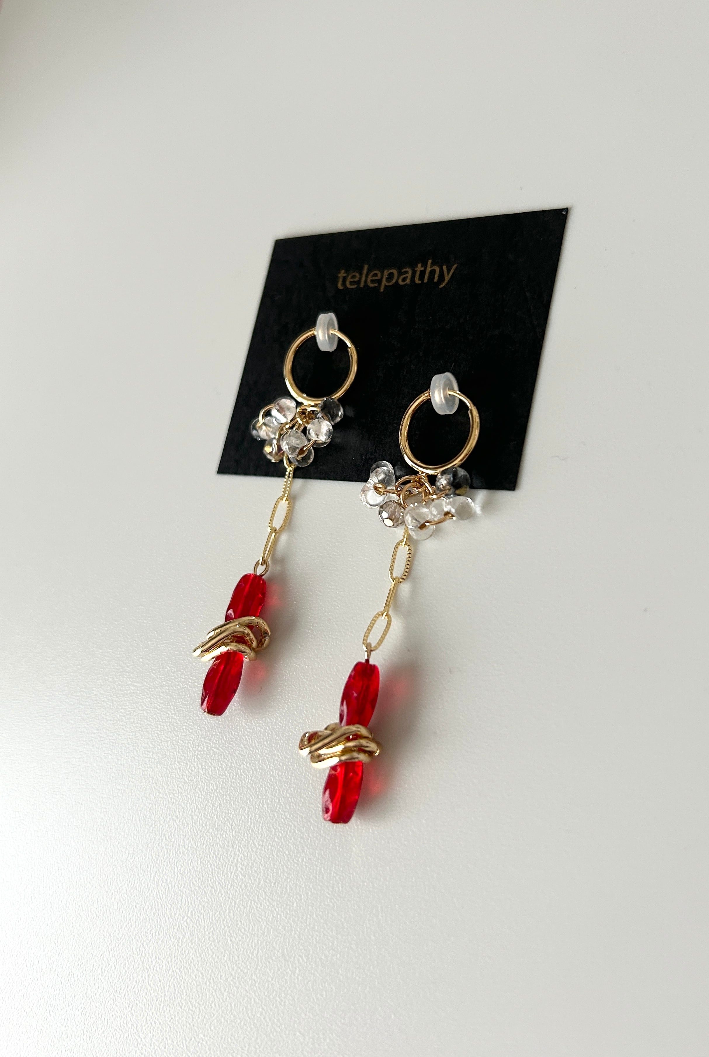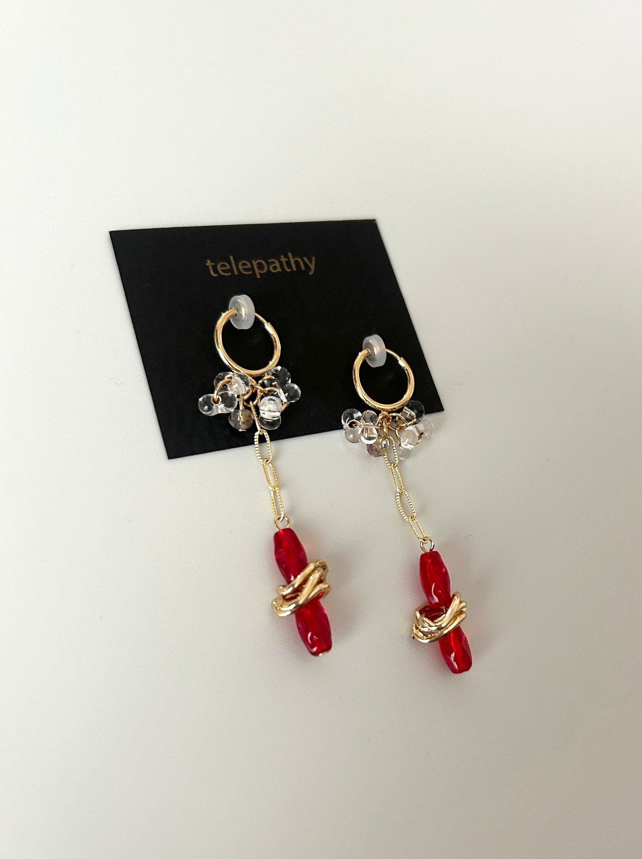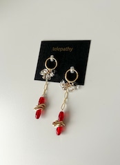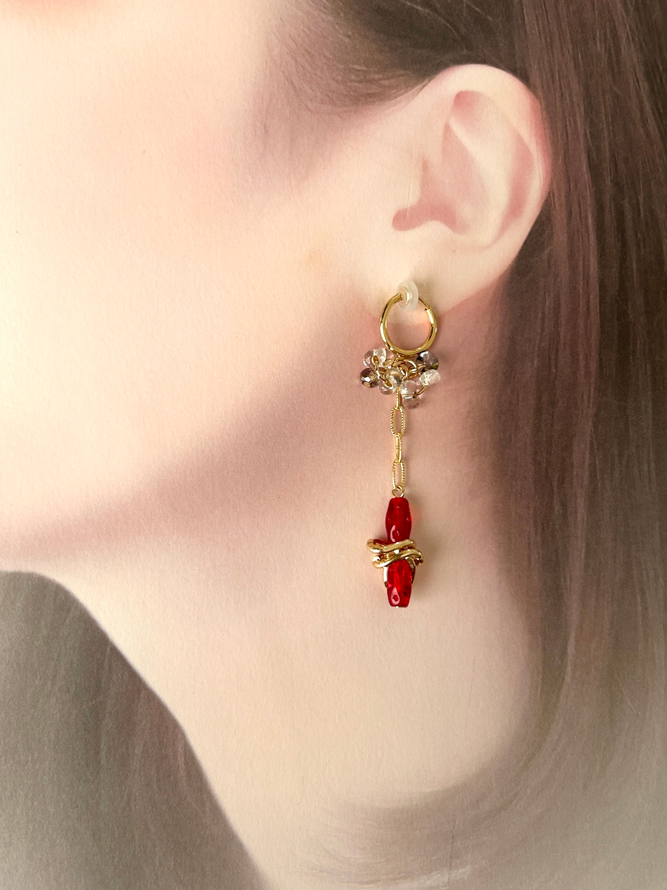 赤いvintageガラスビーズが素敵に揺れる、大人ね耳元にぴったりなフープイヤリングです。