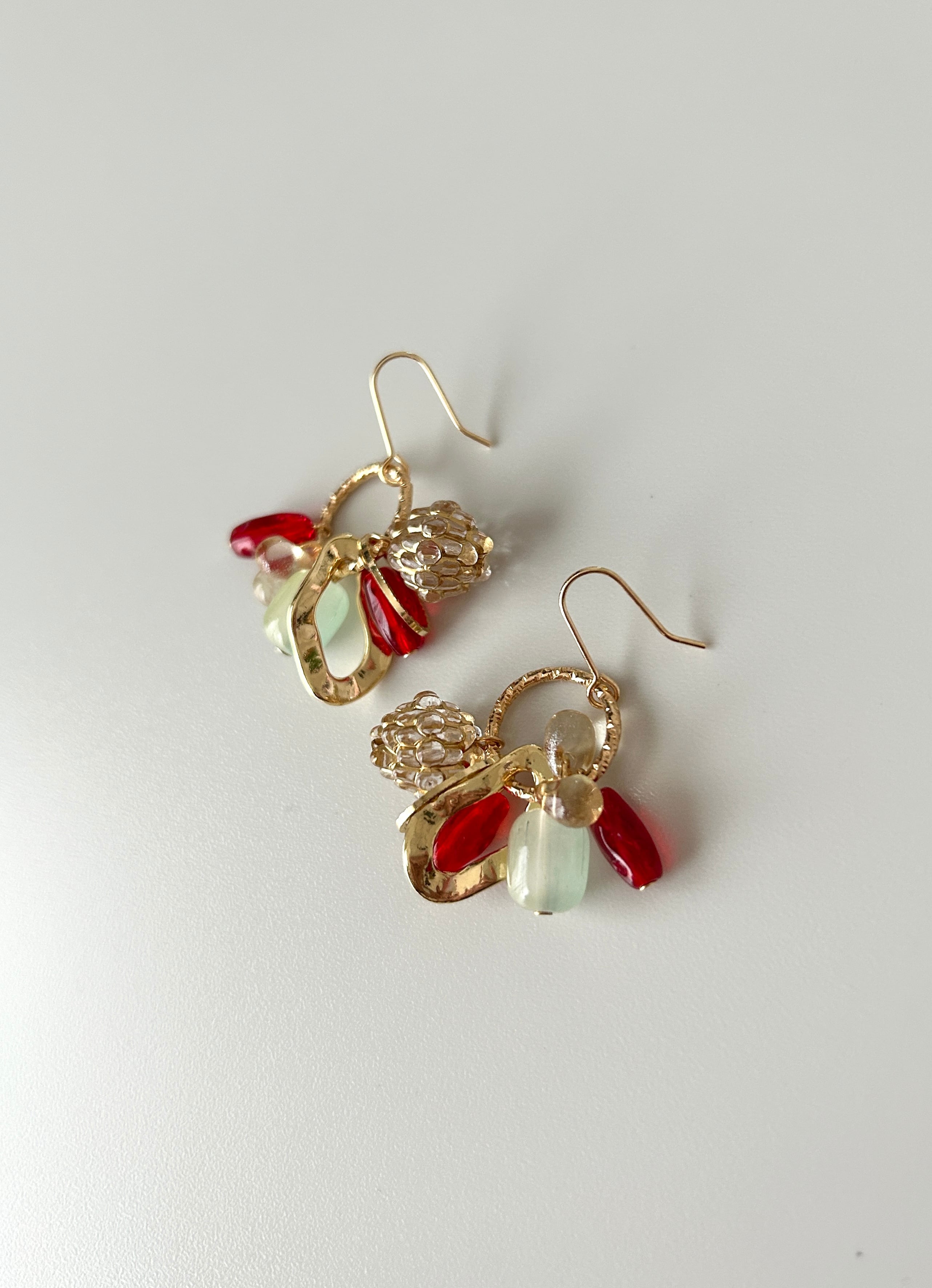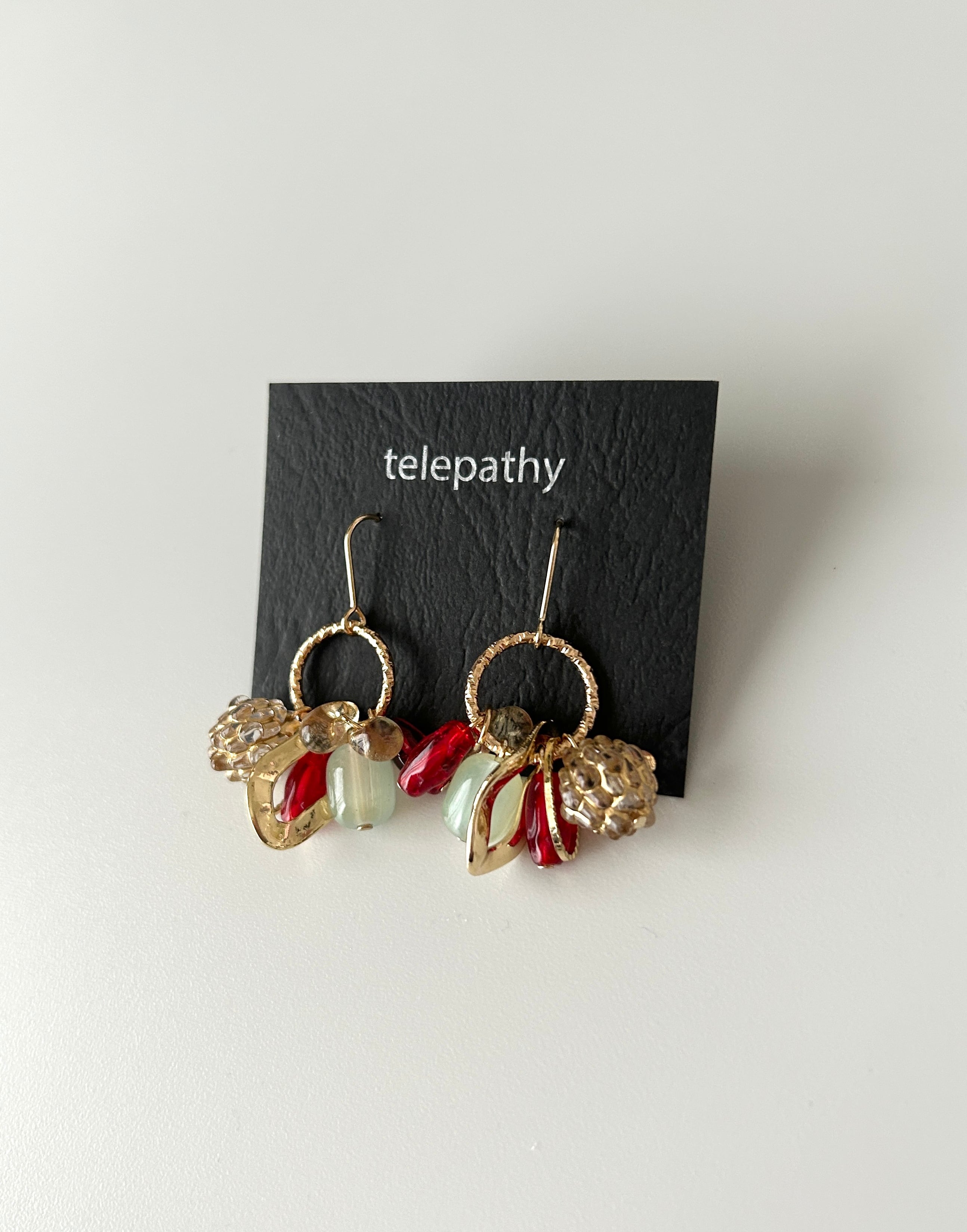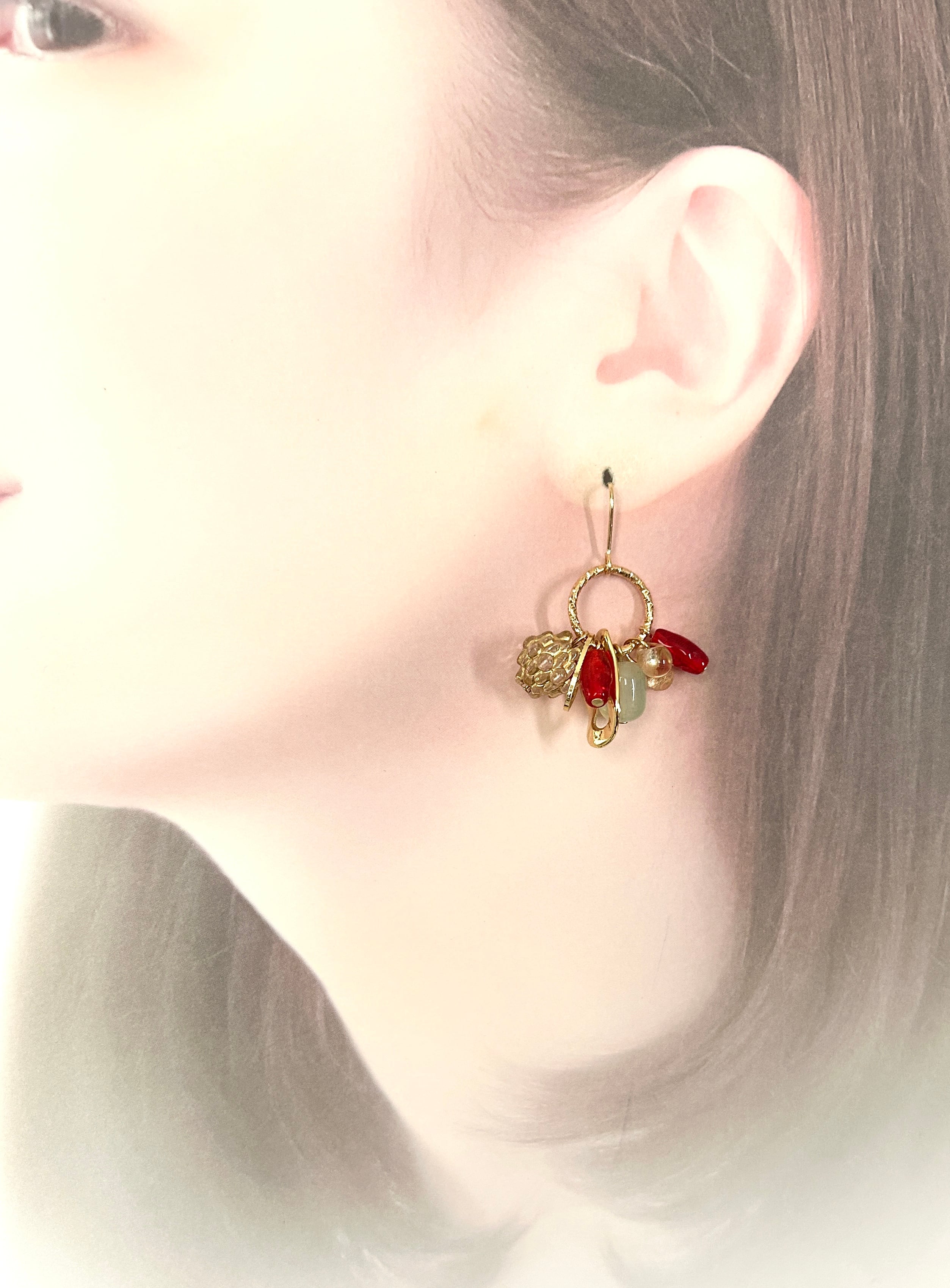 vintageガラスやチェコビーズ等を合わせた、どことなくフレッシュさを感じるピアスです。