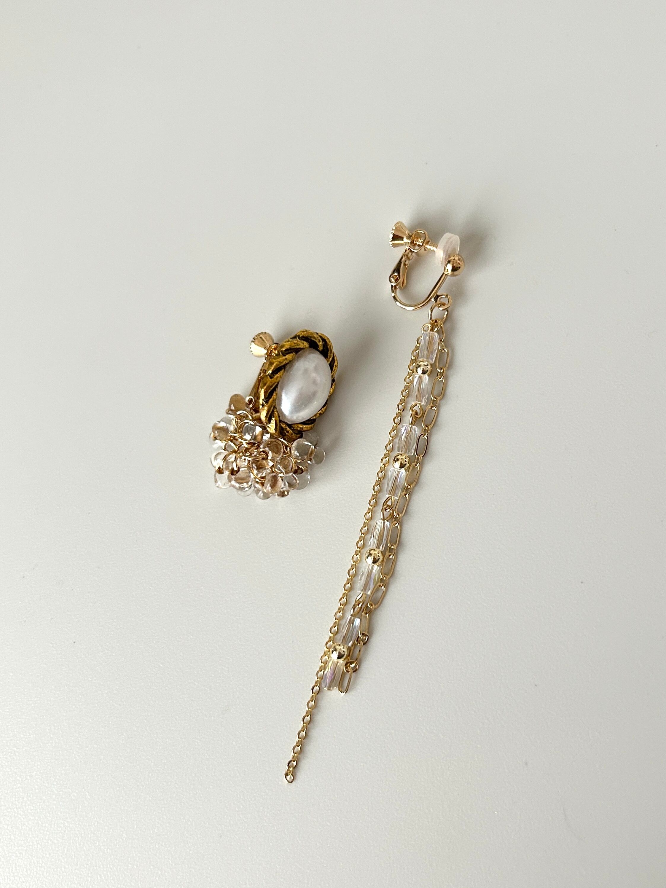 クラシカルパールカボション×チェコビーズと、ガラスビーズ&チェーンタッセルの