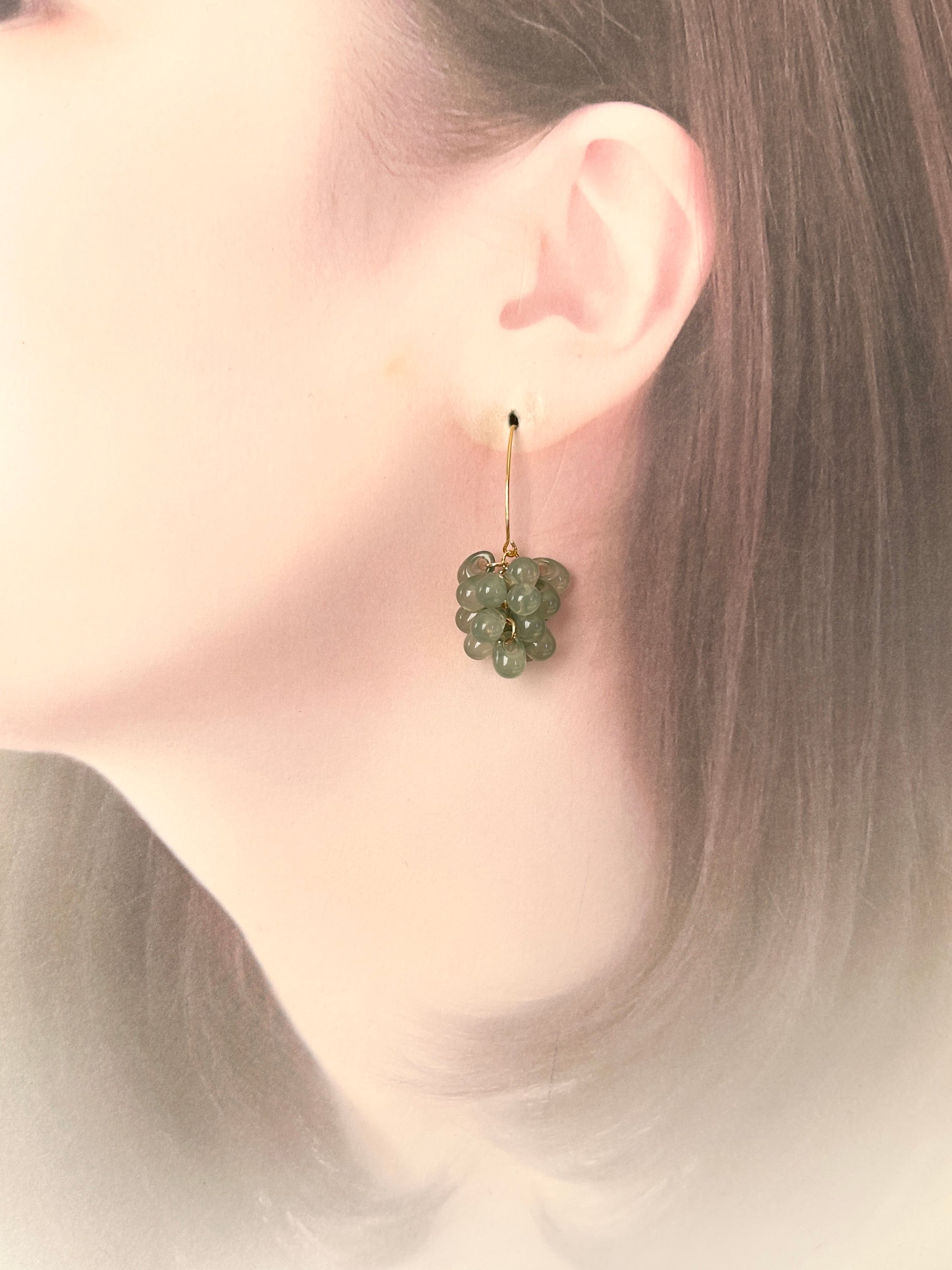 翡翠のような柔らかなグリーンが素敵な、ビッグフックが安定感のある大人ピアスです。