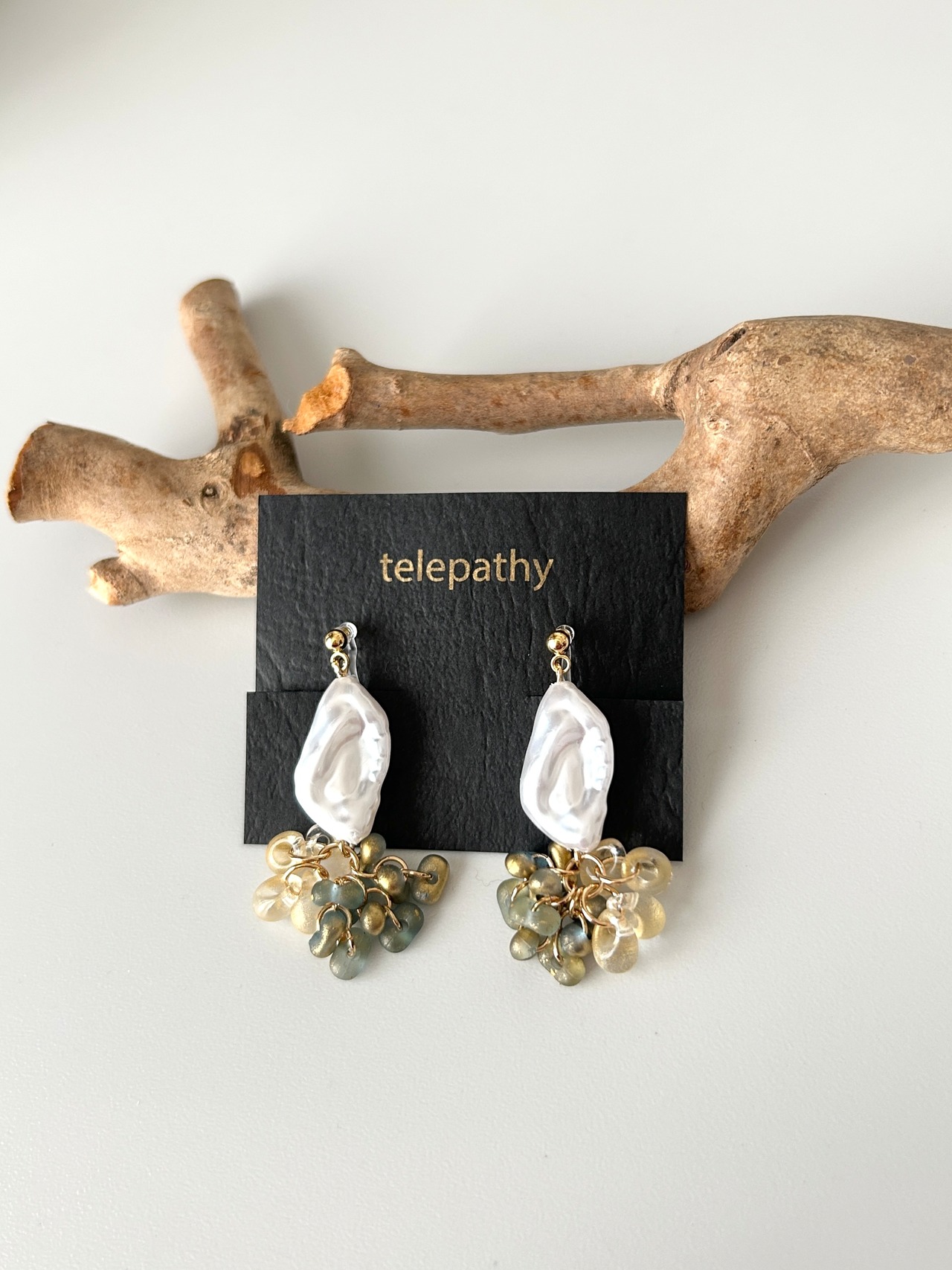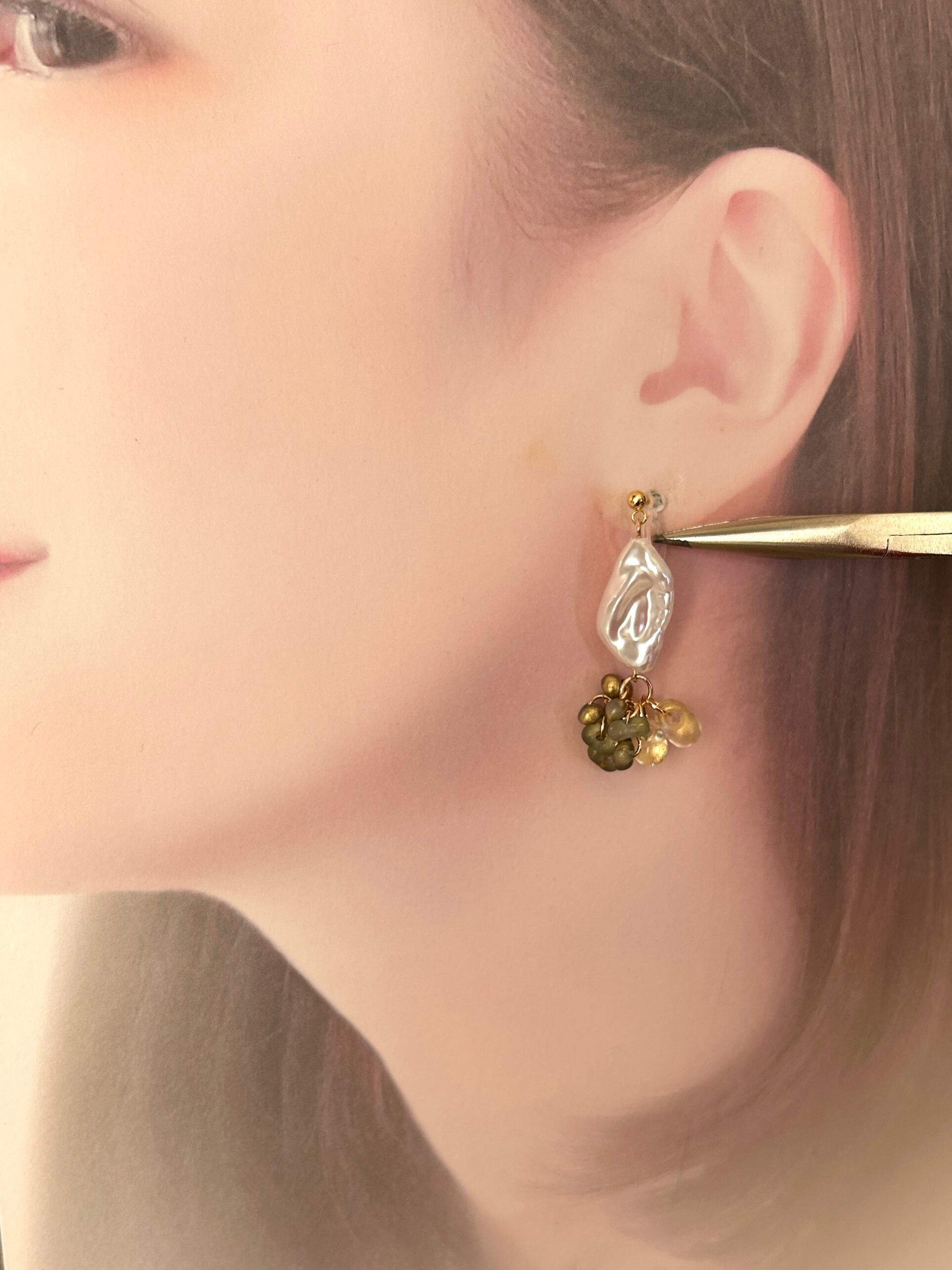 変形パールに、雰囲気のある2種ビーズをあわせました。