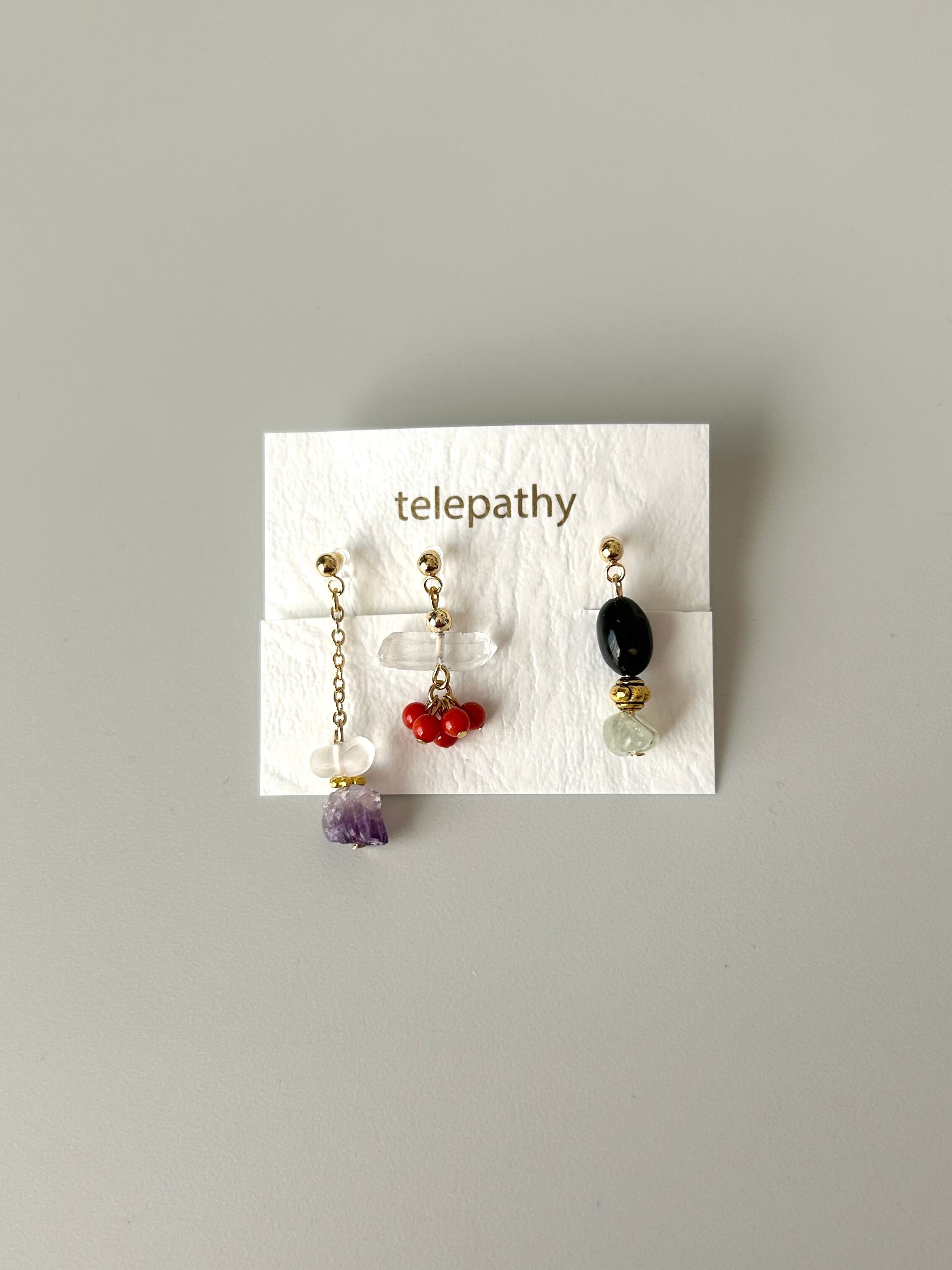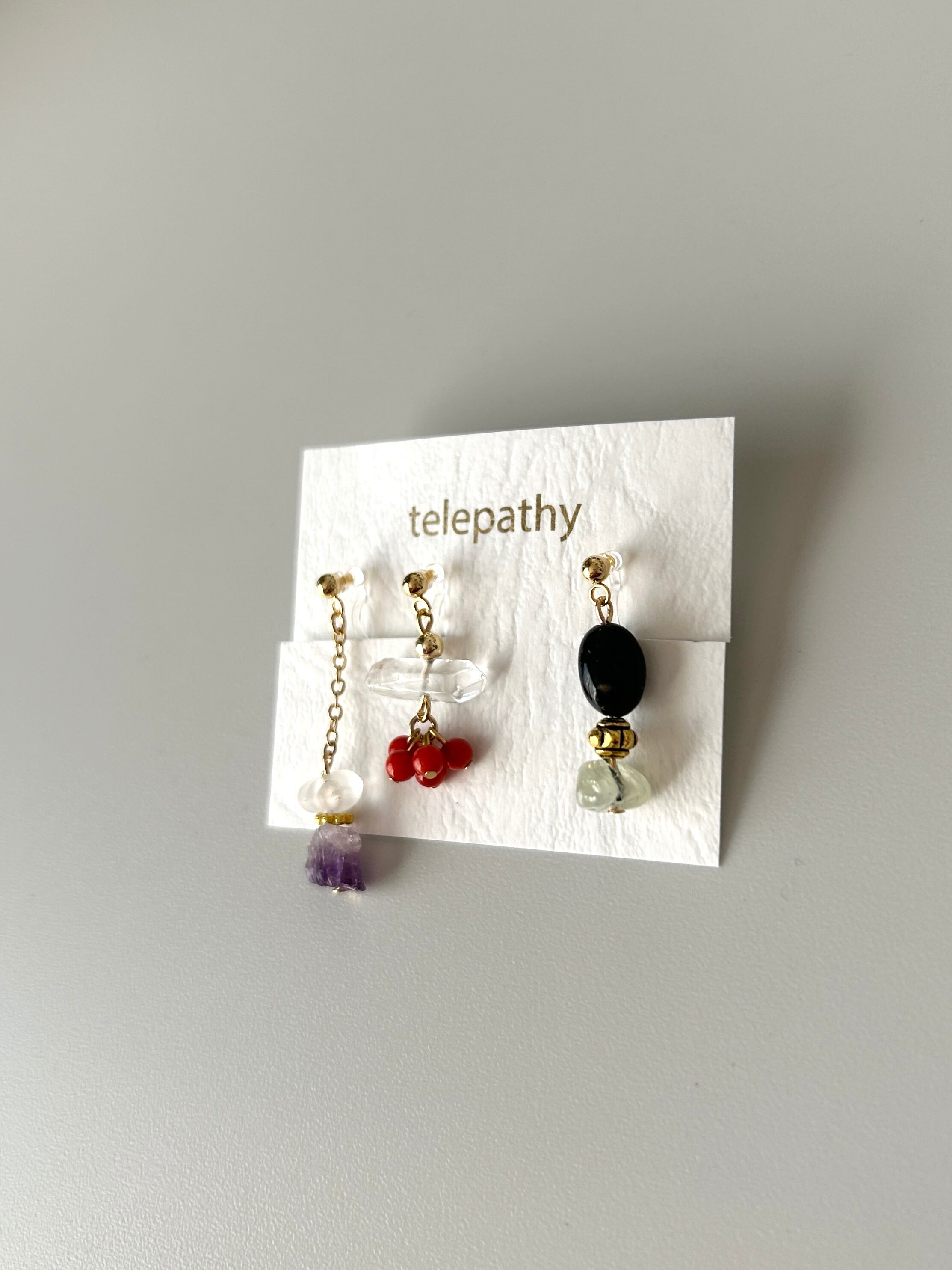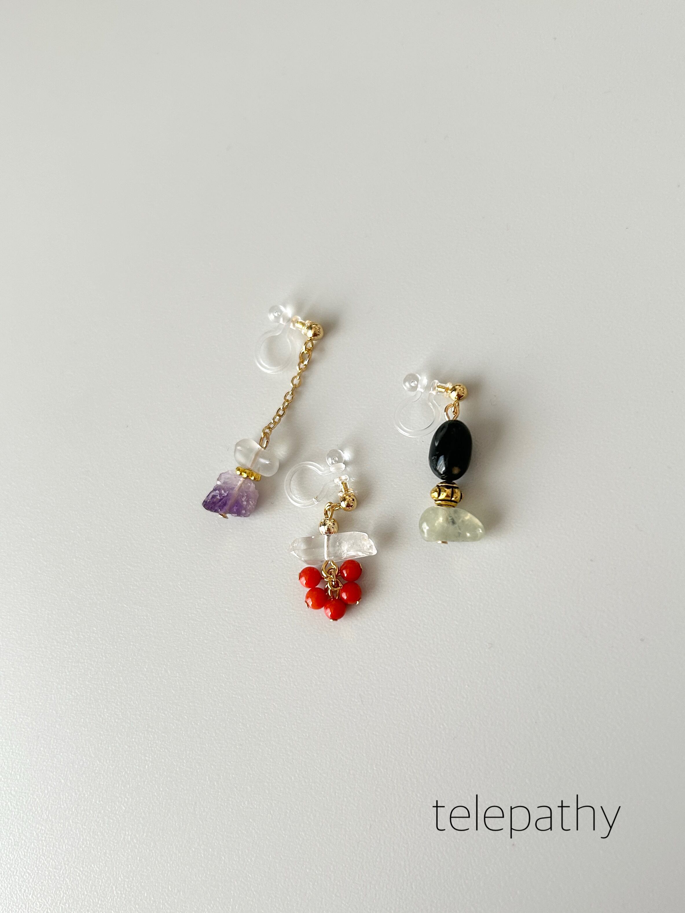 天然石アシンメトリー樹脂ノンホールピアスセット