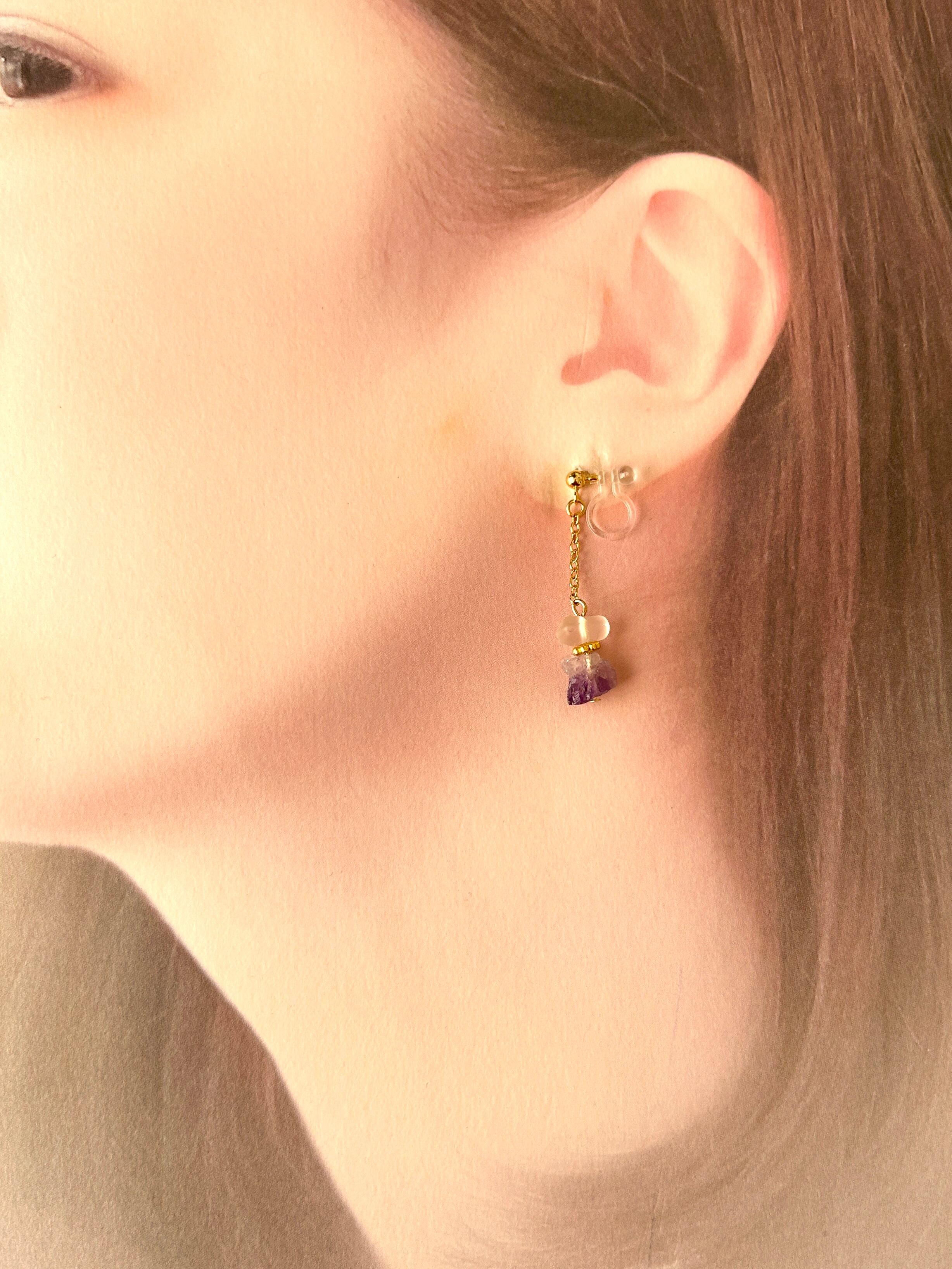 アシンメトリーで楽しめる、樹脂ノンホールピアスです。