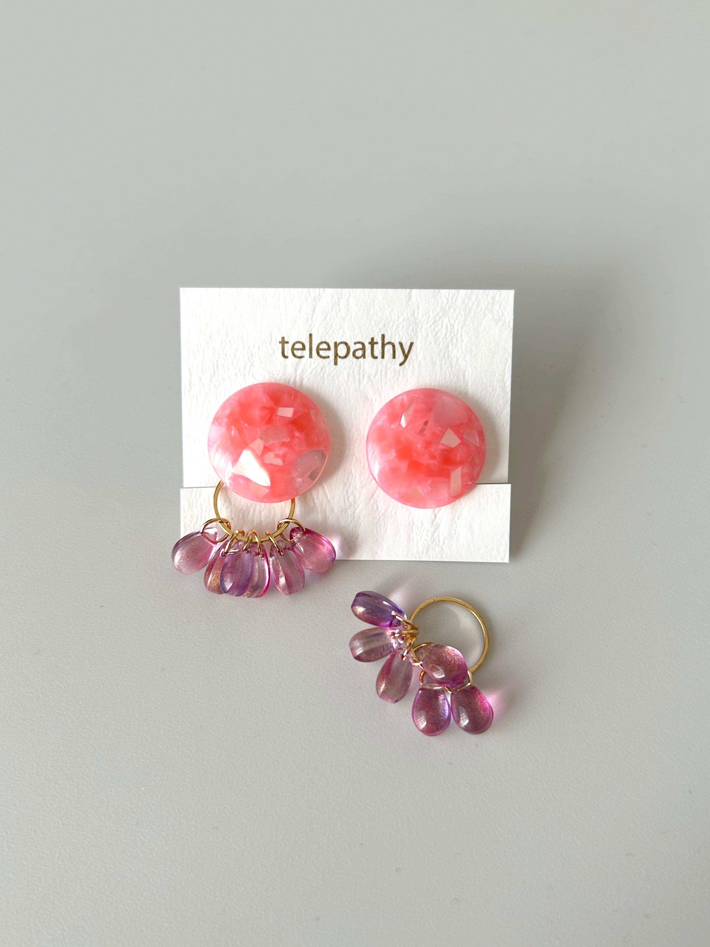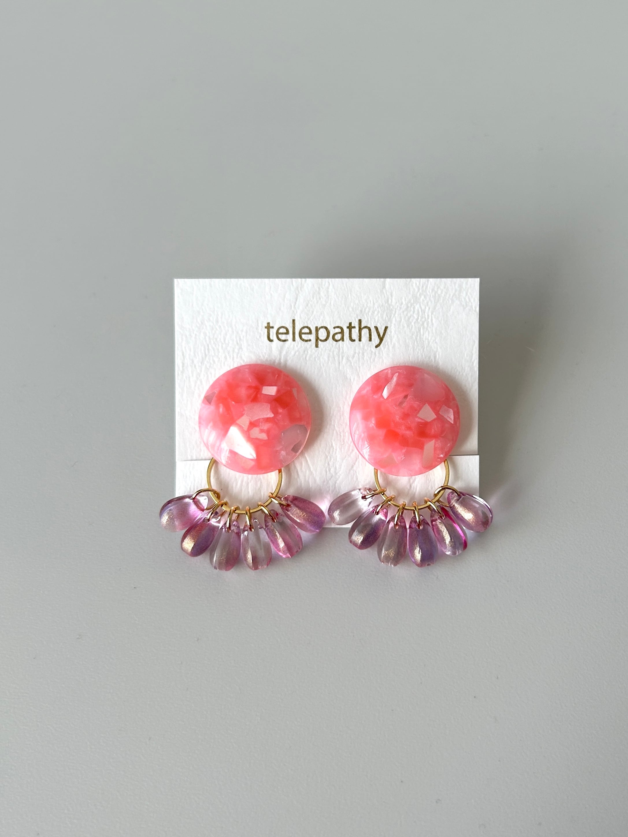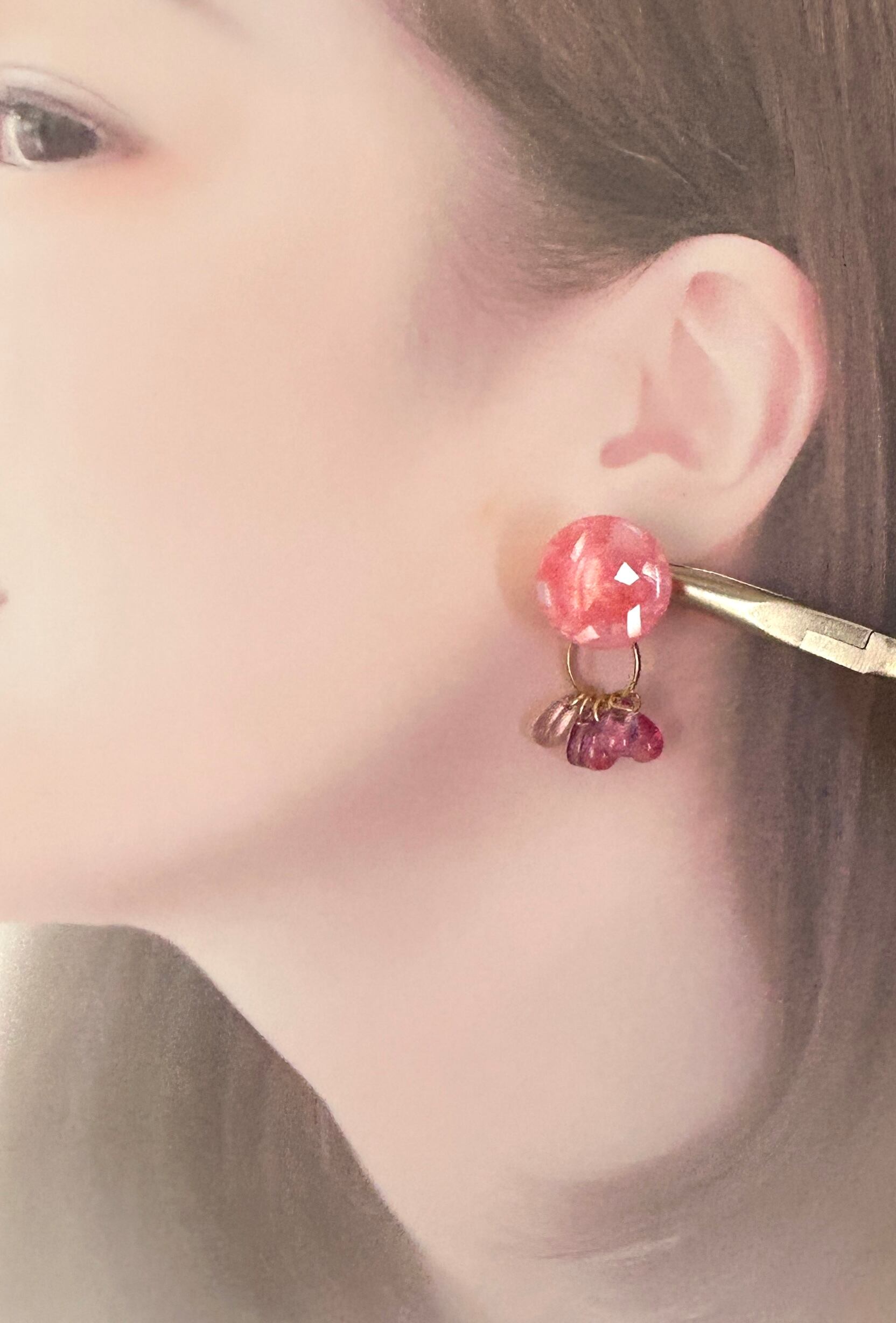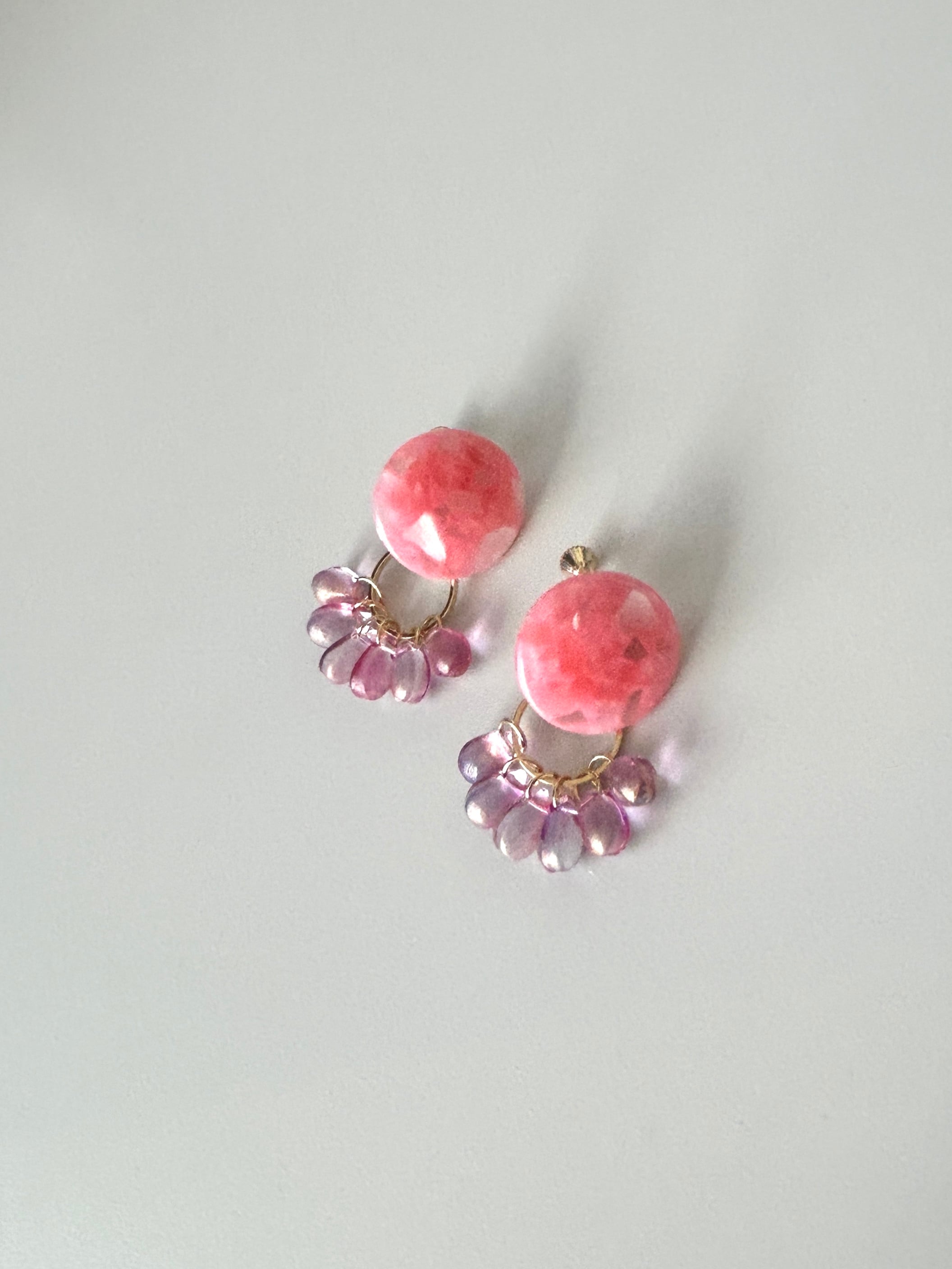 ピンクモザイクカボション×ドロップガラスビーズ。
