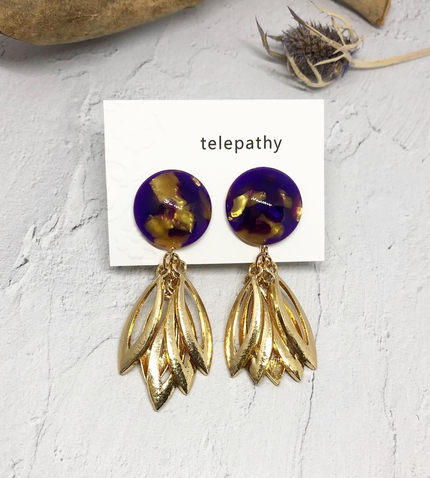 パープルの×ゴールドマーブルカボションに、シャラシャラメタルを合わせた大人かっこいいイヤリングです。