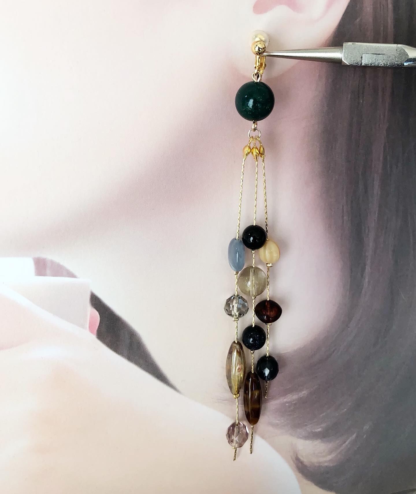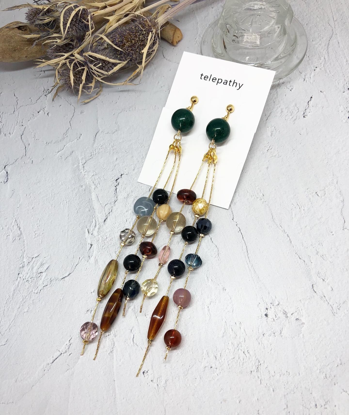コーデのアクセントにぴったりな、ロングアシンメトリーイヤリングです。