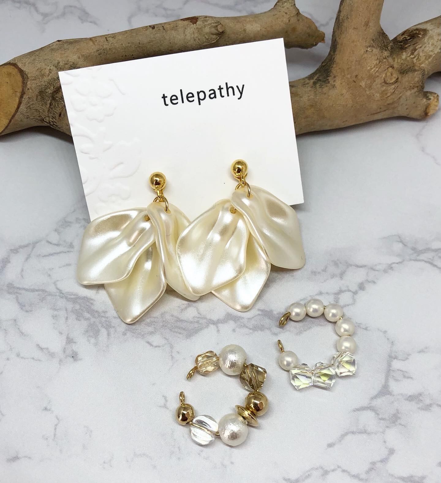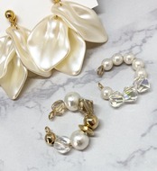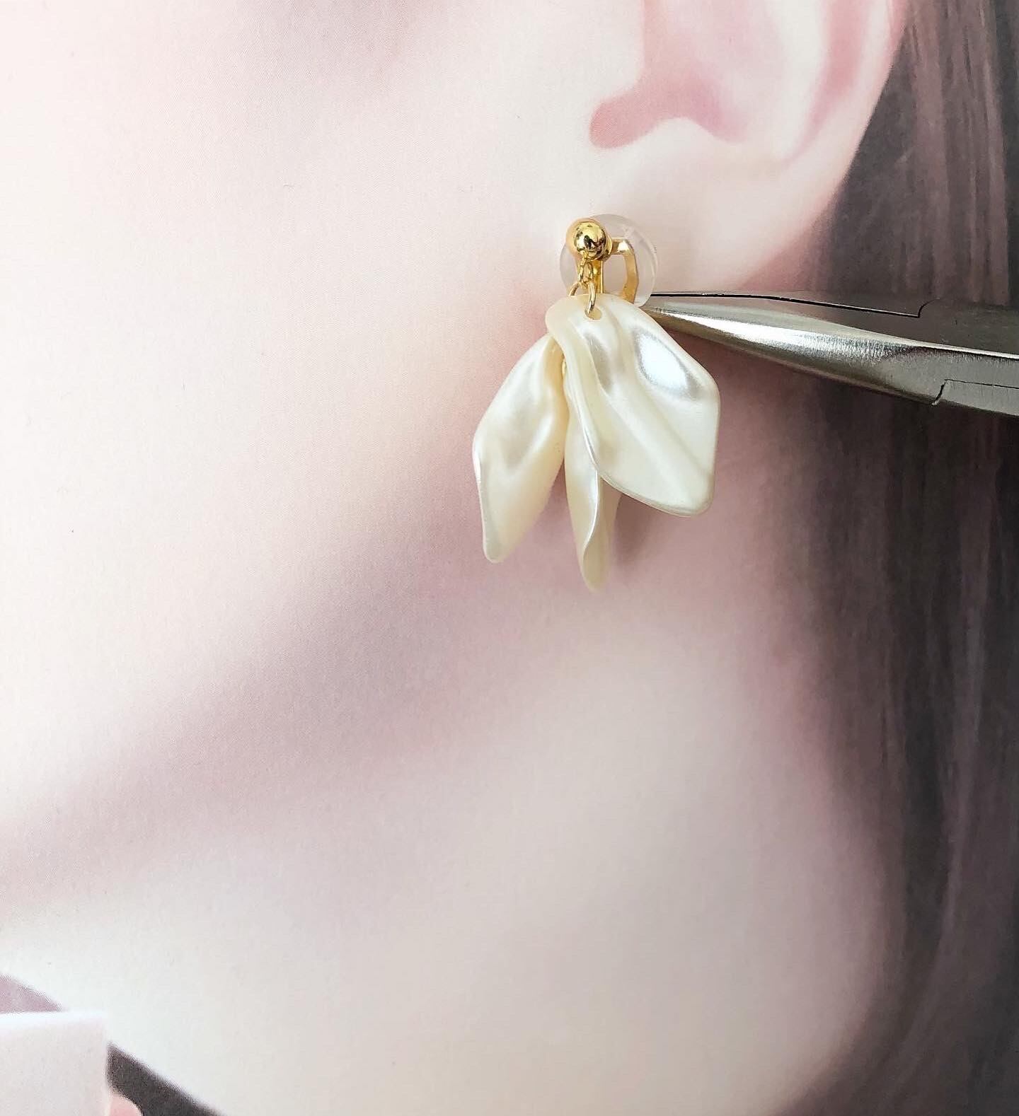 花びらが素敵なクリップイヤリングと、パールイヤーカフのセットです。