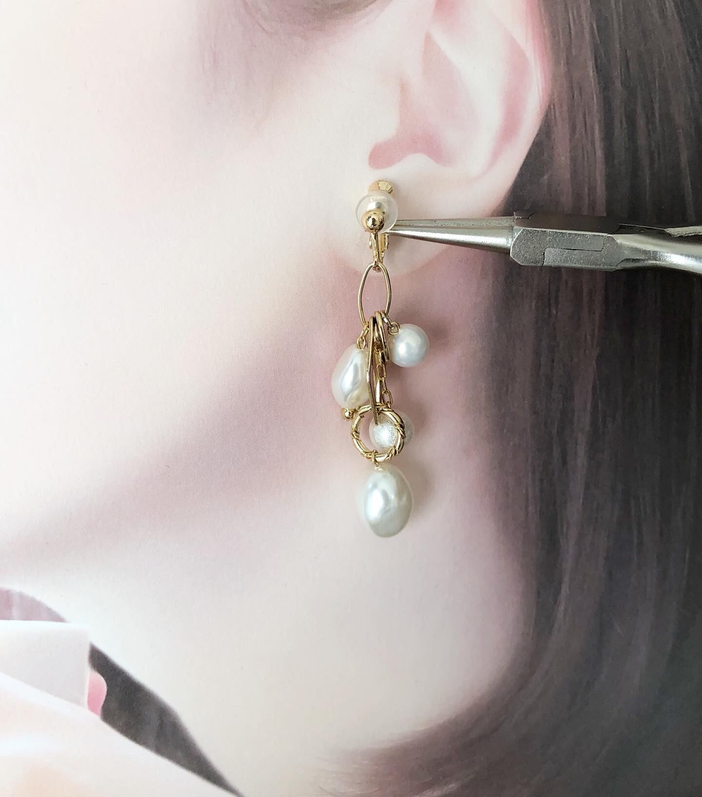 入卒業コーデにもぴったりな、様々なパールを使用した(シルキーパール、コットンパール等)、素敵に揺れるパールイヤリングです。