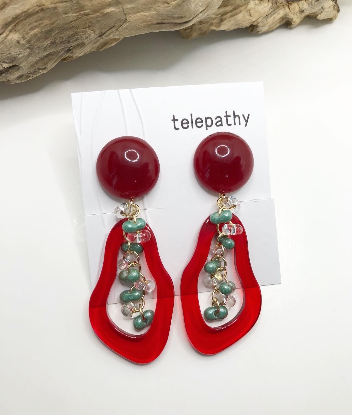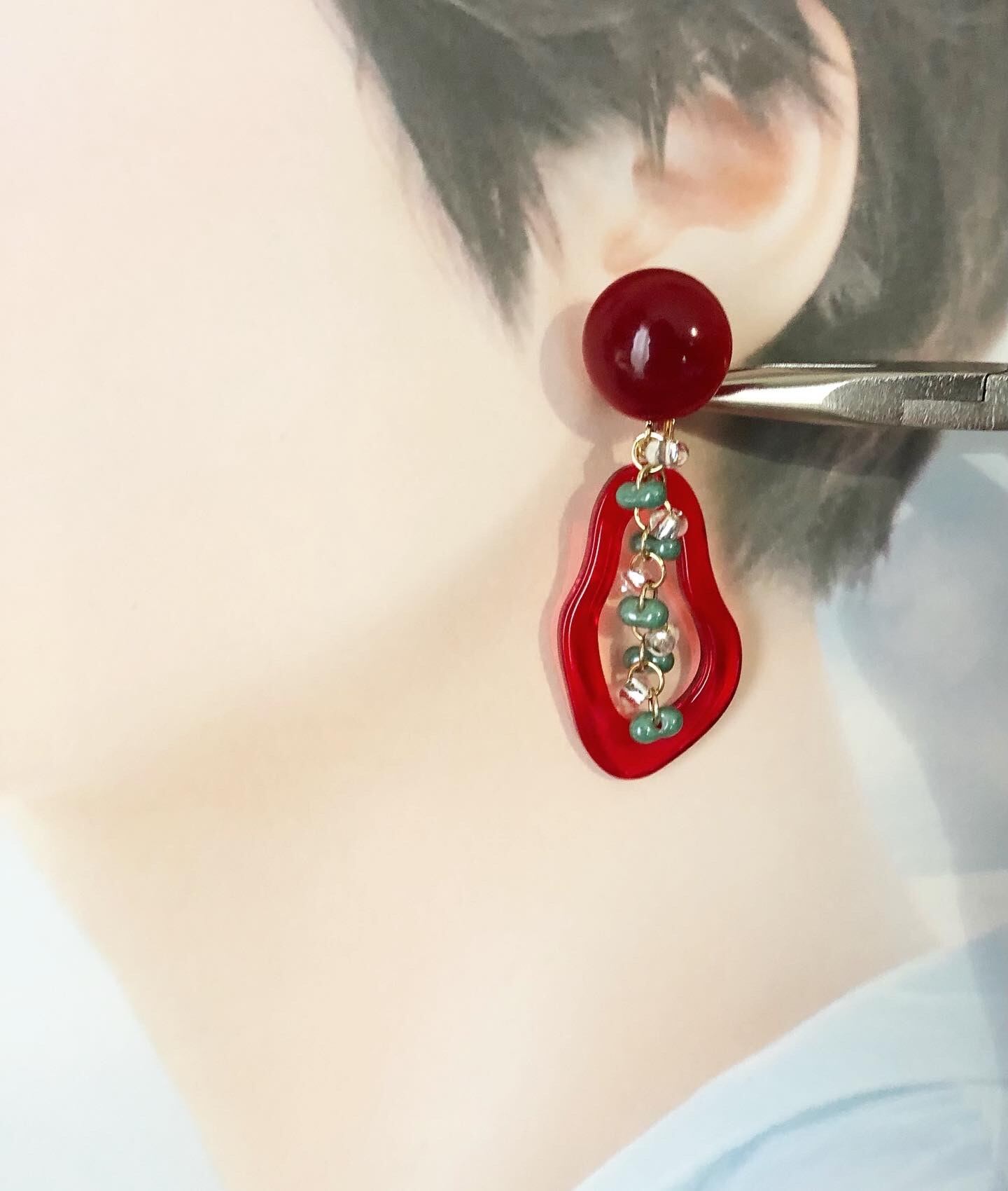 艶々なドイツ製アクリルにチェコシードを合わせた、差し色にぴったりな、大人イヤリングです。