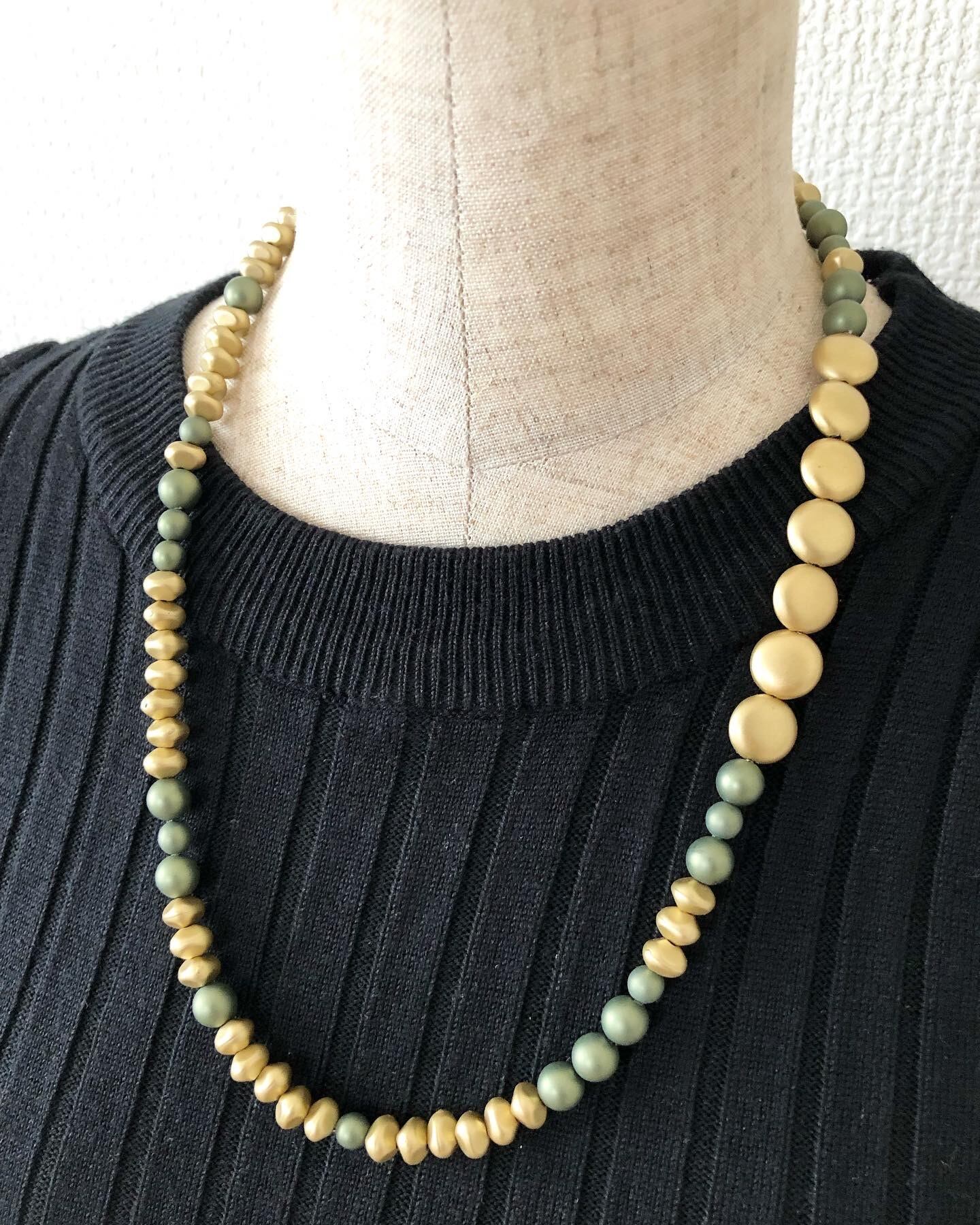 マットカーキ×マットゴールド、シンプルな装いに◎な、軽量ネックレスです。