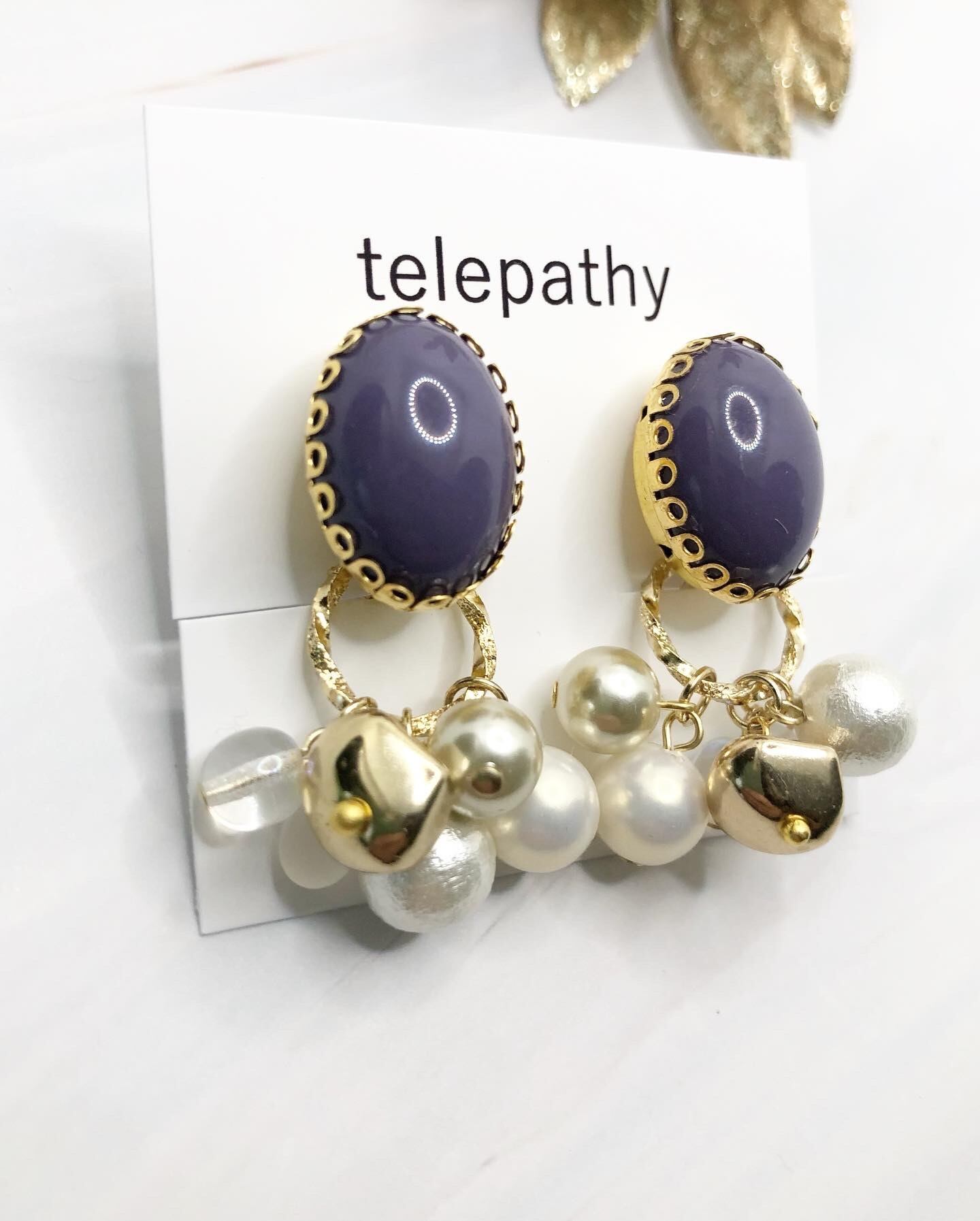 くすみパープル×パール2wayイヤリング ニッケルフリー