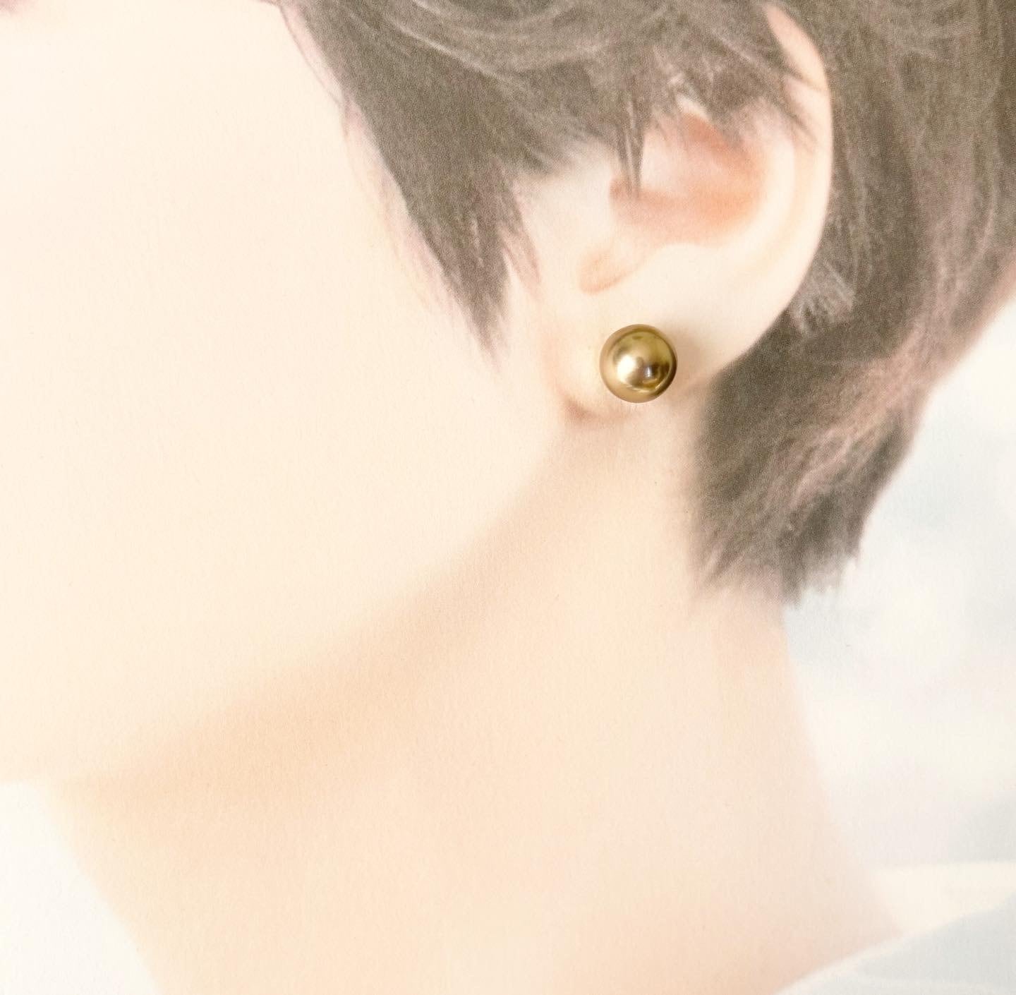 艶、照り、カラー(カーキブラウン)、上質な国産樹脂パールを使用した、シンプルな一粒ピアスです。