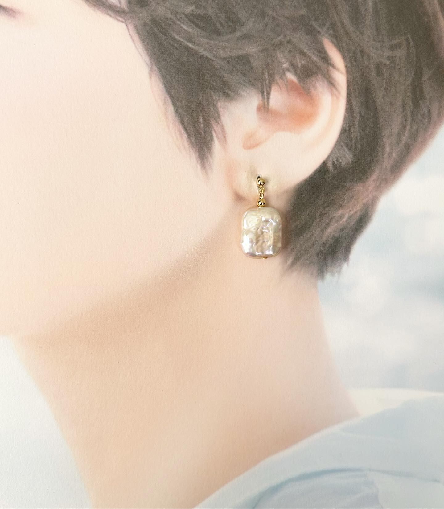 大粒レクタングル淡水パールの、シンプルながらも存在感のある上品な大人ピアスです。
