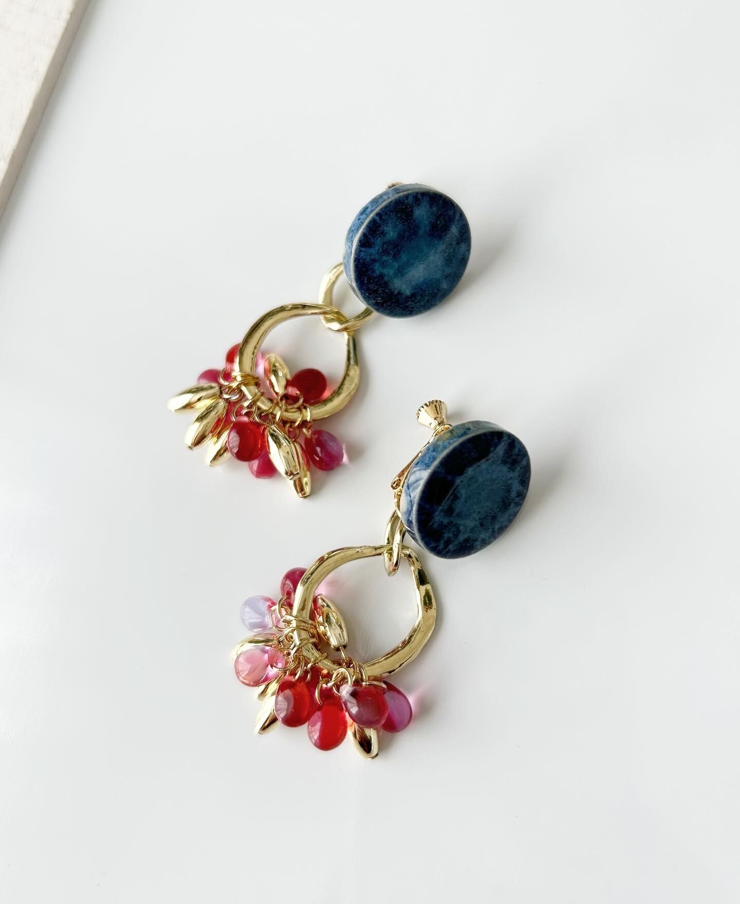 雰囲気のある青い美濃焼タイルにチェコビーズをジャラジャラ合わせた、2wayイヤリングです。