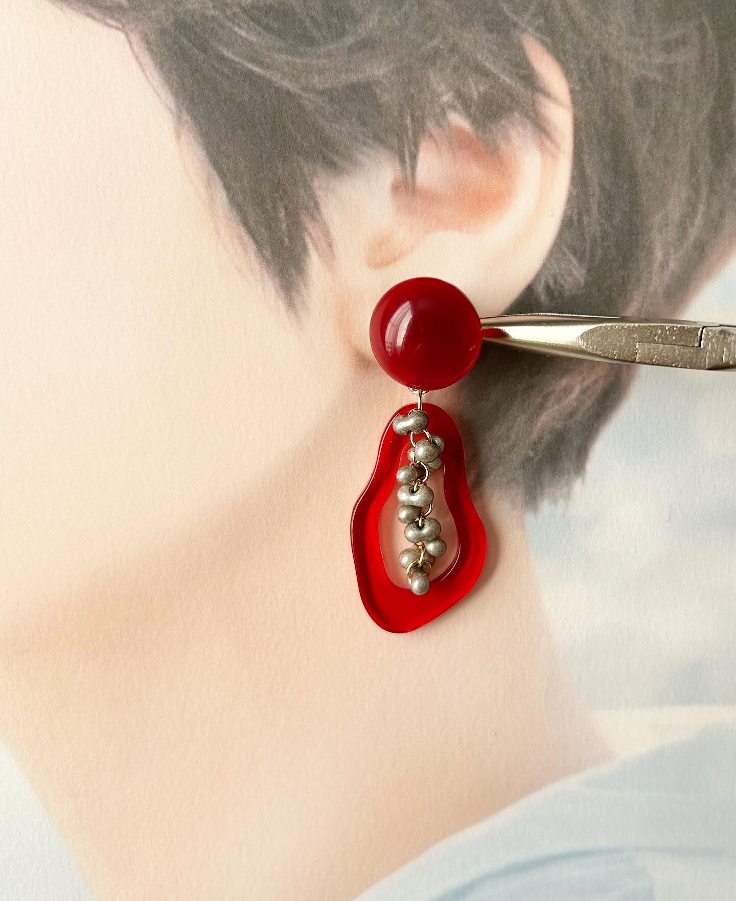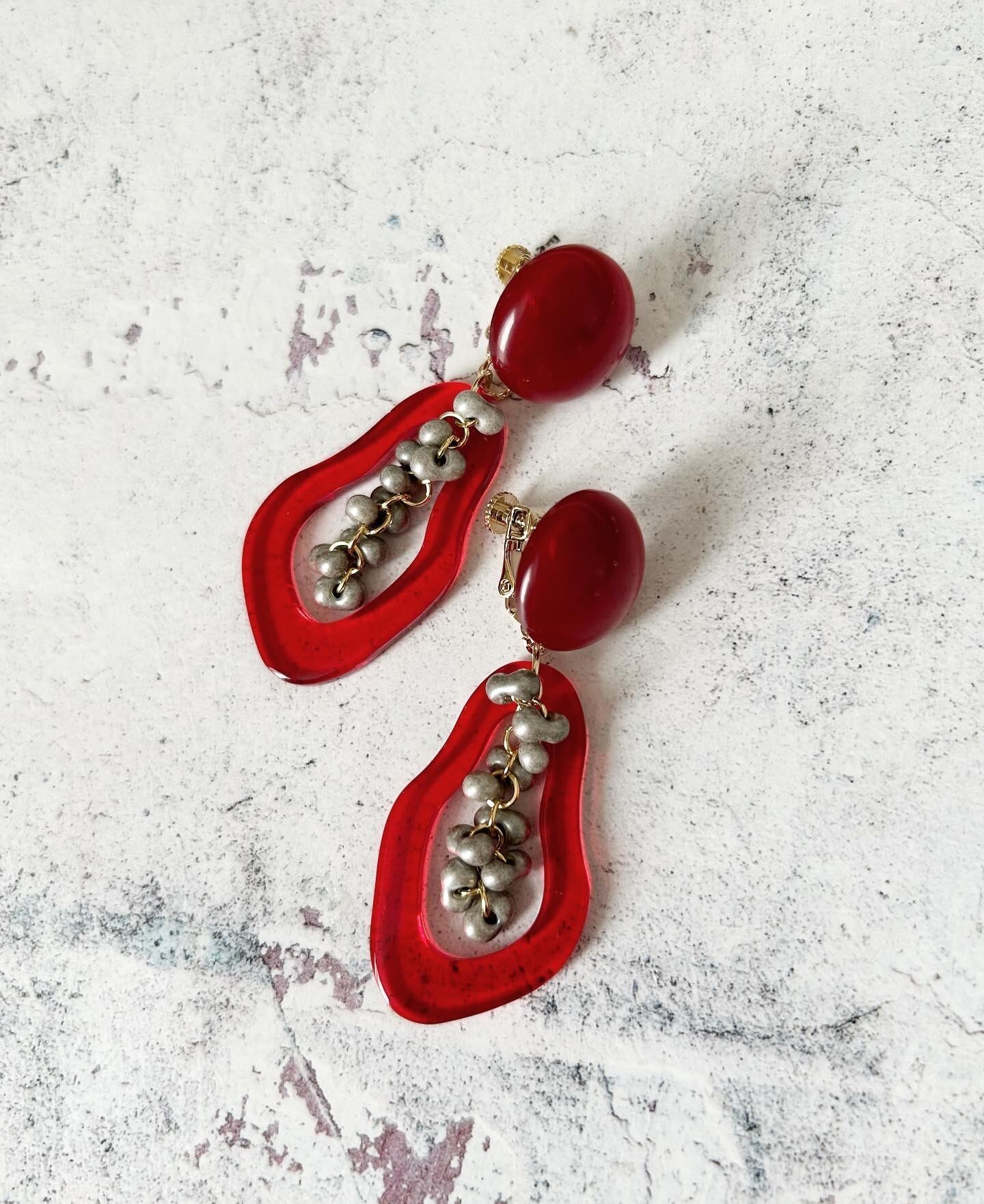 艶々ドイツ製アクリル×グレーチェコシードが素敵な、コーデの差し色にぴったりな大人イヤリングです。
