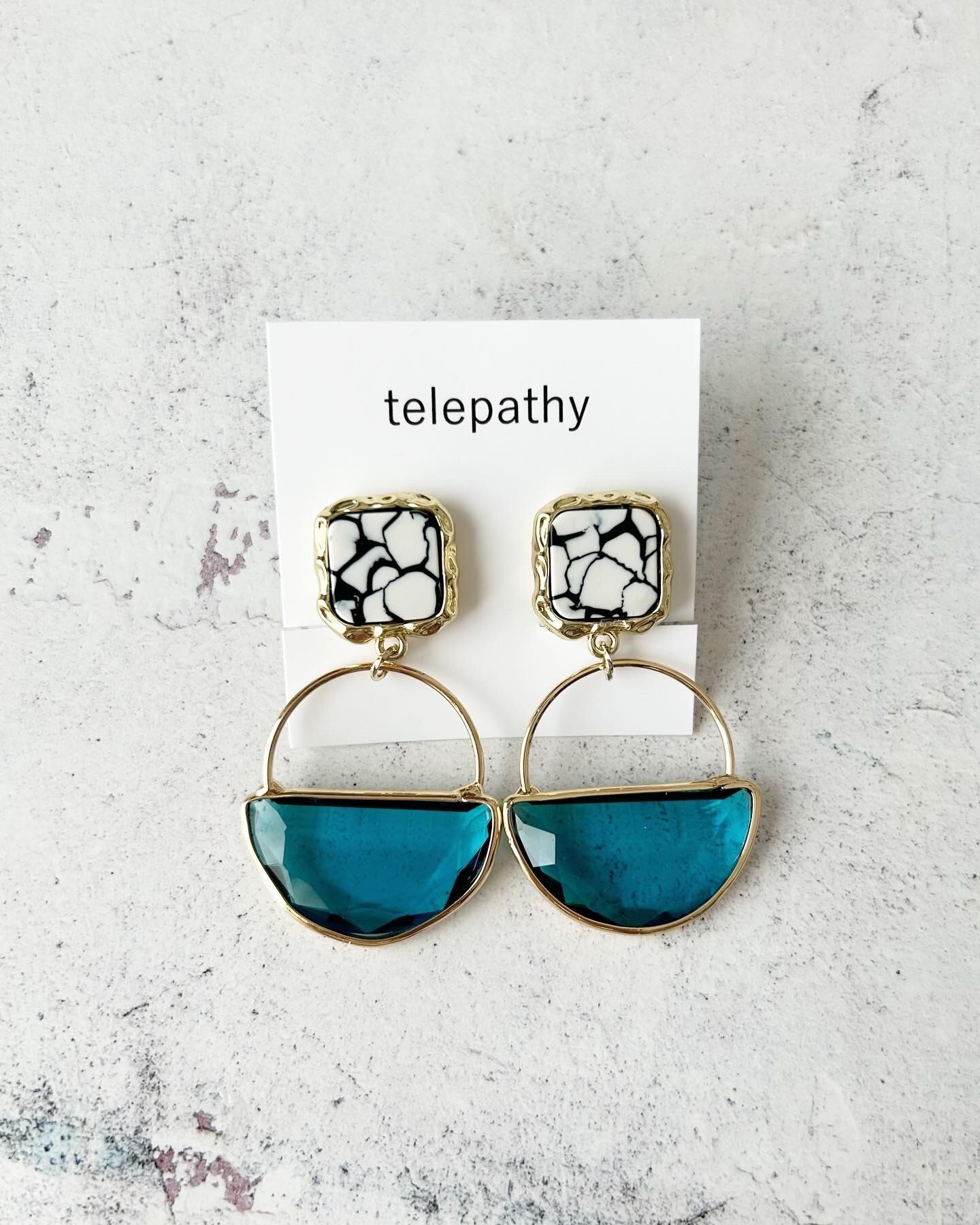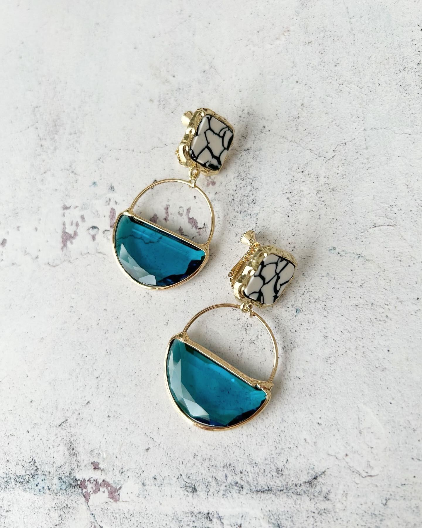 ストーン調アクリルカボションにブルーカラーガラスを合わせた、大人イヤリングです。
