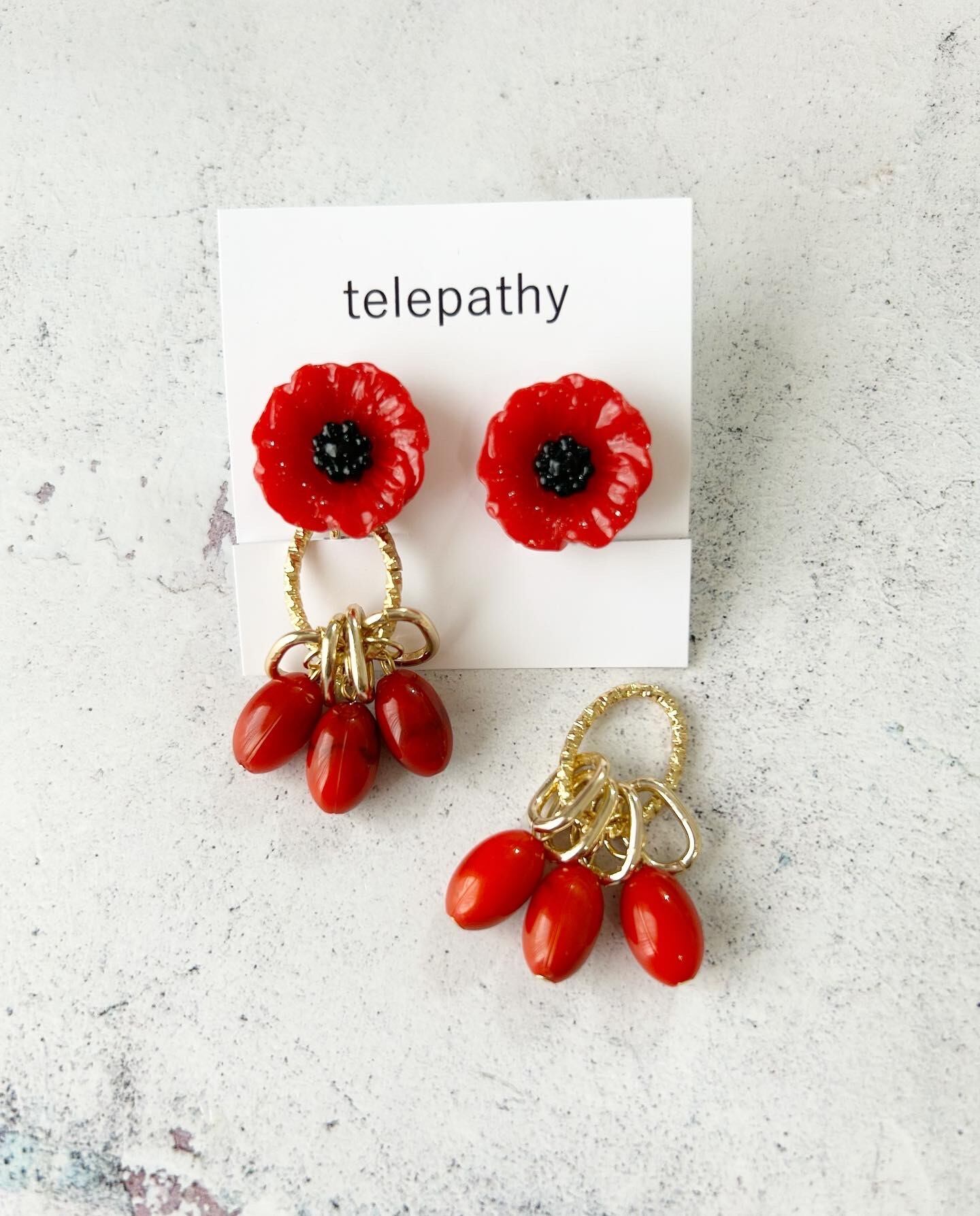 ポピーが可愛い、レトロな雰囲気の2wayイヤリングです。