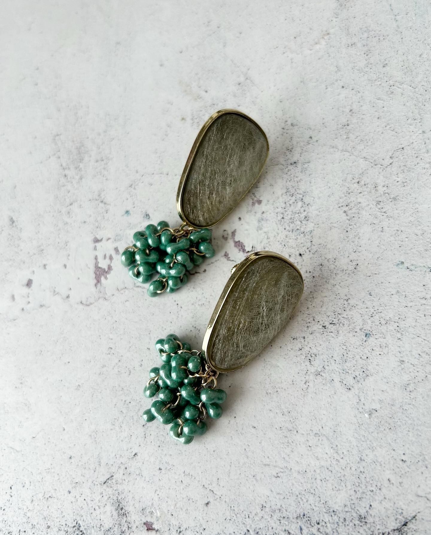 大ぶりカボションにチェコビーズタッセルが可愛い、インパクトのある大人イヤリングです。