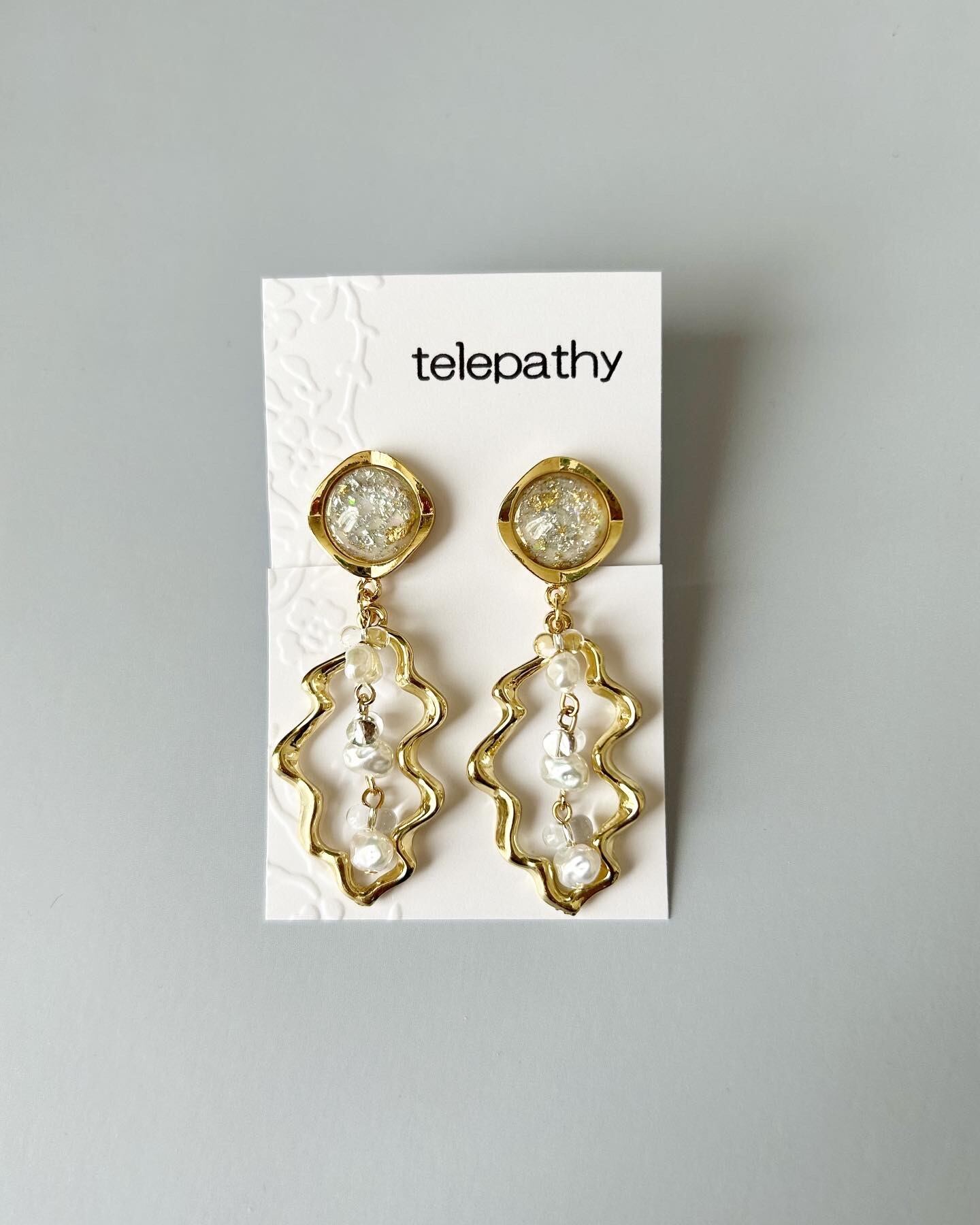キラキララメカボションに変形ゴールドチャームがかっこいい、耳元華やぐ大人イヤリングです。
