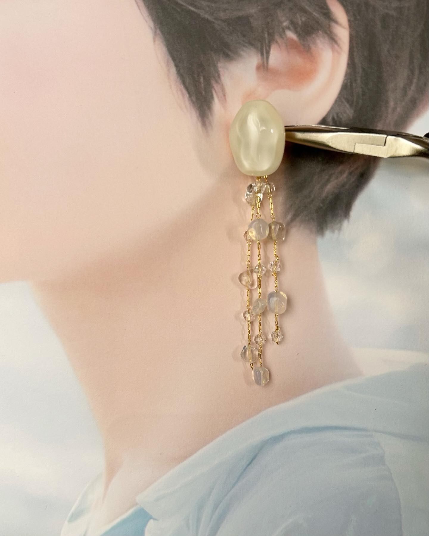 お顔周りを明るくしてくれる、ホワイトイヤリングです。