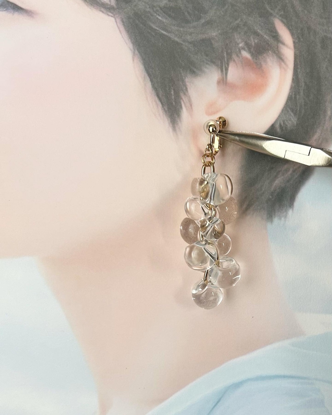 存在感のあるゴロゴロ大ぶりクリアが可愛い、 カジュアルにも綺麗めにも合う大ぶりイヤリングです。