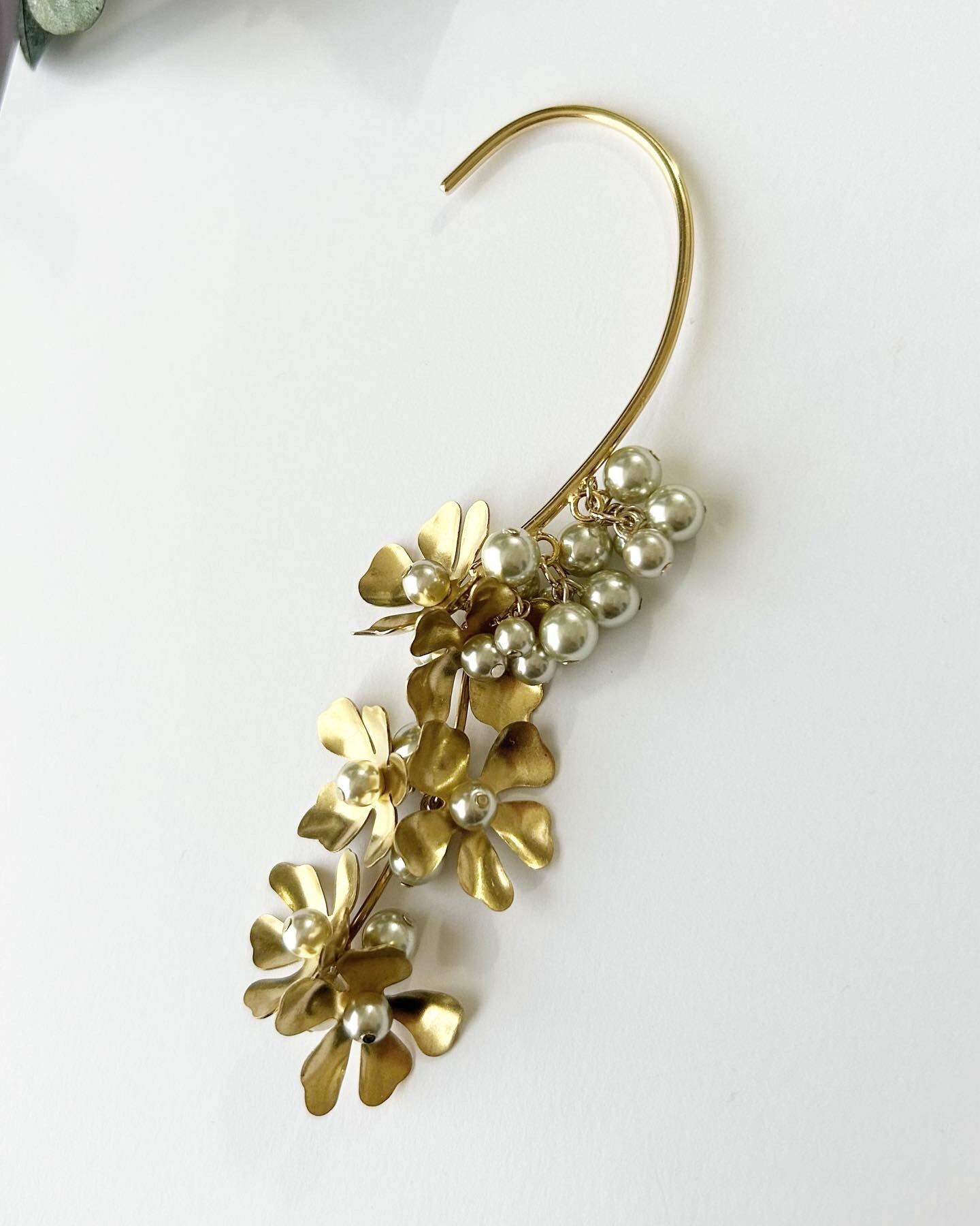 シャラシャラ真鍮フラワーが素敵な、ほんのりリッチなイヤーフックです。