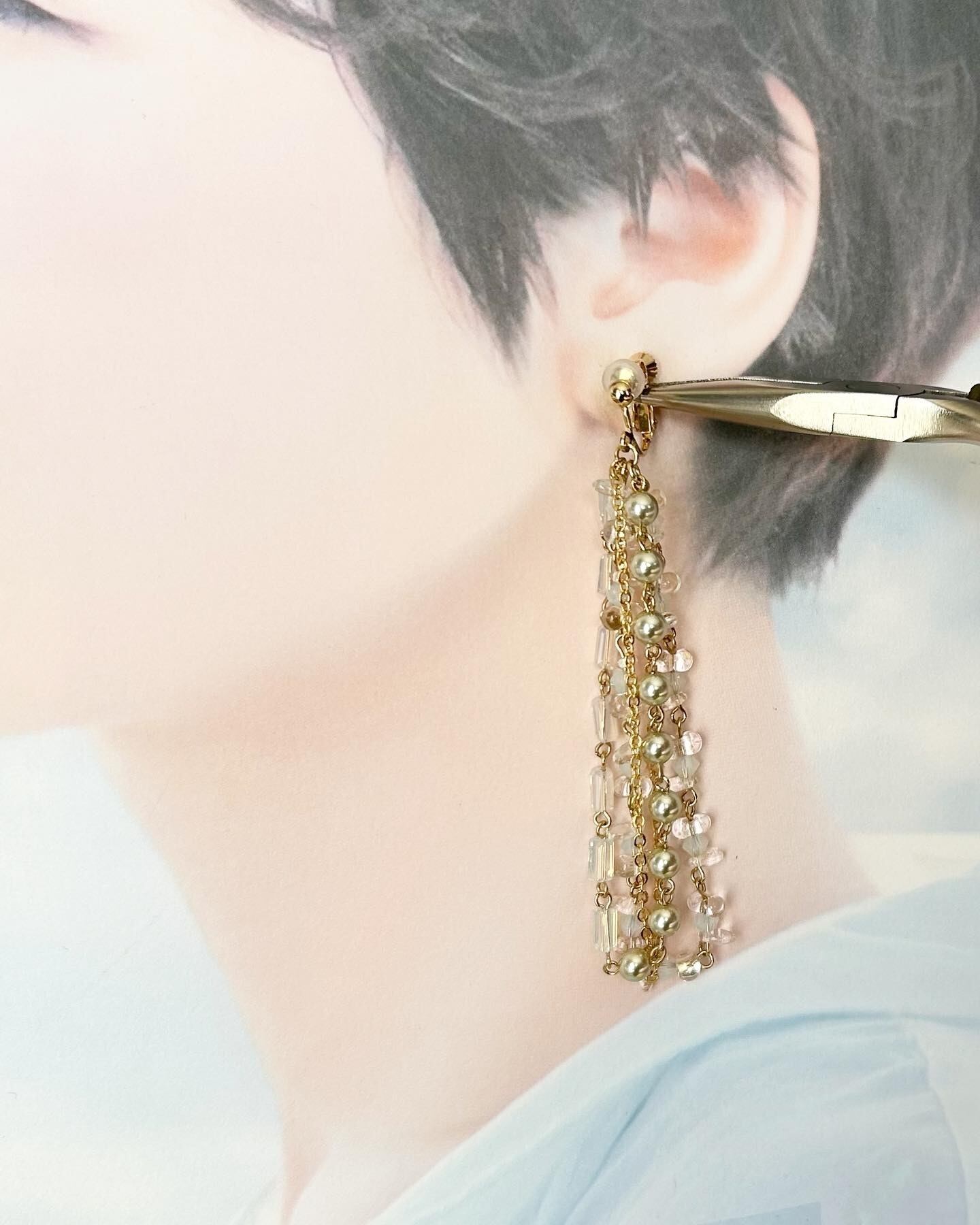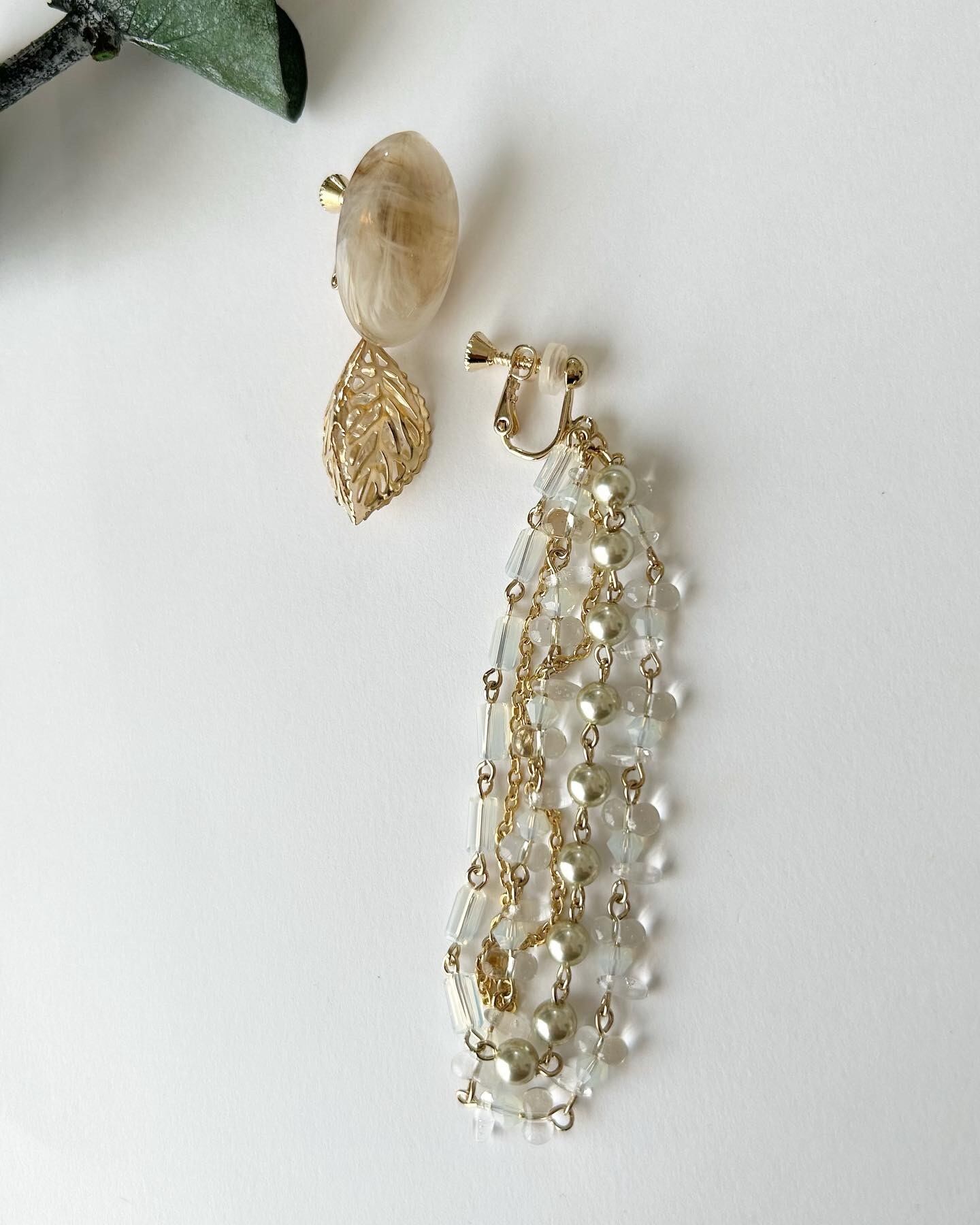 ベージュカボション&リーフ・ジャラジャラフープタッセル。