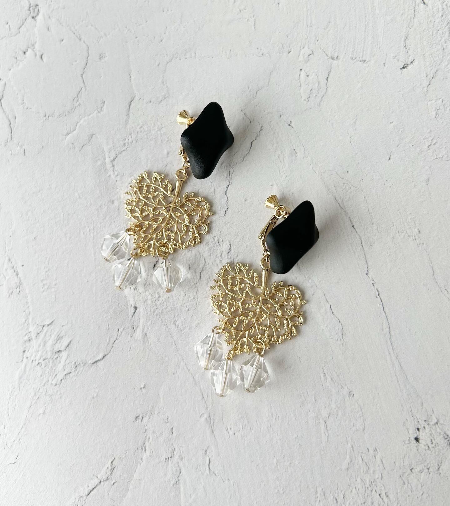 マットブラック、透かし(木?ハート?)、クリアガラスビーズ。