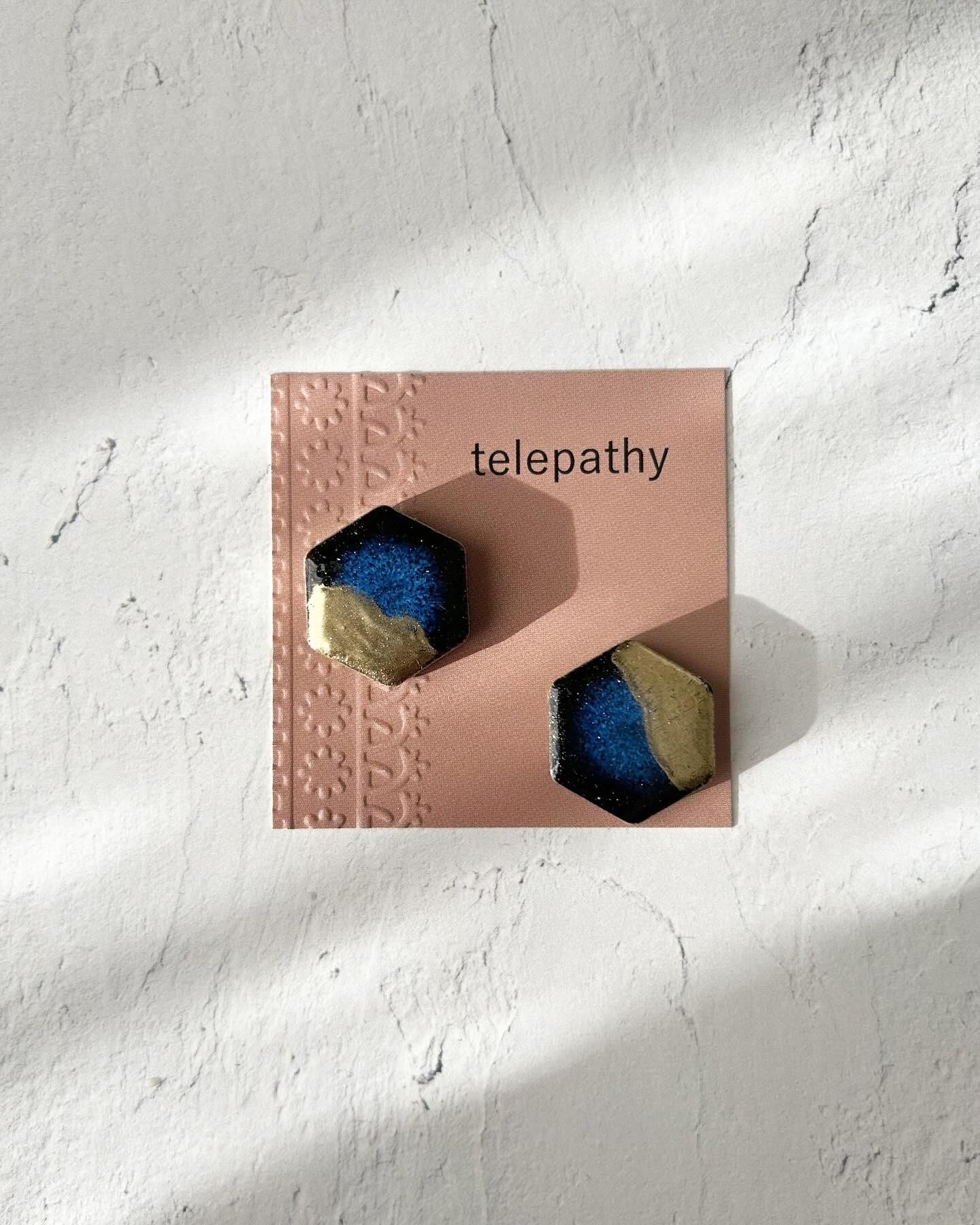 No.133 美濃焼タイル ブルー×ゴールドイヤリング