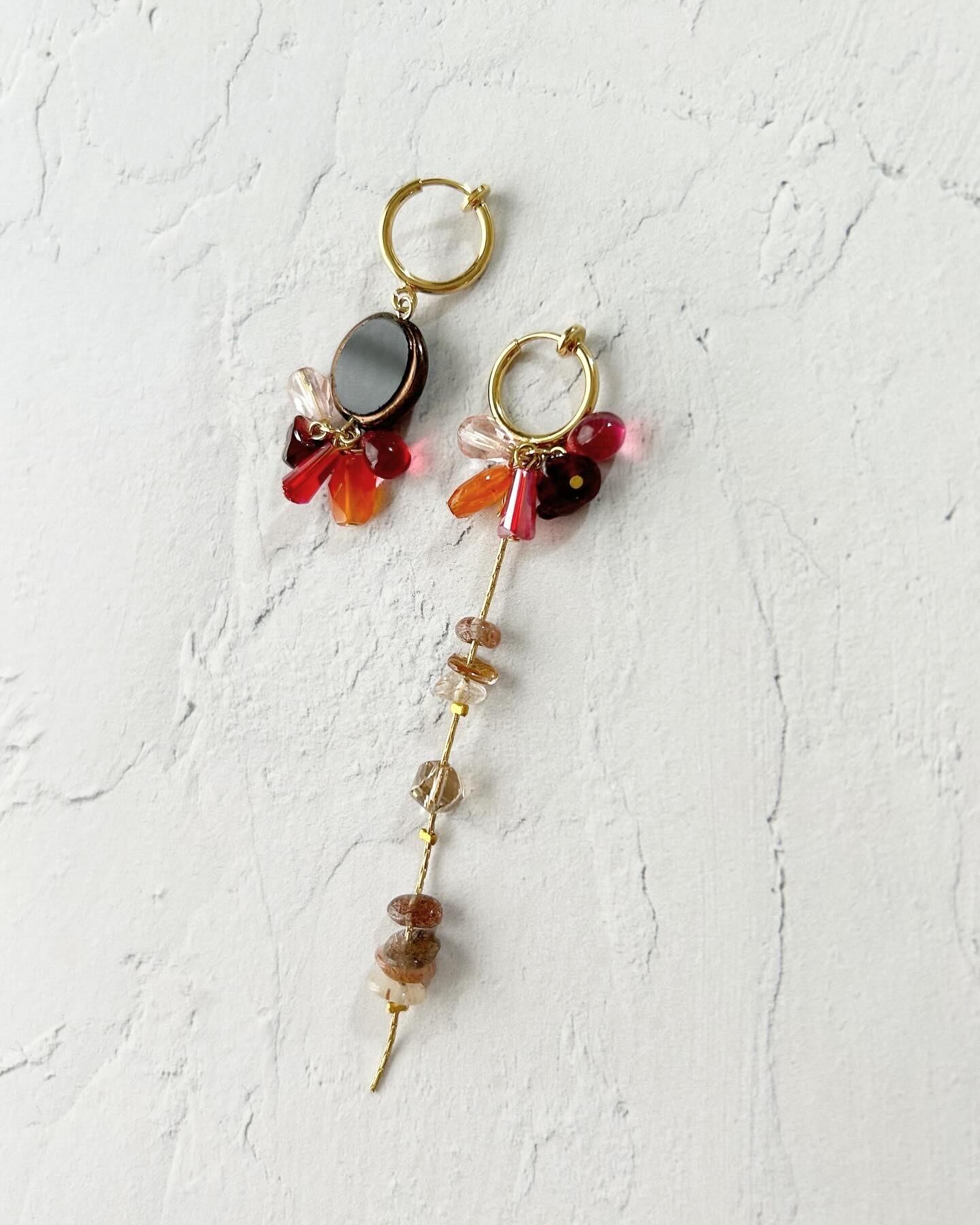 天然石やチェコビーズ等を使用した、大人っぽいアシンメトリーイヤリングです。