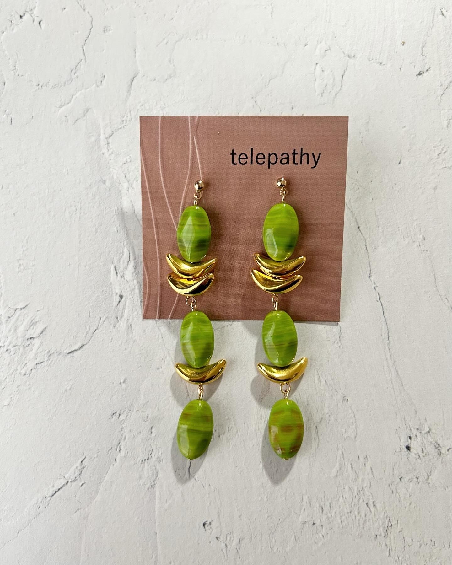 ピスタチオカラーのチェコビーズが可愛い、縦ラインが綺麗な大人ピアスです。