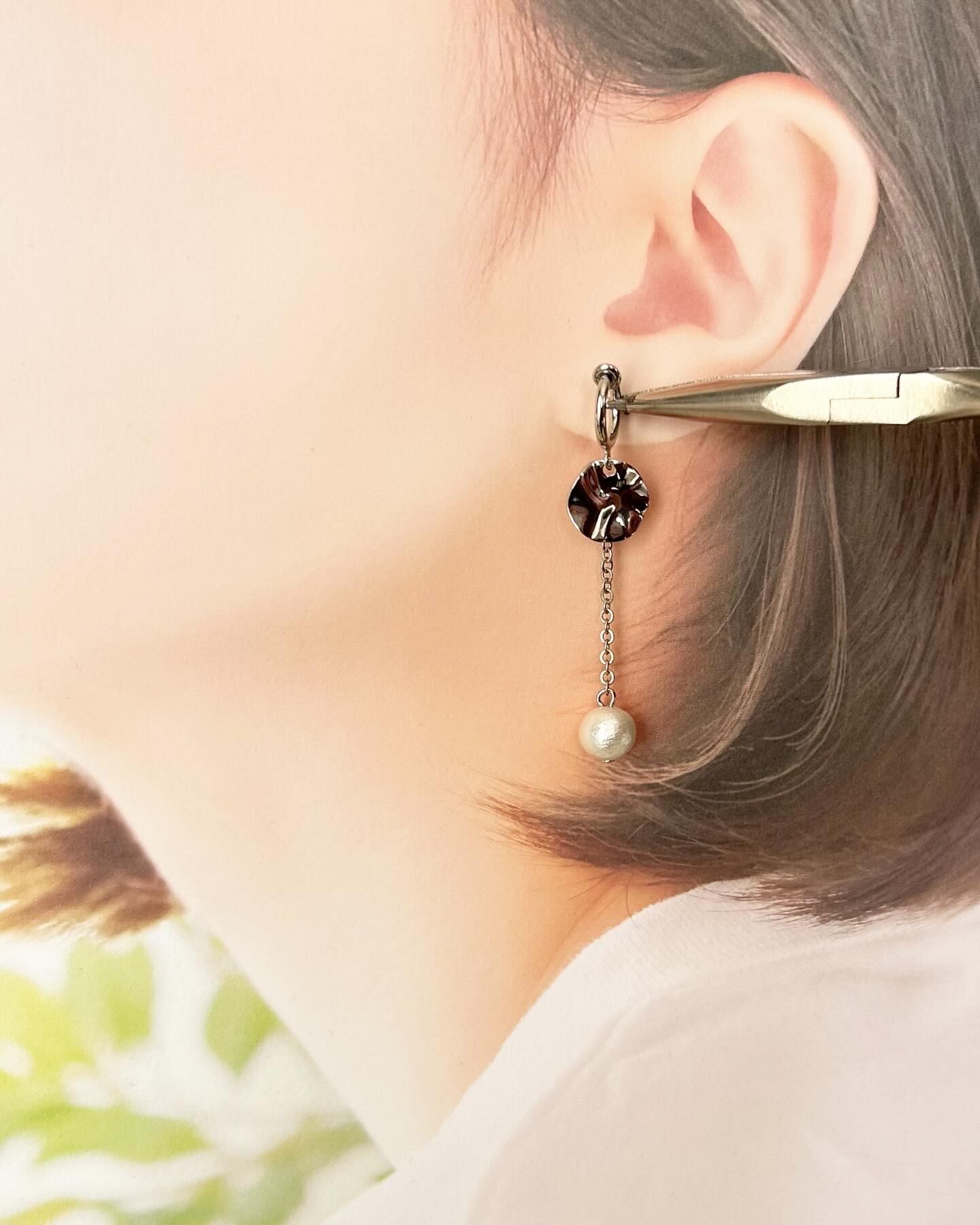 合金(ロジウムメッキ)、コットンパール、アクリル、天然石(カルセドニー)