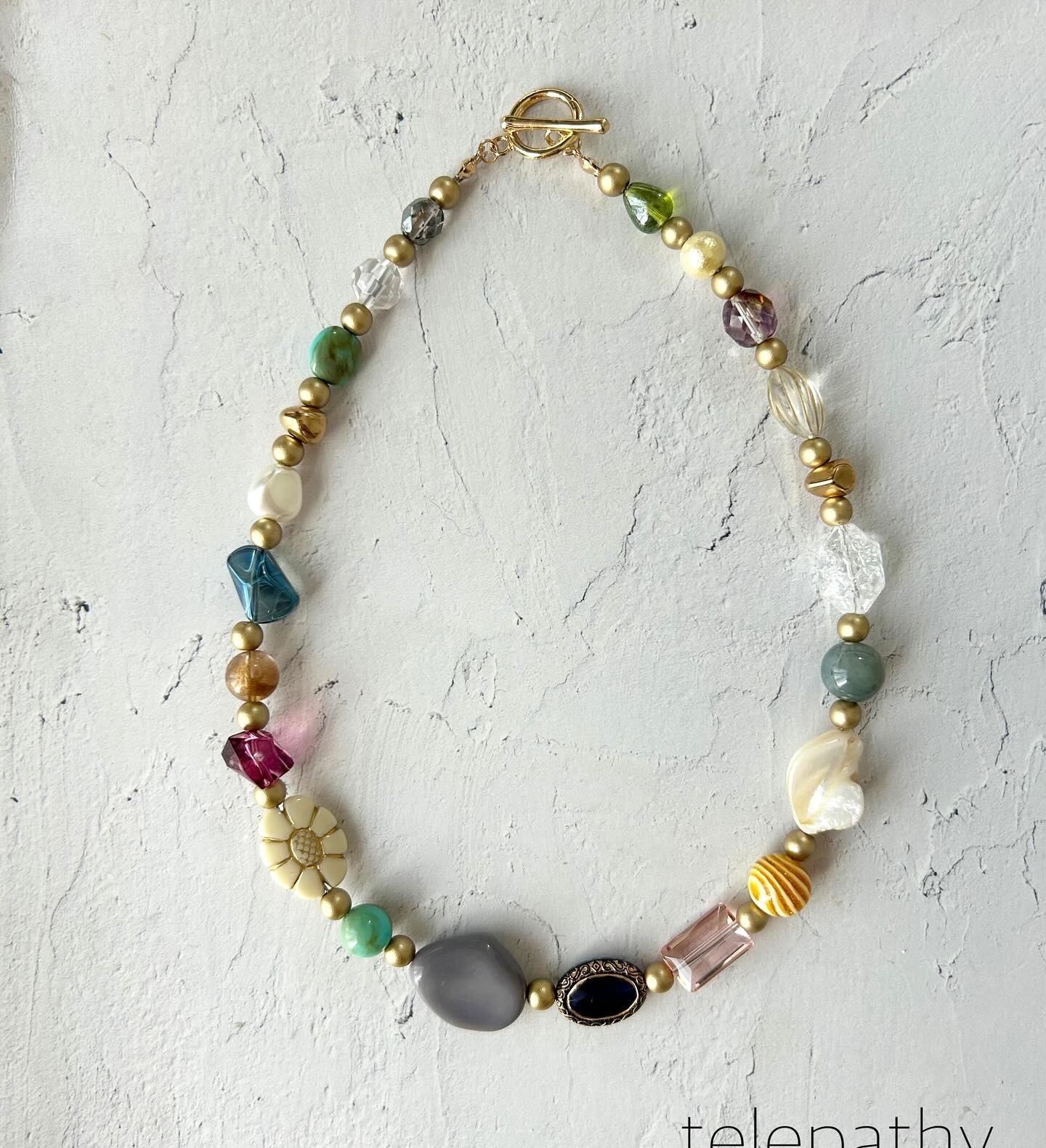 ドイツ製アクリルやチェコビーズ等、様々なビーズを連ねた、シンプルコーデのアクセントにぴったりなショートネックレスです。