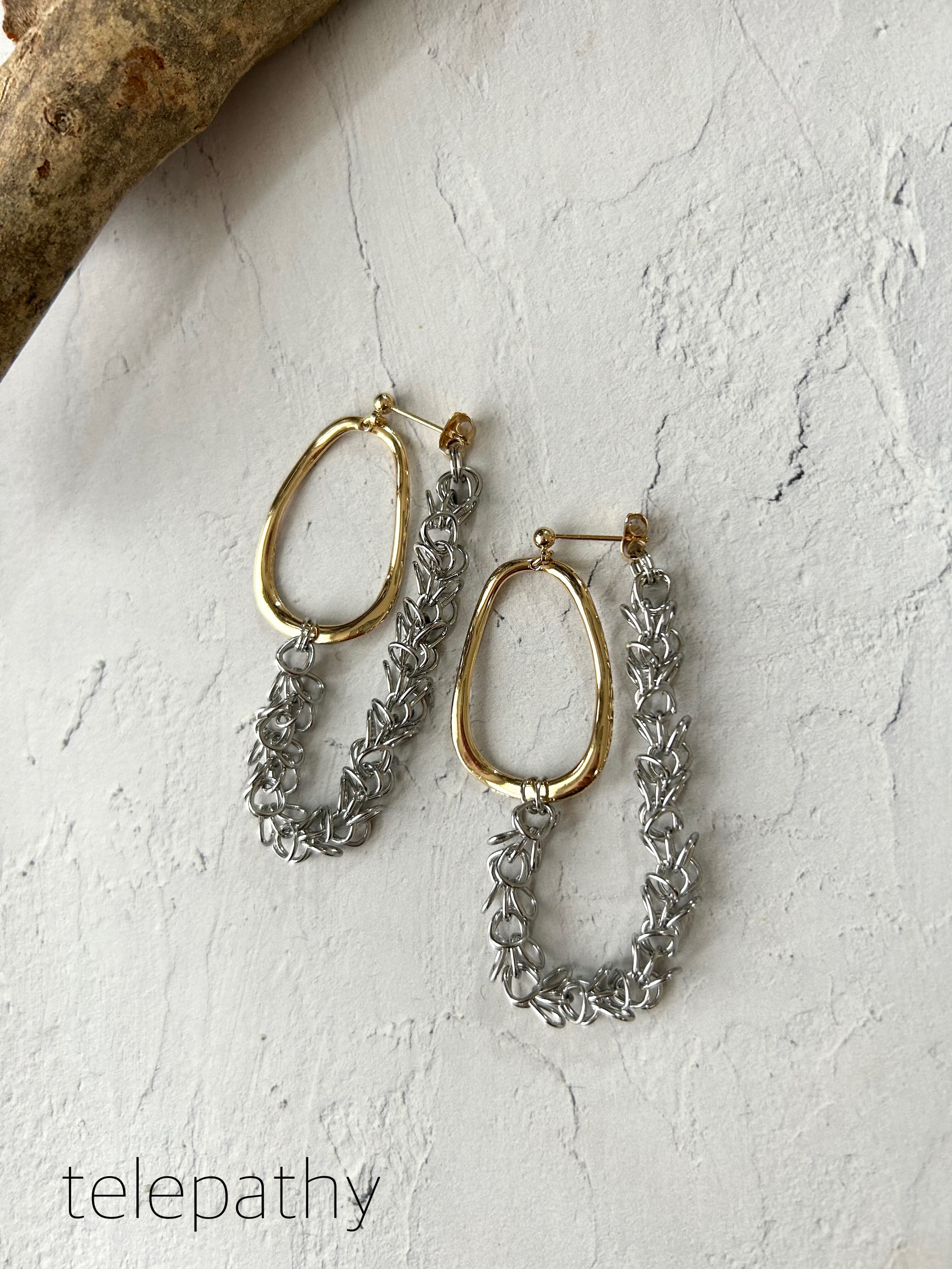 (シルバーチェーンはイヤリングのネジ部分に連結します)