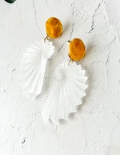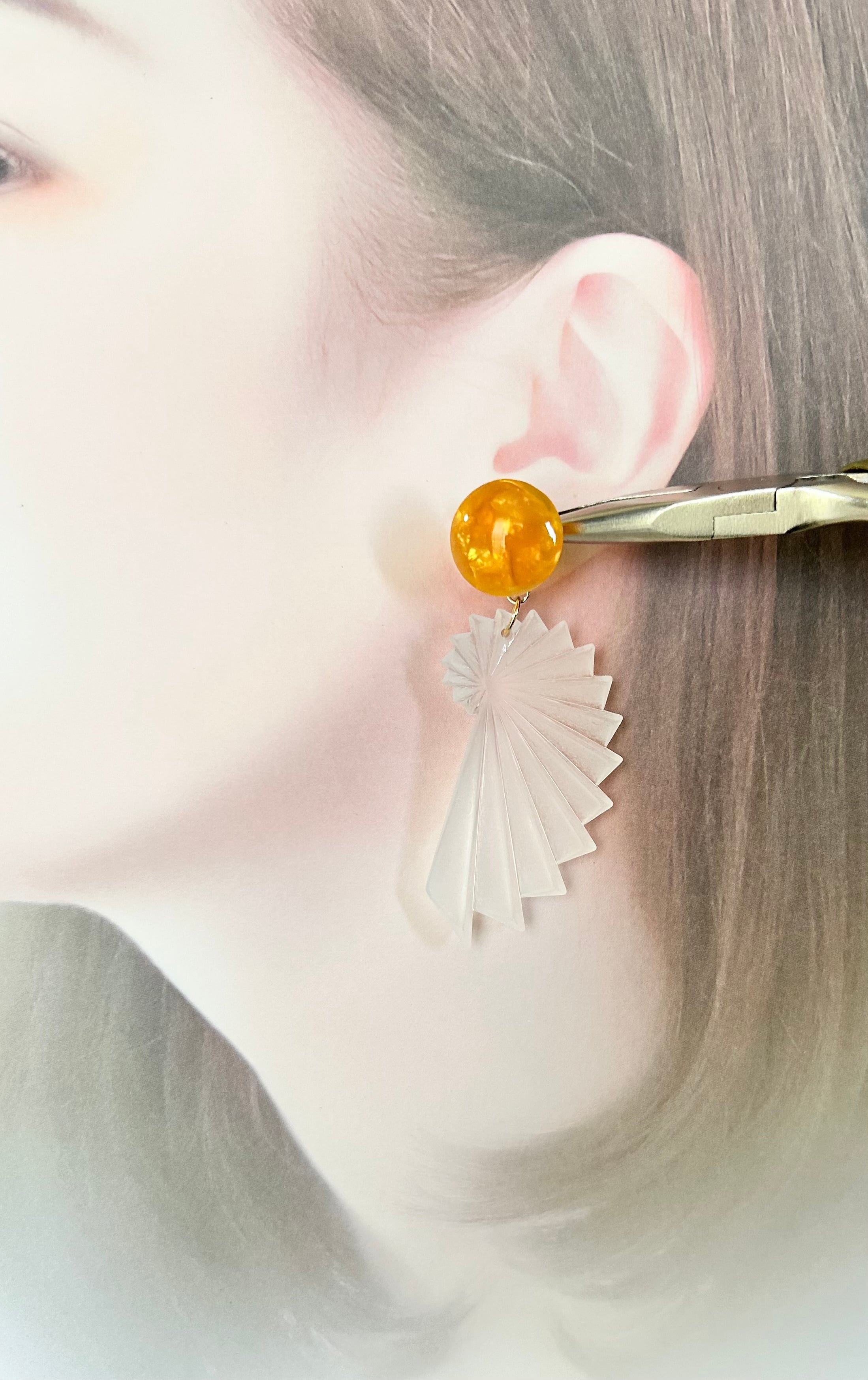 イエローカボションに、フロストホワイトのvintageウイング(ドイツ製)を合わせた、個性溢れる大ぶりイヤリングです。
