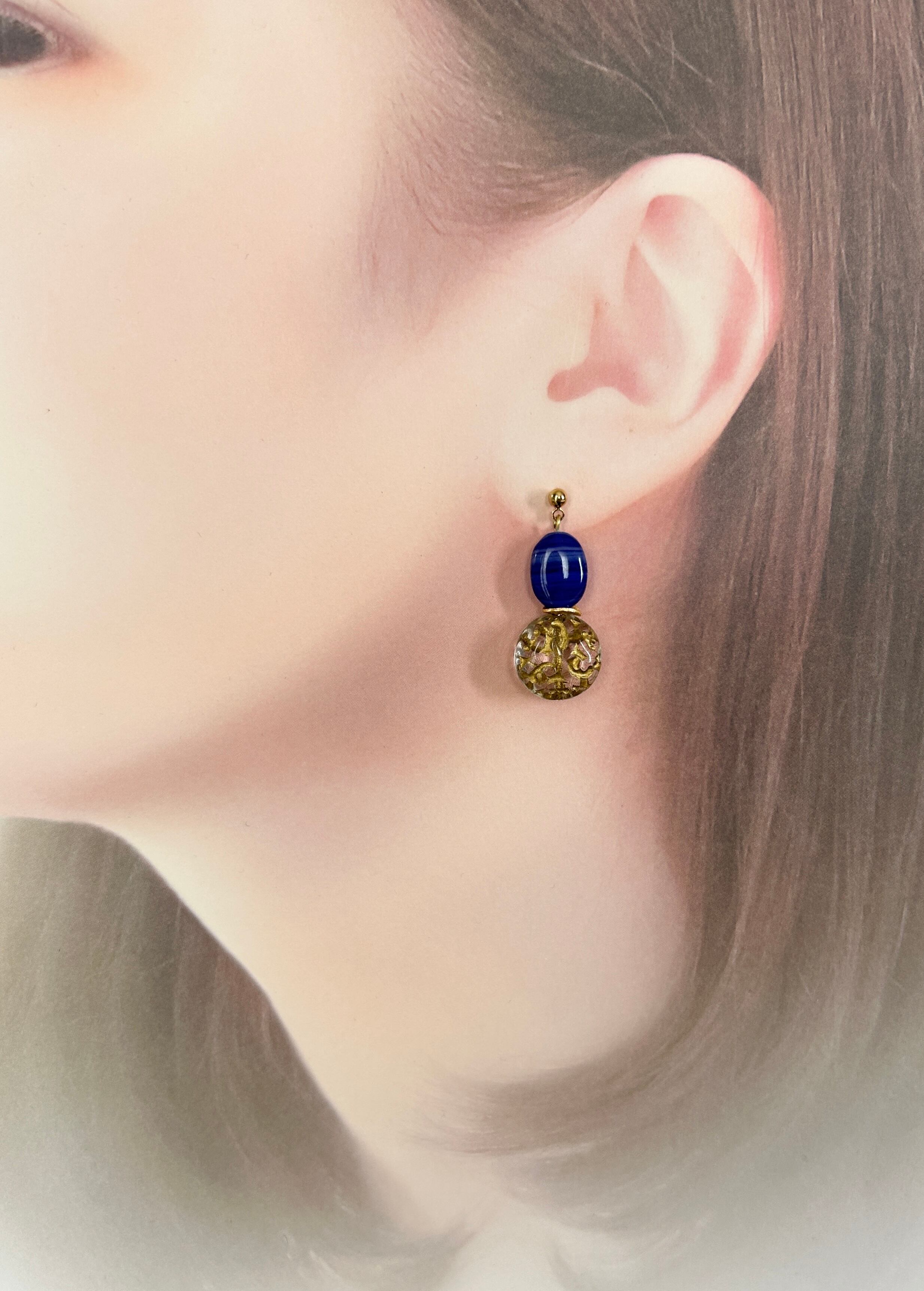 また、スタッドピアスは、綺麗なブルーと柄が素敵なチェコビーズをクラシカルな雰囲気に仕上げました。