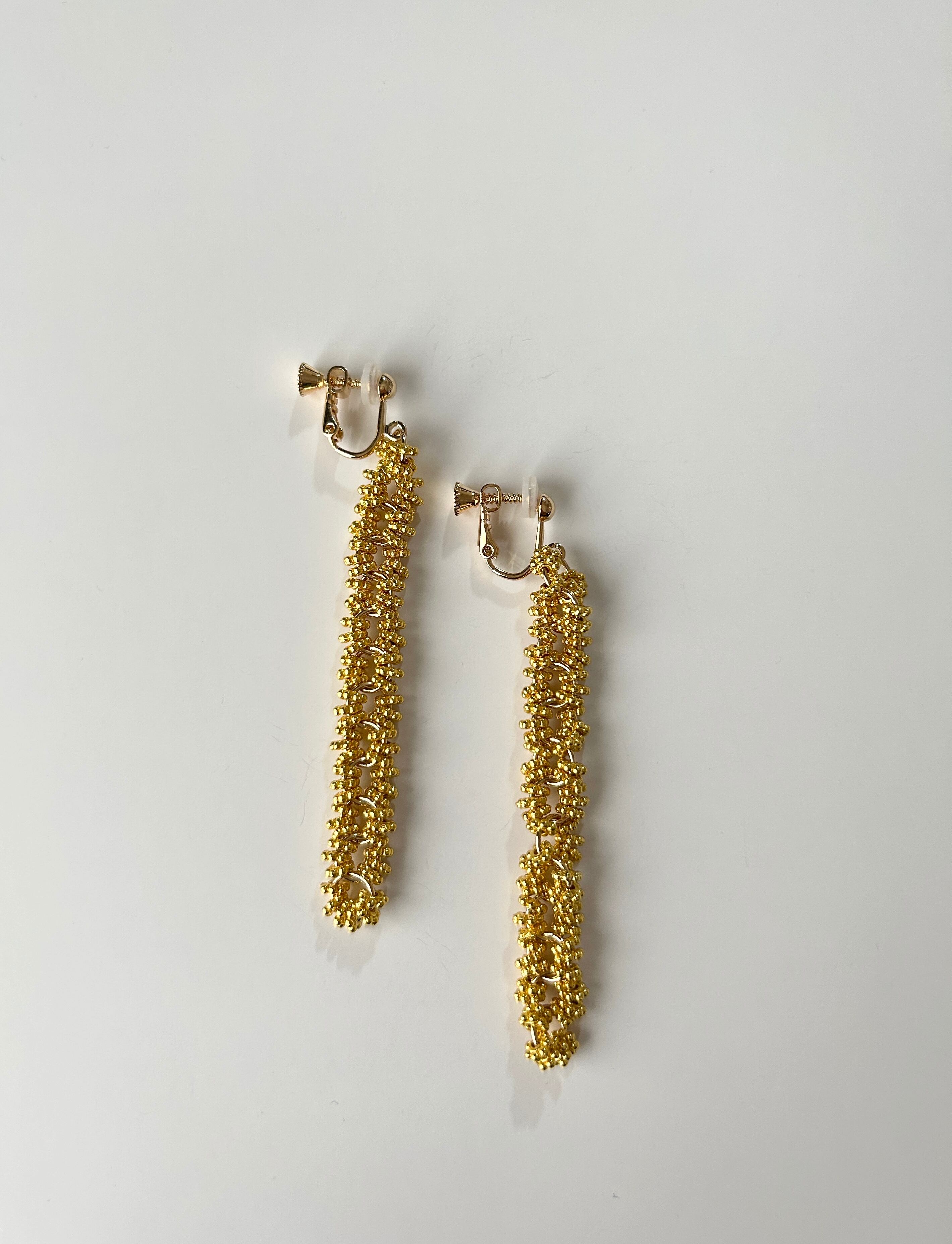 しっかり存在感のある、オケージョンスタイルにもぴったりなロングイヤリングです。