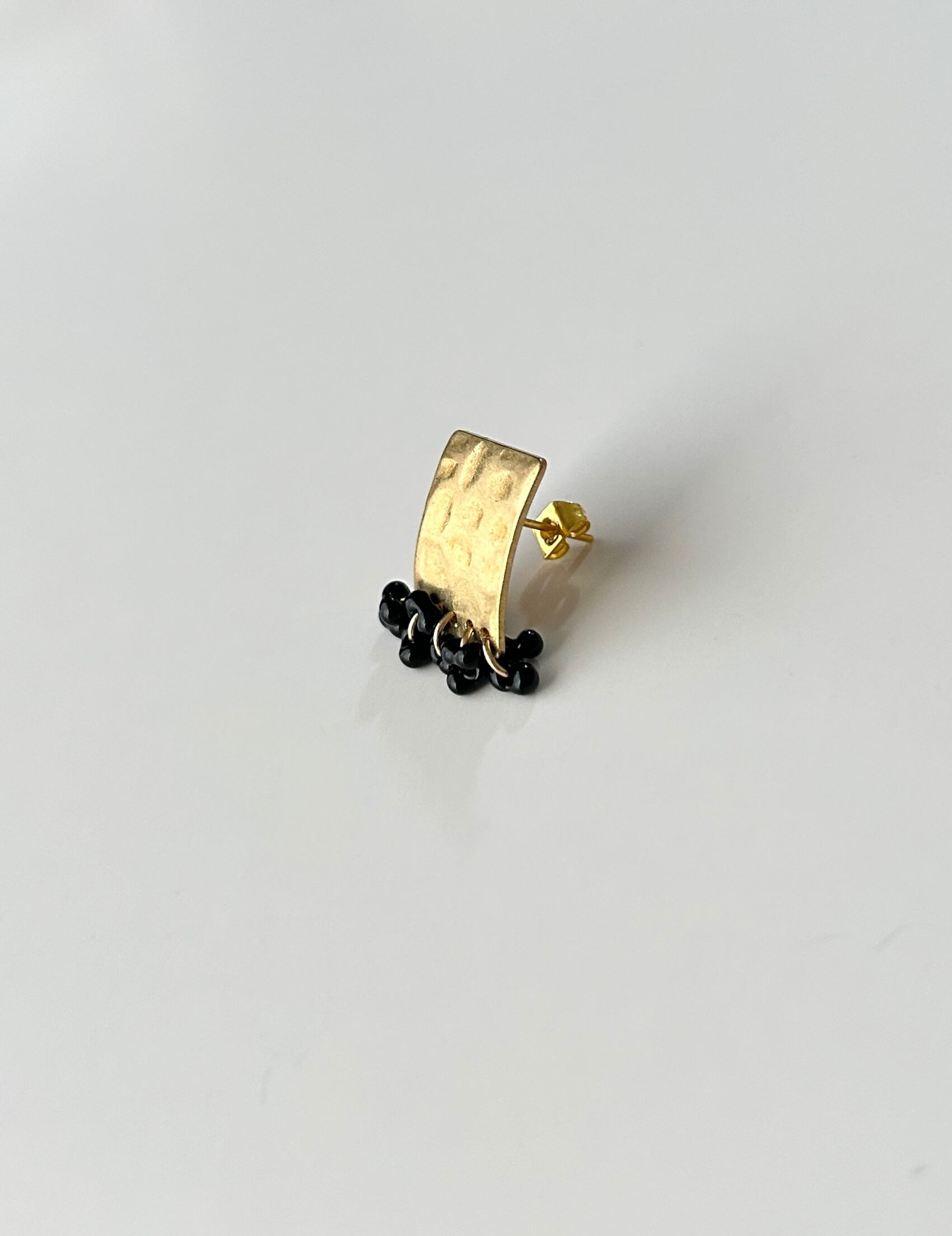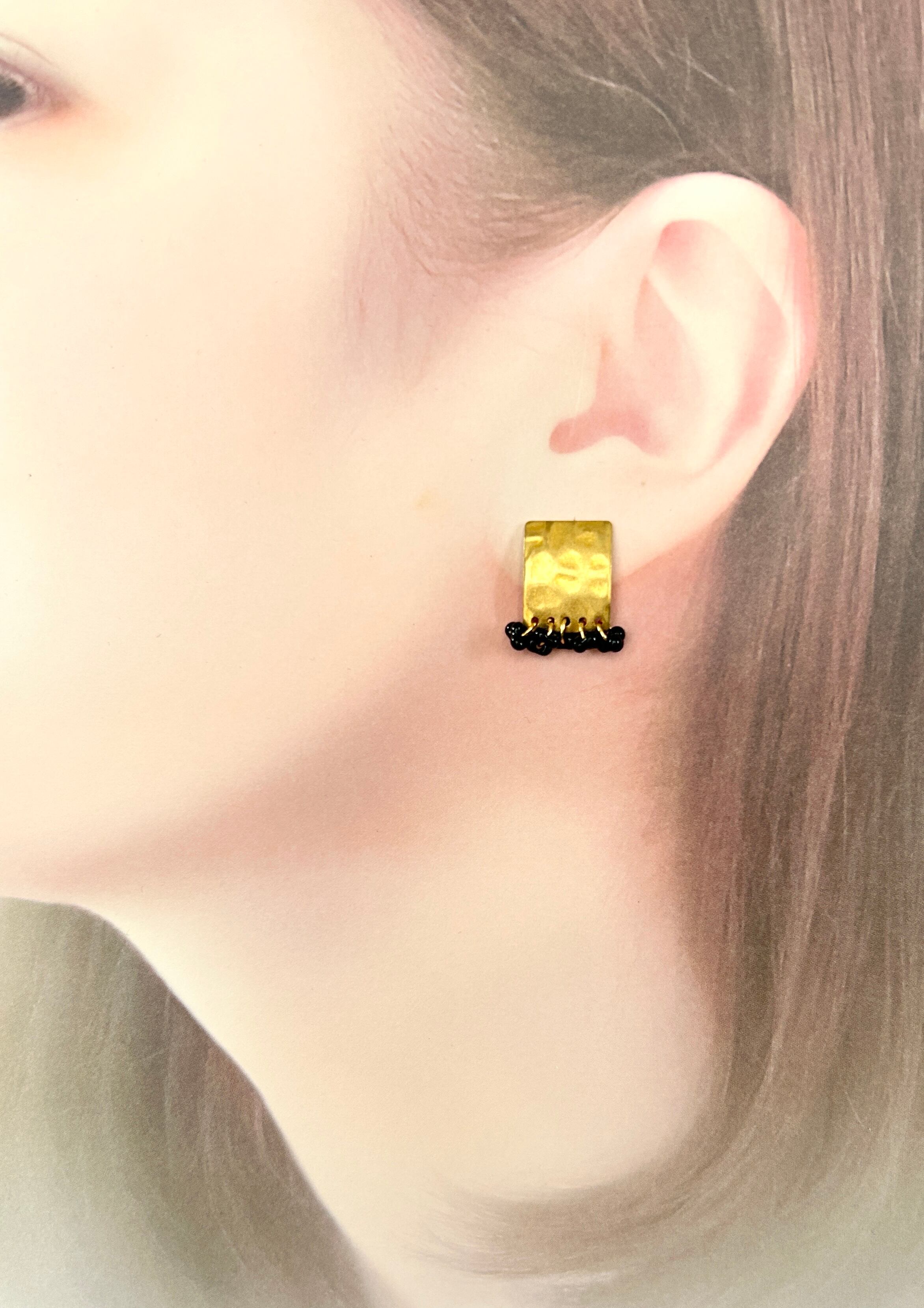 ハンマー加工の真鍮プレートに極小チェコビーズを合わせた、ほんのりクールな大人ピアスです。