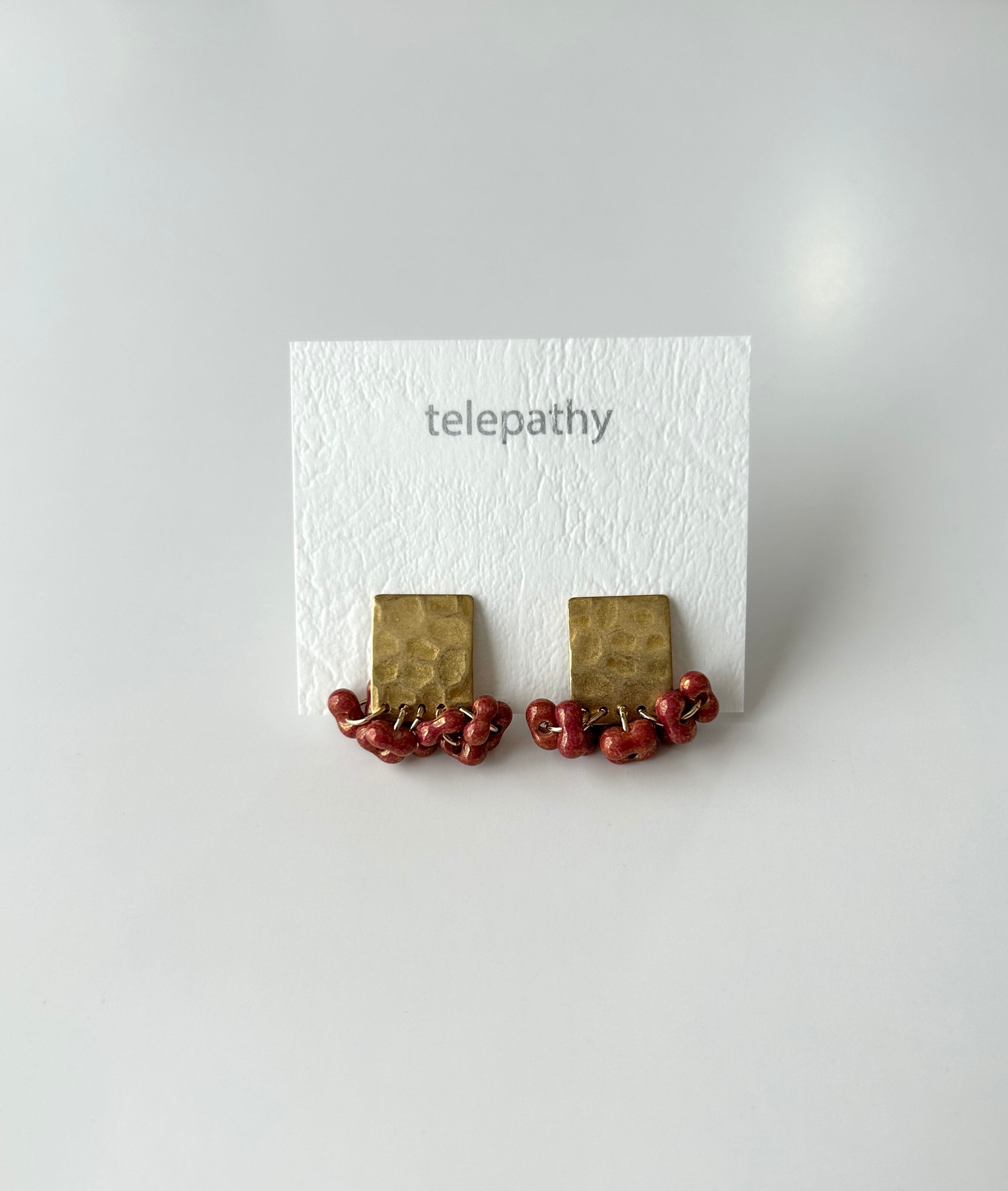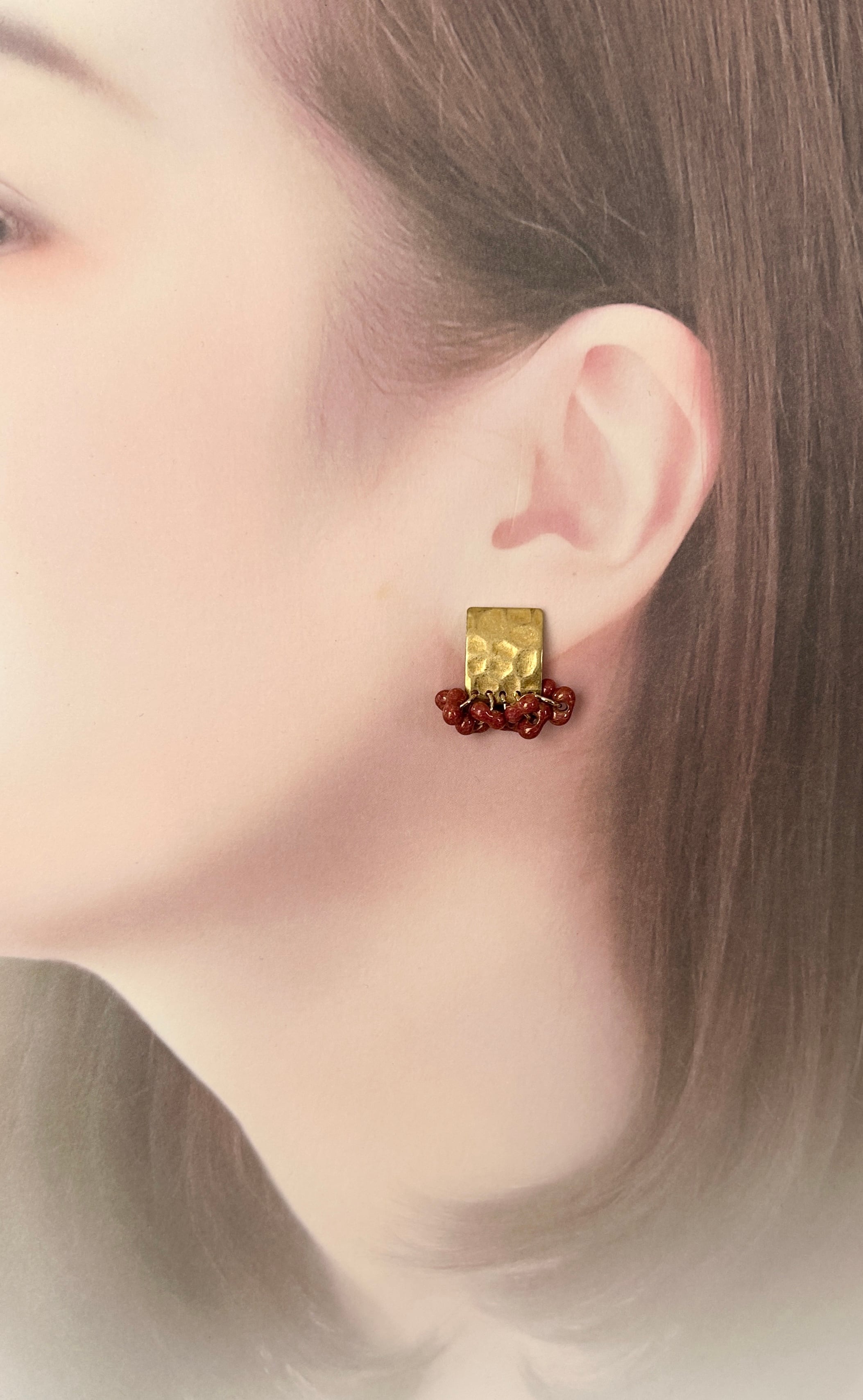 ハンマー加工の真鍮プレートに秋色チェコビーズを合わせた、デイリー使いにもぴったりな大人ピアスです。