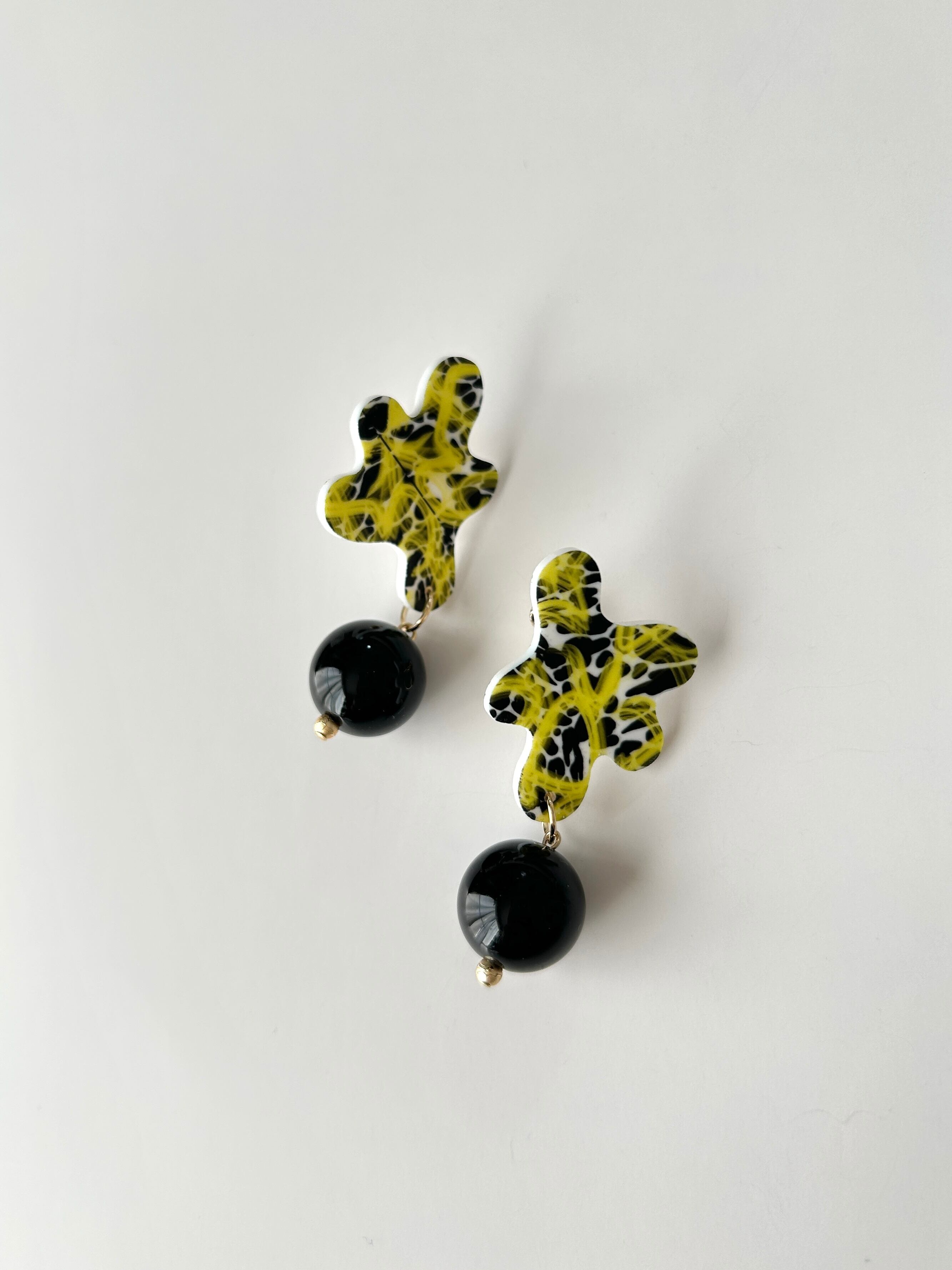 イエロー×ブラックイヤリング(変形カボション)