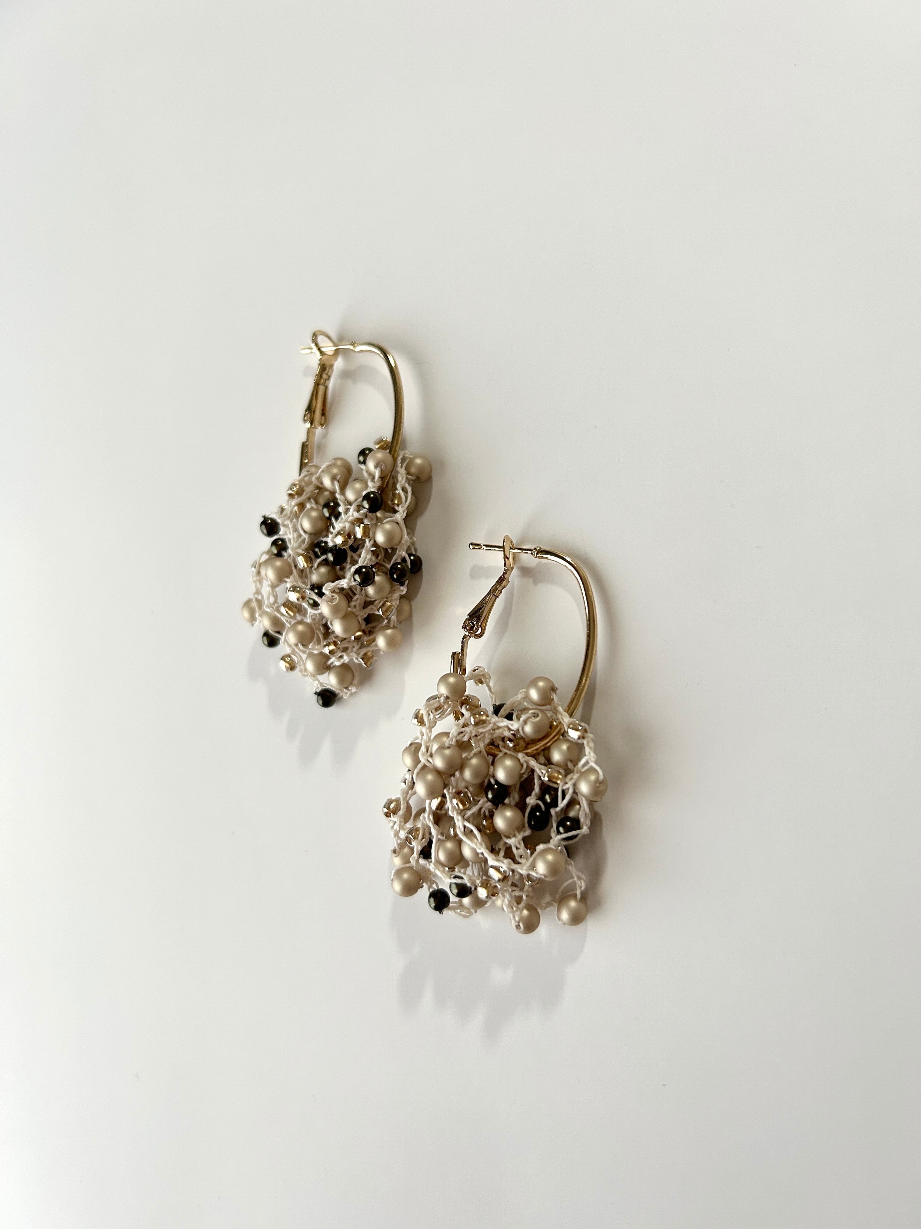 ひと針ひと針編み上げたビーズ刺繍が、わしゃっと可愛い大人ピアスです。