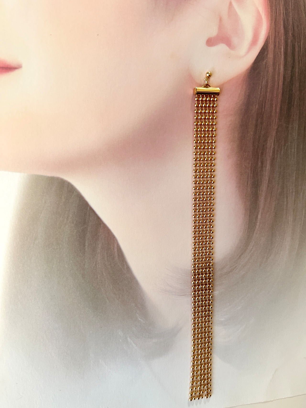 肩に付くくらいのスーパーロング片耳ピアスです。
