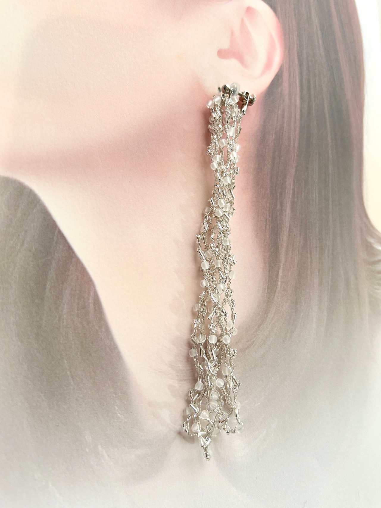 クリア、シルバー、フロストホワイト、細かなビーズを銀糸で編み上げました。